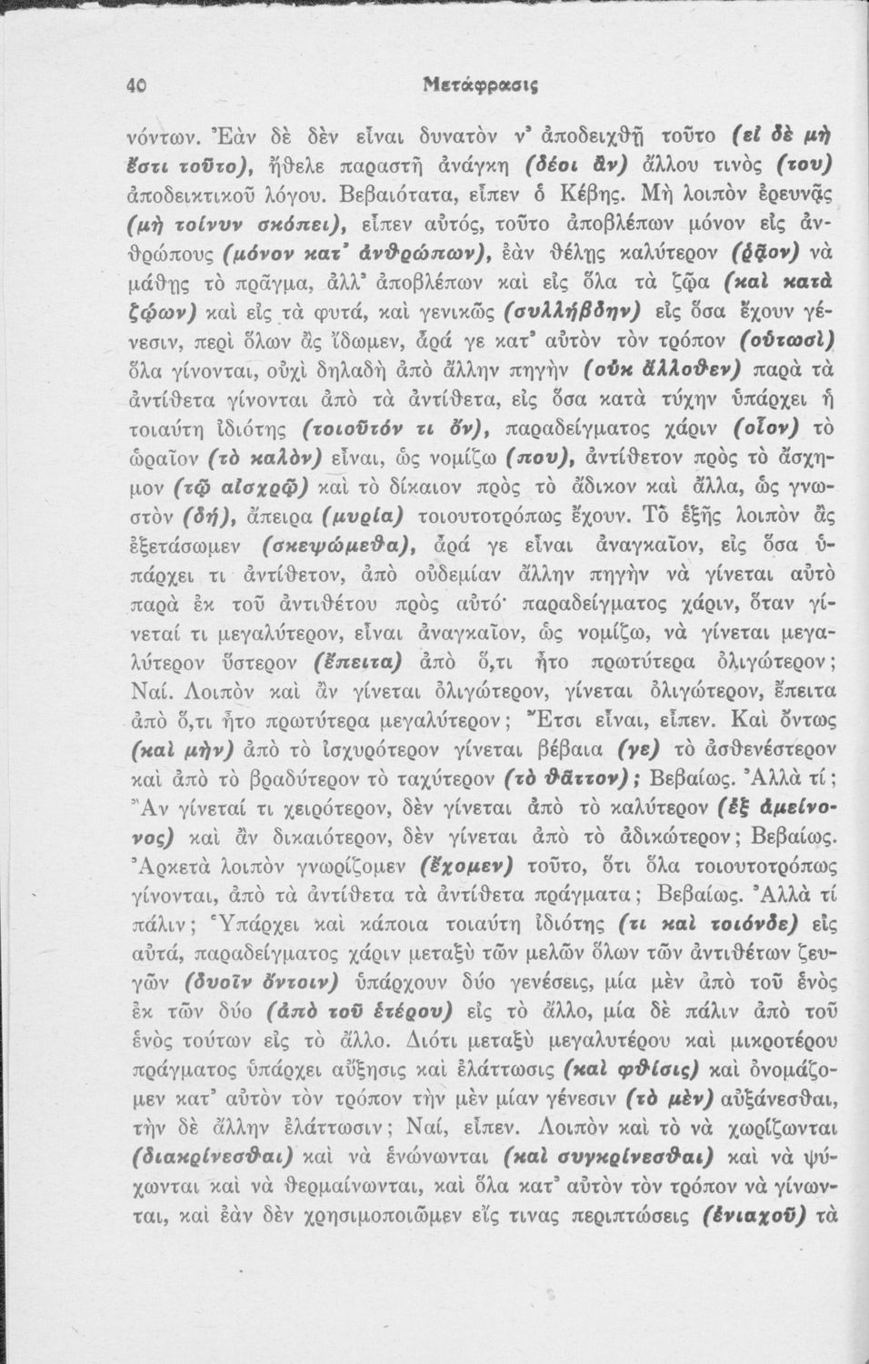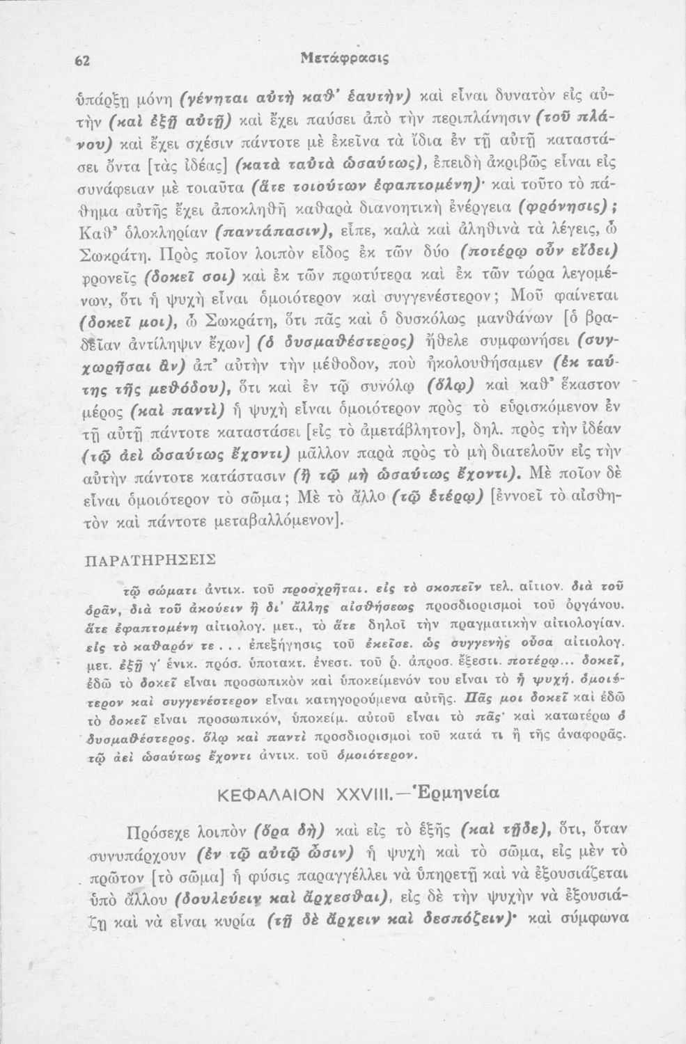 Βαθμίδα εκπαίδευσης: Δευτεροβάθμια Τάξη: Γυμνάσιο Μάθημα: Αρχαία Ελληνικά Γλώσσα: Απλή καθαρεύουσα Παρουσίαση περιεχομένου: Μαθητικό βοήθημα του Γυμνασίου για το μάθημα των Αρχαίων Ελληνικών. Περιέχει τη μετάφραση του έργου Φαίδων του Πλάτωνα και ερμηνευτικά, πραγματολογικά σχόλια, καθώς και γραμματικές, συντακτικές παρατηρήσεις του συγγραφέα. Το σύγγραμμα έγινε σύμφωνα με το σχολικό βιβλίο που εγκρίθηκε το 1942. |