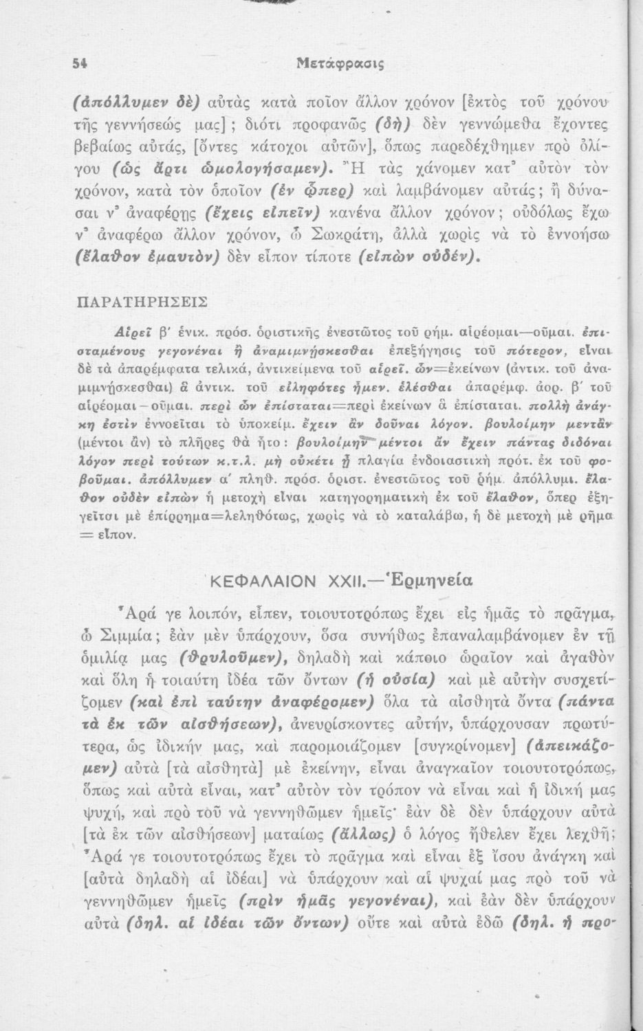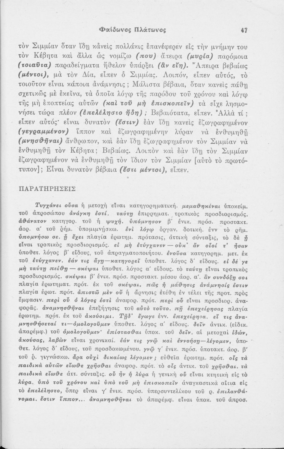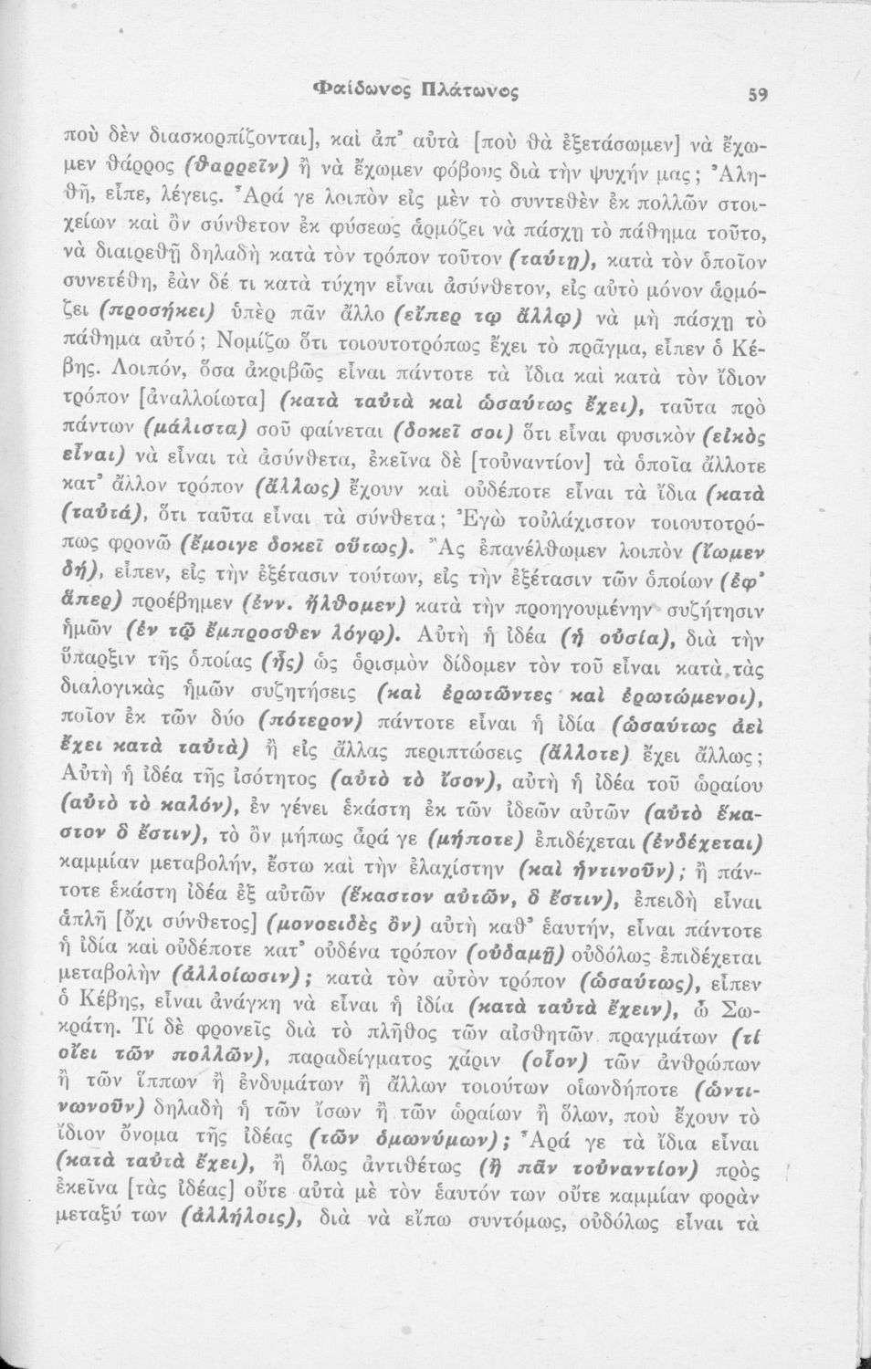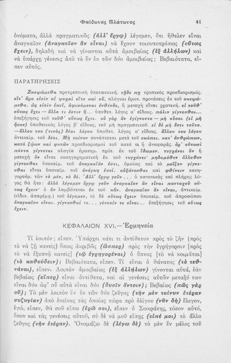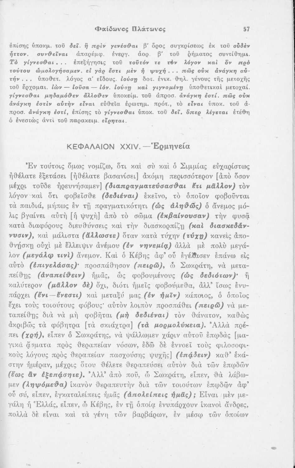 Μαθητικό βοήθημα του Γυμνασίου για το μάθημα των Αρχαίων Ελληνικών. Περιέχει τη μετάφραση του έργου Φαίδων του Πλάτωνα και ερμηνευτικά, πραγματολογικά σχόλια, καθώς και γραμματικές, συντακτικές παρατηρήσεις του συγγραφέα. Το σύγγραμμα έγινε σύμφωνα με το σχολικό βιβλίο που εγκρίθηκε το 1942.