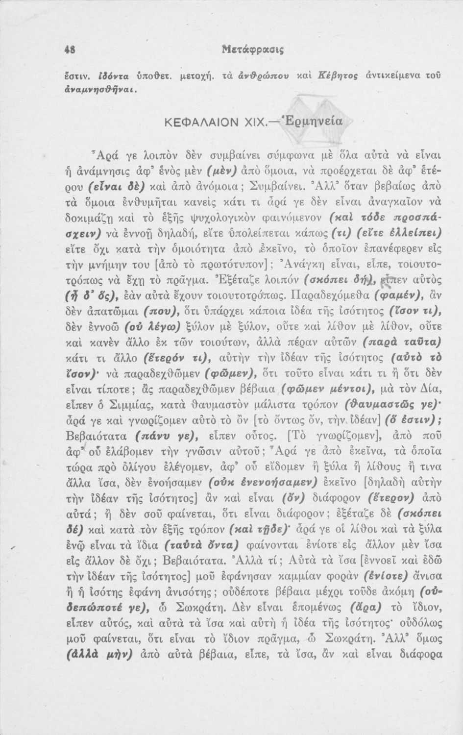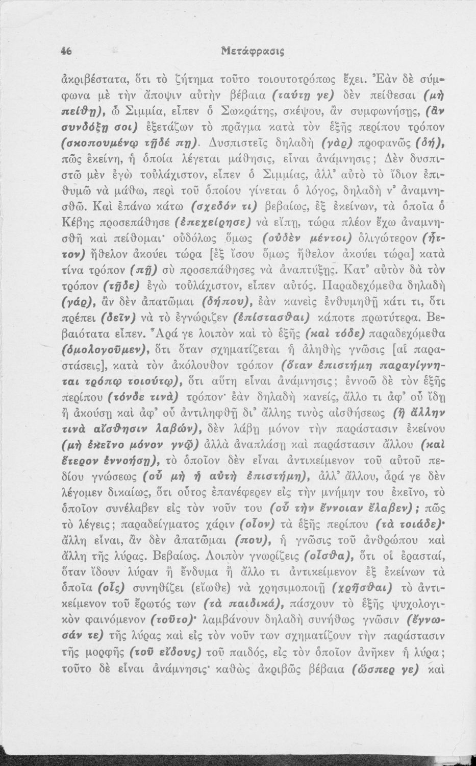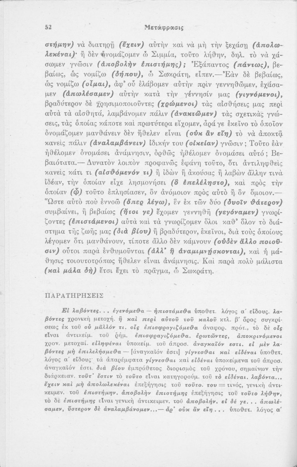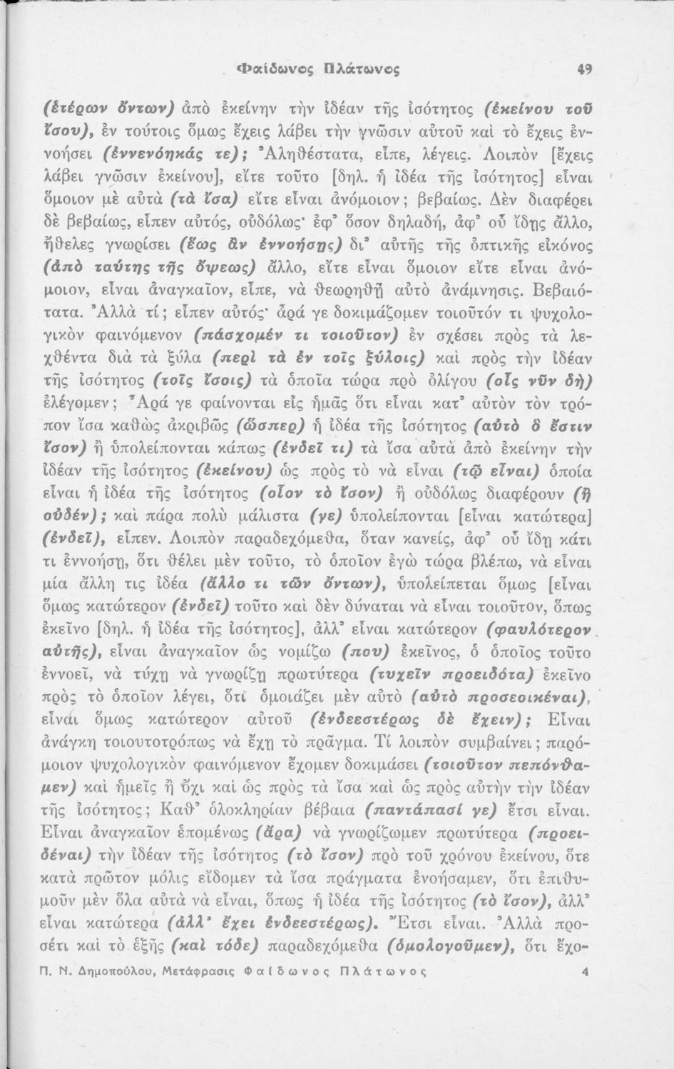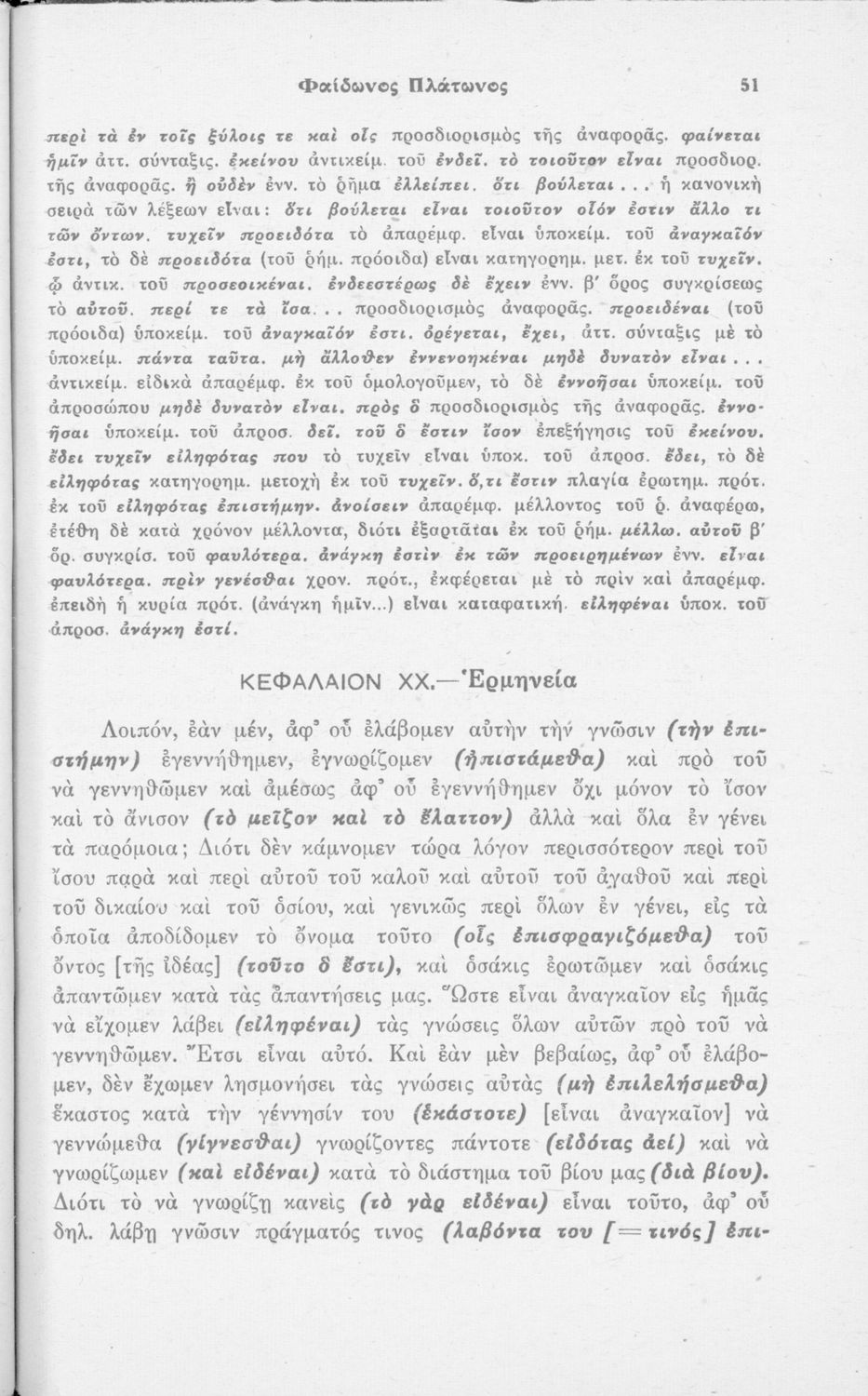 Μαθητικό βοήθημα του Γυμνασίου για το μάθημα των Αρχαίων Ελληνικών. Περιέχει τη μετάφραση του έργου Φαίδων του Πλάτωνα και ερμηνευτικά, πραγματολογικά σχόλια, καθώς και γραμματικές, συντακτικές παρατηρήσεις του συγγραφέα. Το σύγγραμμα έγινε σύμφωνα με το σχολικό βιβλίο που εγκρίθηκε το 1942.