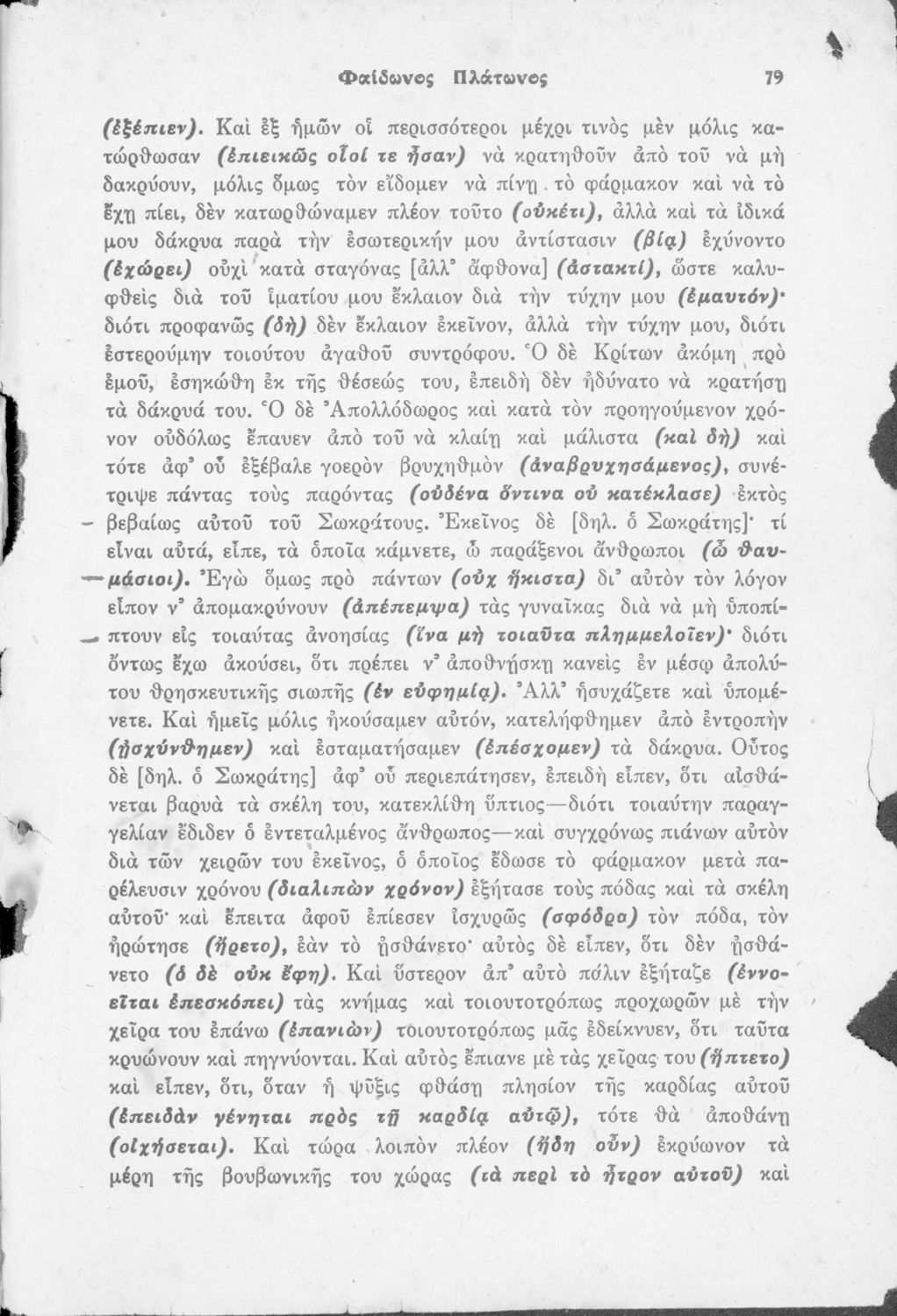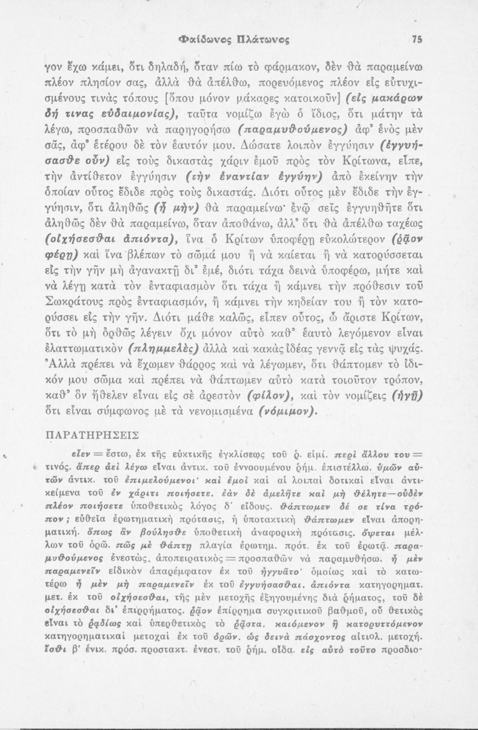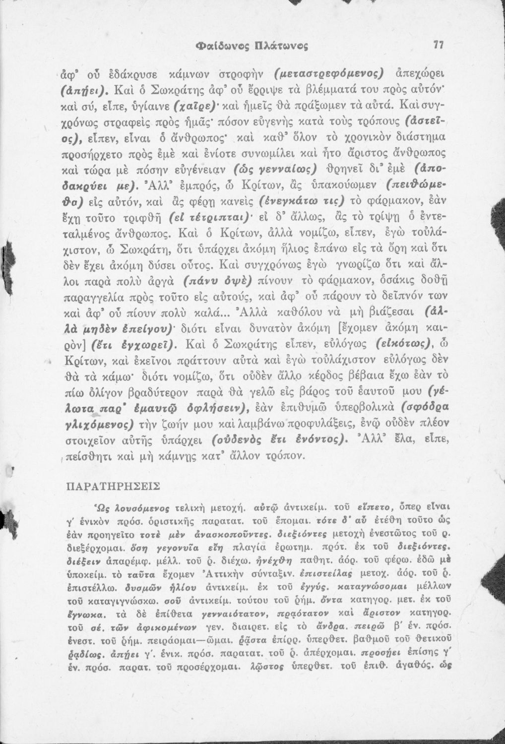 Παρουσίαση περιεχομένου: Μαθητικό βοήθημα του Γυμνασίου για το μάθημα των Αρχαίων Ελληνικών. Περιέχει τη μετάφραση του έργου Φαίδων του Πλάτωνα και ερμηνευτικά, πραγματολογικά σχόλια, καθώς και γραμματικές, συντακτικές παρατηρήσεις του συγγραφέα. Το σύγγραμμα έγινε σύμφωνα με το σχολικό βιβλίο που εγκρίθηκε το 1942.