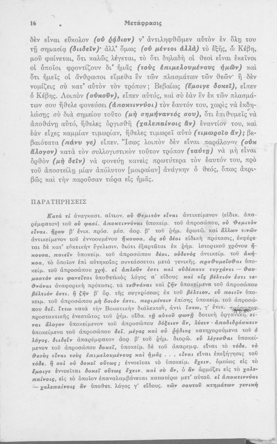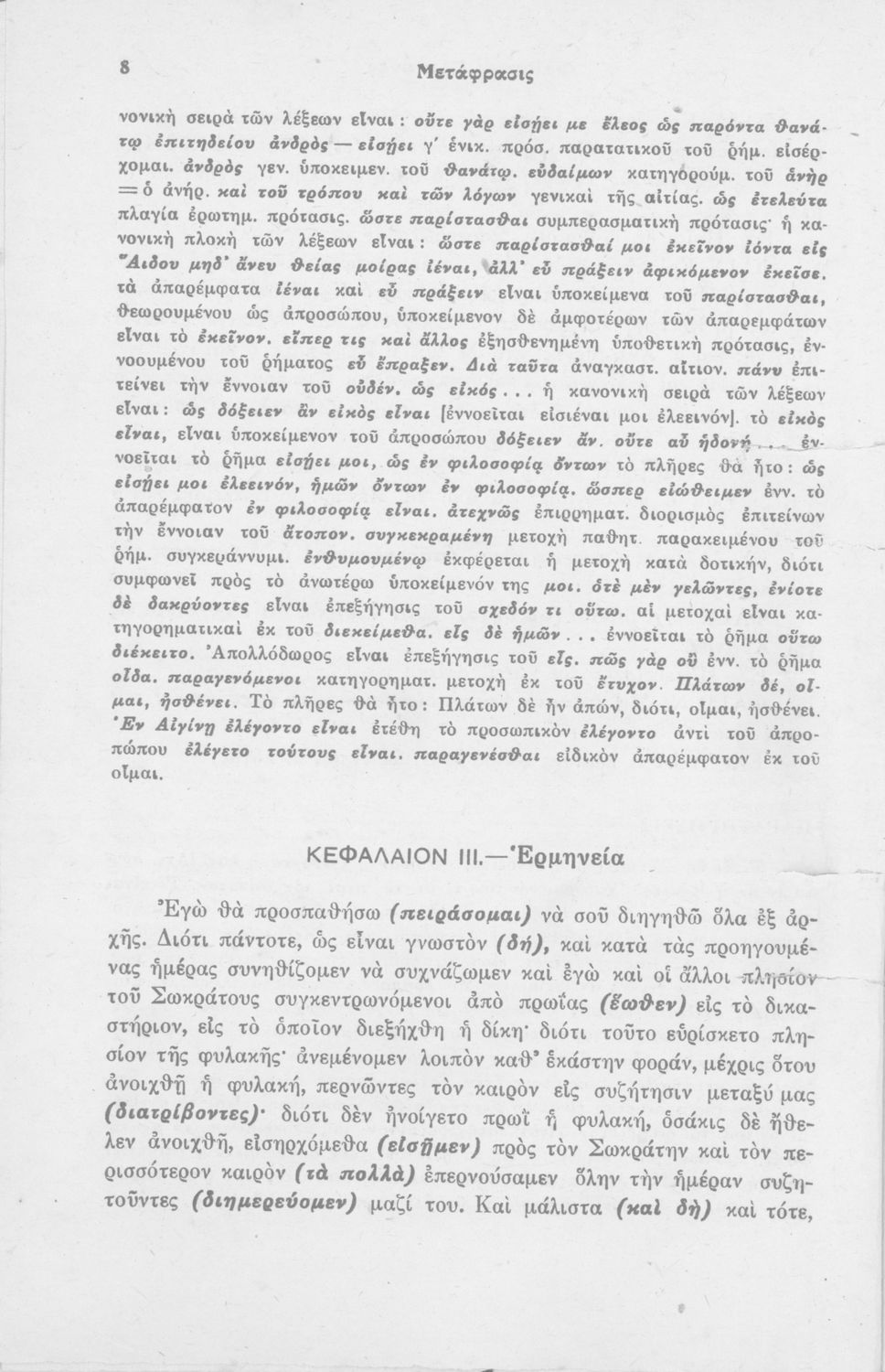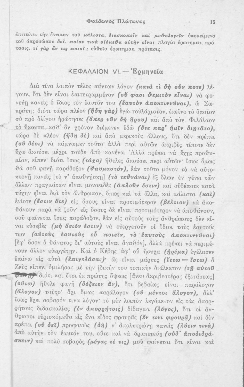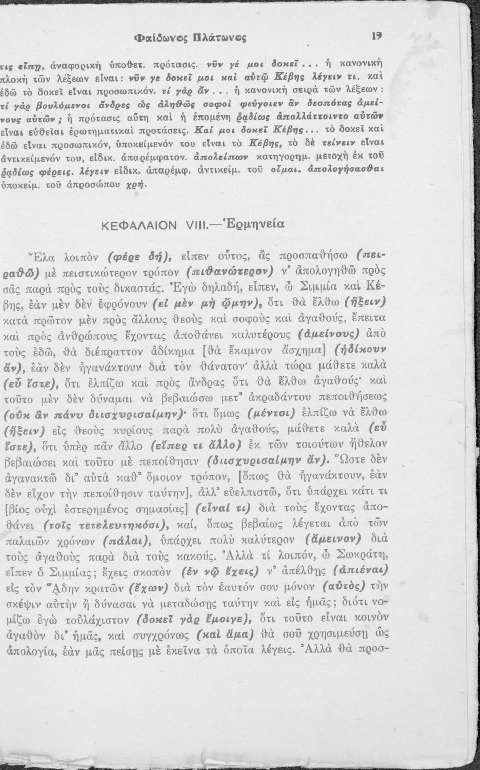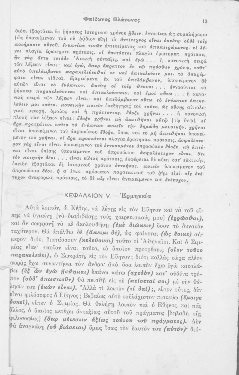 Παρουσίαση περιεχομένου: Μαθητικό βοήθημα του Γυμνασίου για το μάθημα των Αρχαίων Ελληνικών. Περιέχει τη μετάφραση του έργου Φαίδων του Πλάτωνα και ερμηνευτικά, πραγματολογικά σχόλια, καθώς και γραμματικές, συντακτικές παρατηρήσεις του συγγραφέα. Το σύγγραμμα έγινε σύμφωνα με το σχολικό βιβλίο που εγκρίθηκε το 1942.