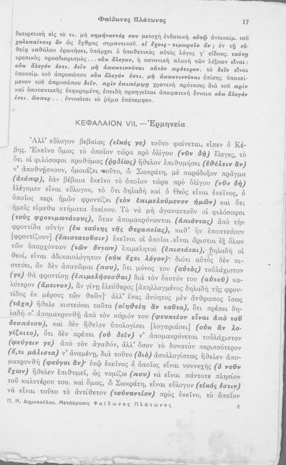 Πλάτων, Π.Ν. Δημόπουλος (μετάφραση, σχόλια)