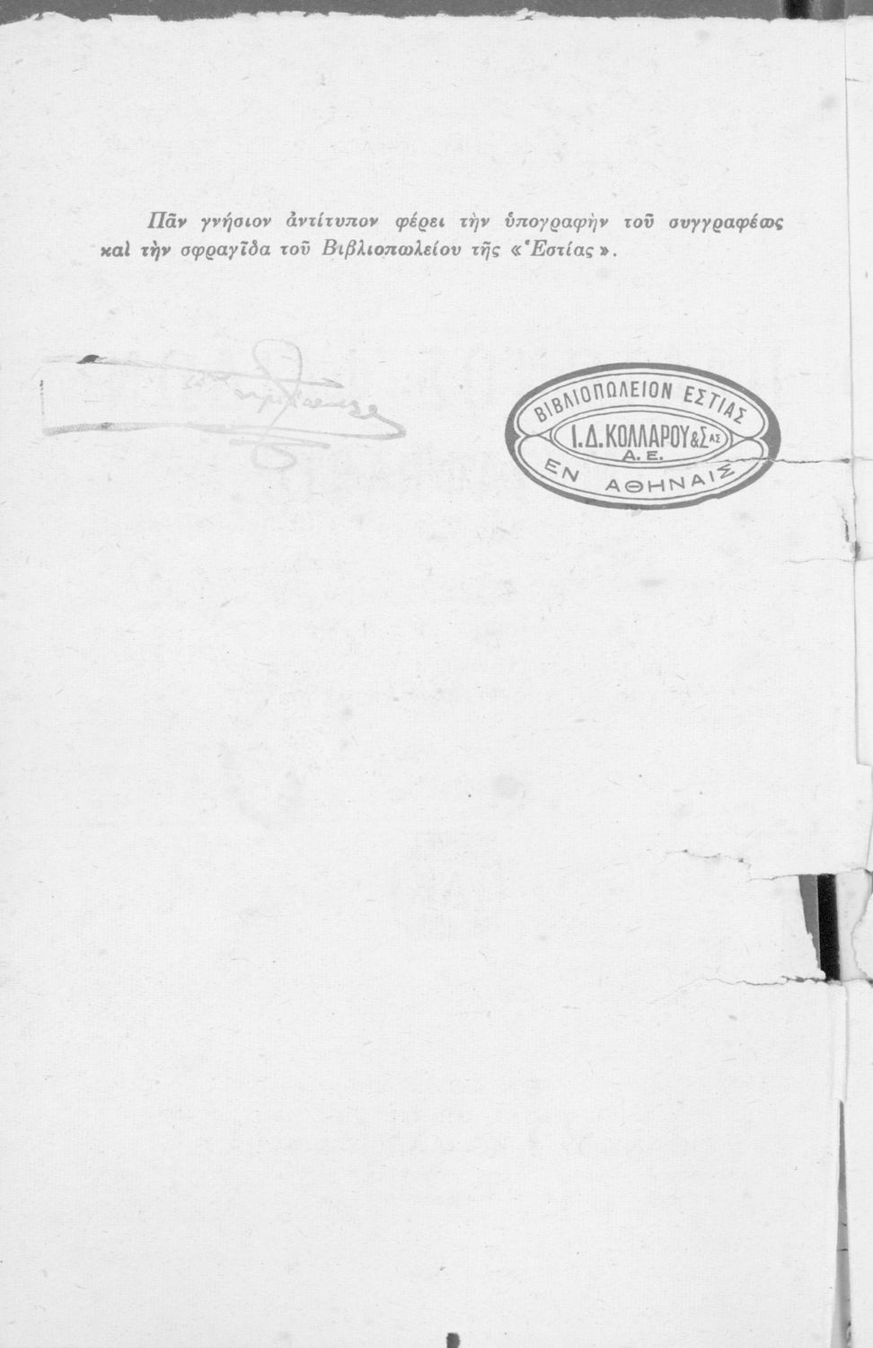 Εκδότης: Ιωάννης Δ. Κολλάρος και ΣΙΑ, Βιβλιοπωλείο της "Εστίας"