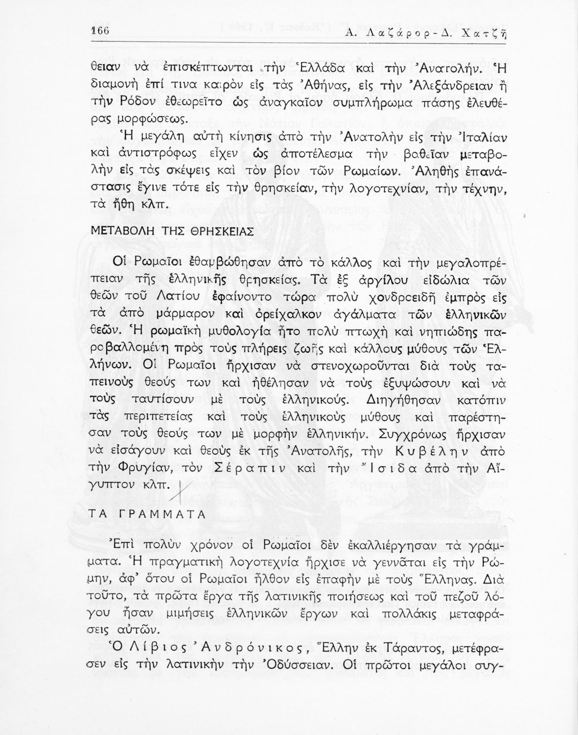 LDR 01489 2200217 4500 035 ## _a01-19738 040 ## _aΙνστιτούτο Εκπαιδευτικής Πολιτικής 041 ## _ael 100 ## _aΑ. Λάζαρου _aΔ. Χατζής 110 ## _a19738 245 0# _aΙστορία ελληνική - ρωμαϊκή από του θανάτου του Μ. Αλεξάνδρου μέχρι του Μ. Κωνσταντίνου. Δια την Γ΄ Τάξιν των Εξαταξίων Γυμνασίων 250 ## _a5η Έκδοση 260 ## _aΑθήνα _bΟργανισμός Εκδόσεως Σχολικών Βιβλίων _c1960 300 ## _a282 _bΣκίτσα, χάρτης, εικόνες (ασπρόμαυρα) 520 ## _aΣχολικό εγχειρίδιο Ιστορίας Γ΄ Γυμνασίου που καλύπτει την περίοδο από το θάνατο του Μ. Αλέξανδρου και τα ελληνιστικά βασίλεια ως την παρακμή της ρωμαϊκής αυτοκρατορίας. Περιέχει και παράρτημα με το μετρικό σύστημα των Ρωμαίων. 521 ## _aΓ' Γυμνασίου 522 ## _aΕλλάδα 546 ## _aΑπλή καθαρεύουσα 563 ## _aΣκληρό Εξώφυλλο 583 ## _a1678/30-5-1960 _c1960 650 #4 _aΓράκχοι _aΔημοκρατία _aΔιοκλητιανός _aΚαρχηδόνα _aΠτολεμαίοι _aΧριστιανισμός