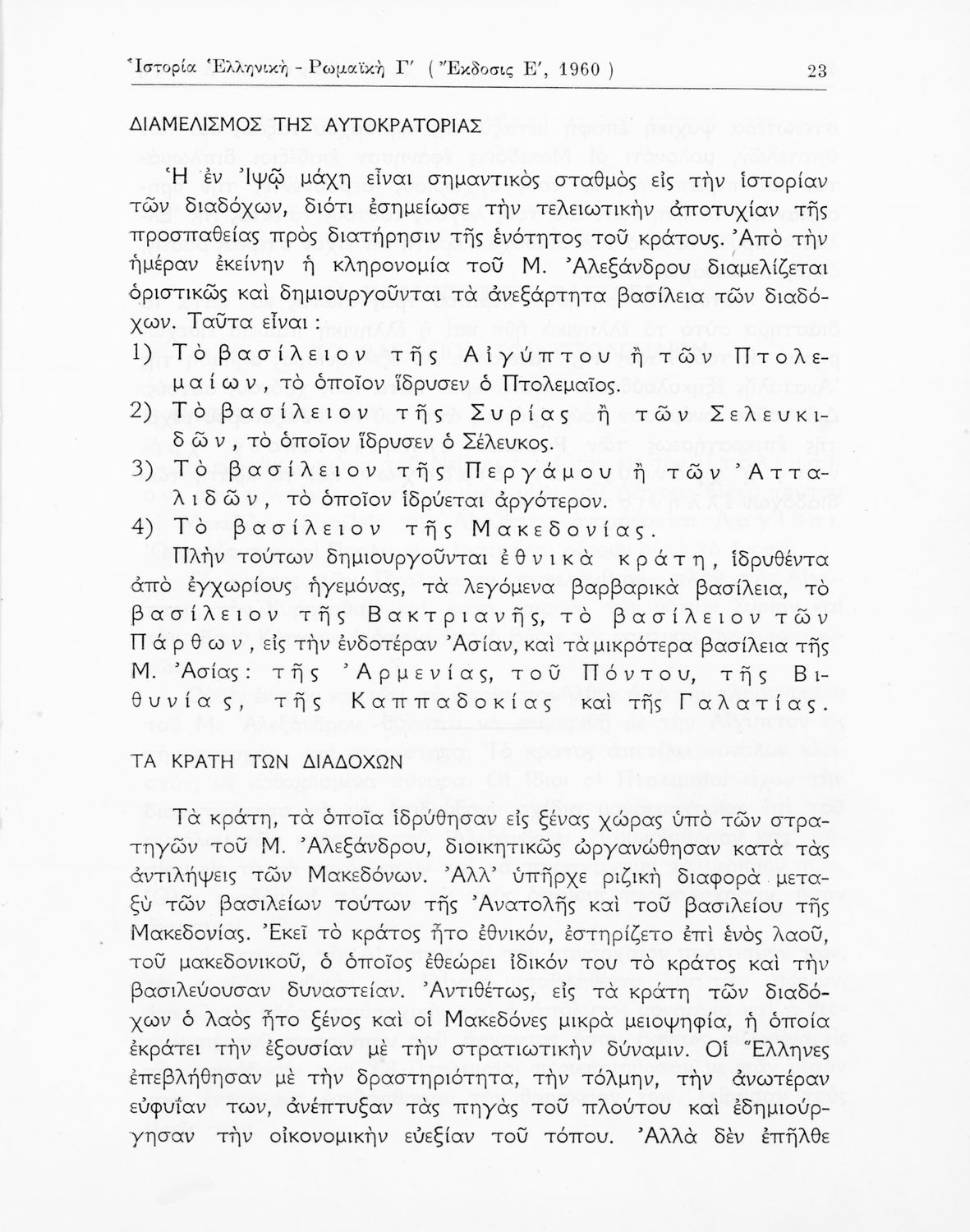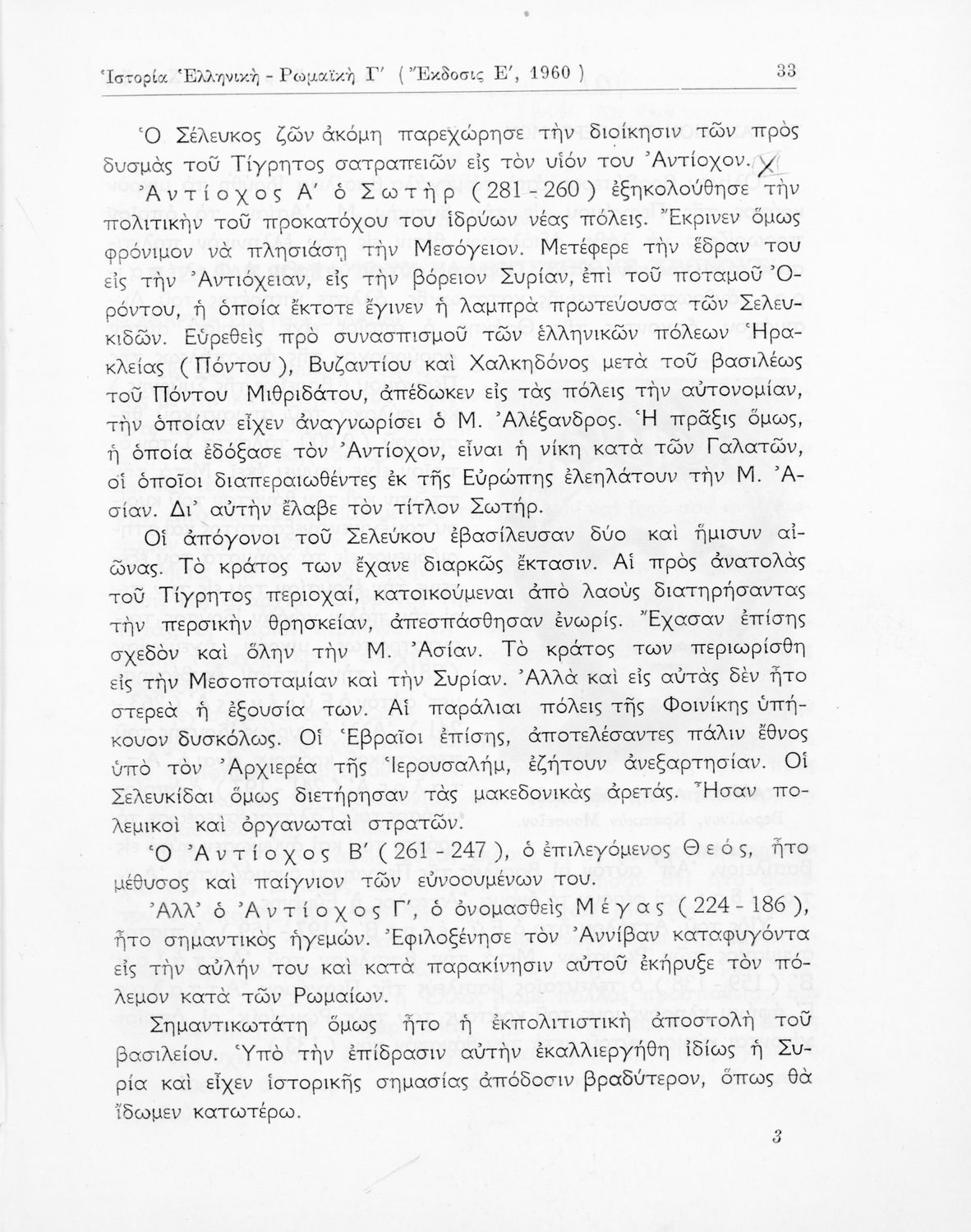 Ιστορία ελληνική - ρωμαϊκή από του θανάτου του Μ. Αλεξάνδρου μέχρι του Μ. Κωνσταντίνου. Δια την Γ΄ Τάξιν των Εξαταξίων Γυμνασίων