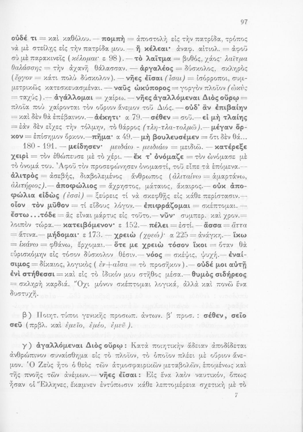 Σχολικό εγχειρίδιο της Δευτεροβάθμιας Εκπαίδευσης για το μάθημα των Αρχαίων Ελληνικών. Περιέχει ραψωδίες από την Οδύσσεια του Ομήρου με ερμηνευτικά σχόλια.