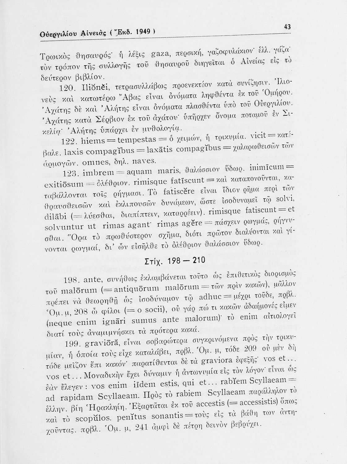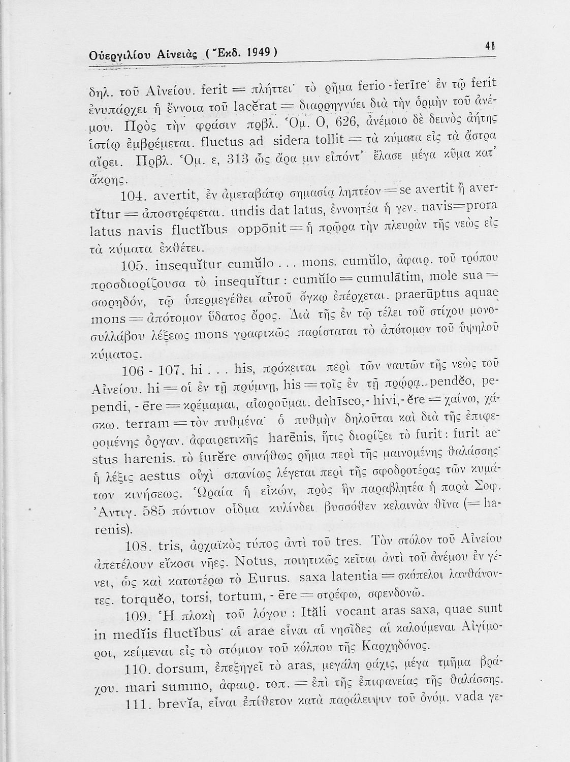 Σχολικό εγχειρίδιο Λατινικών για τη ΣΤ΄ Γυμνασίου που περιέχει βιογραφικό σημείωμα του Βιργίλιου, εισαγωγικά σχόλια, κείμενο και ερμηνευτικές σημειώσεις στo έργο.