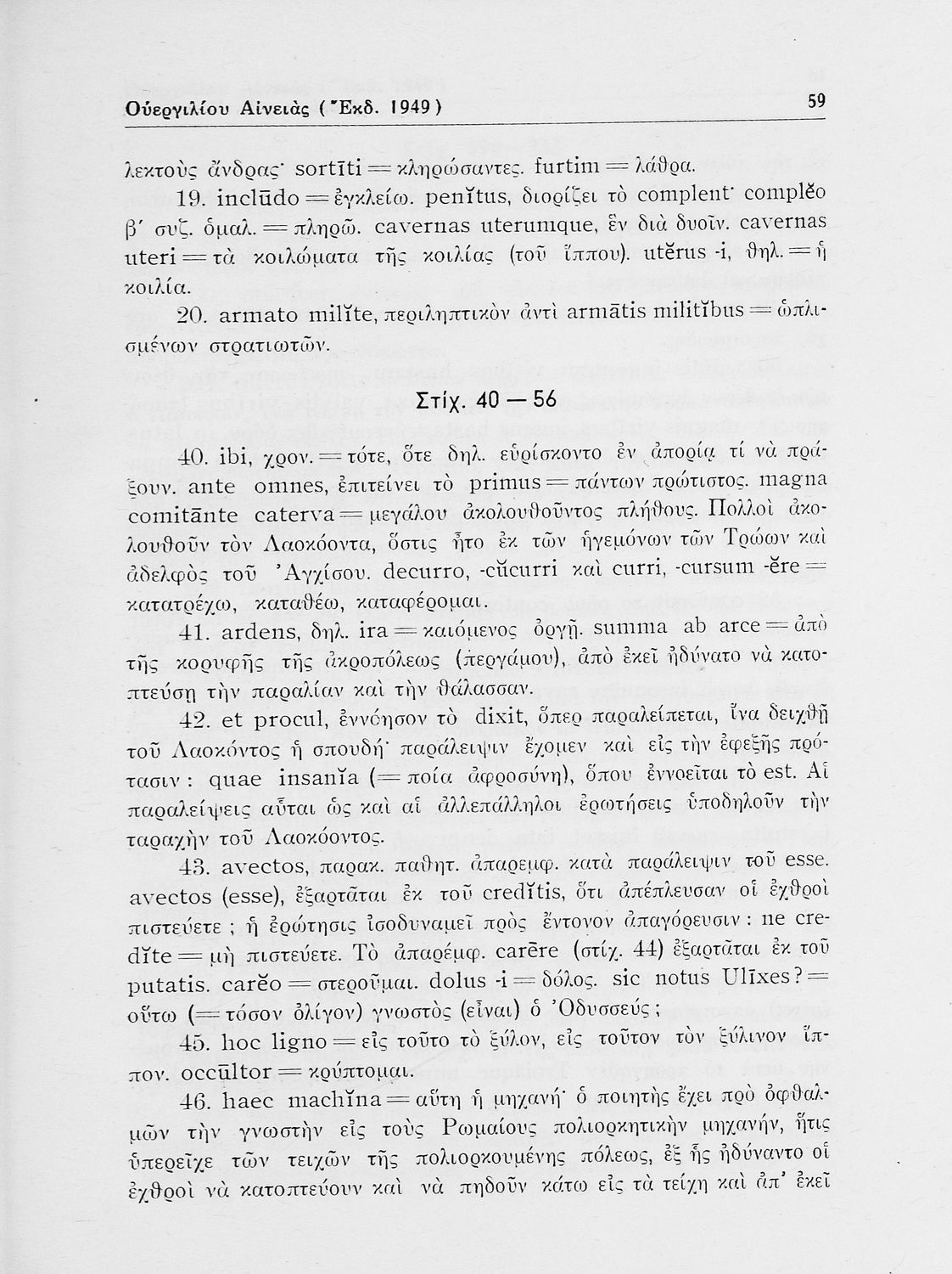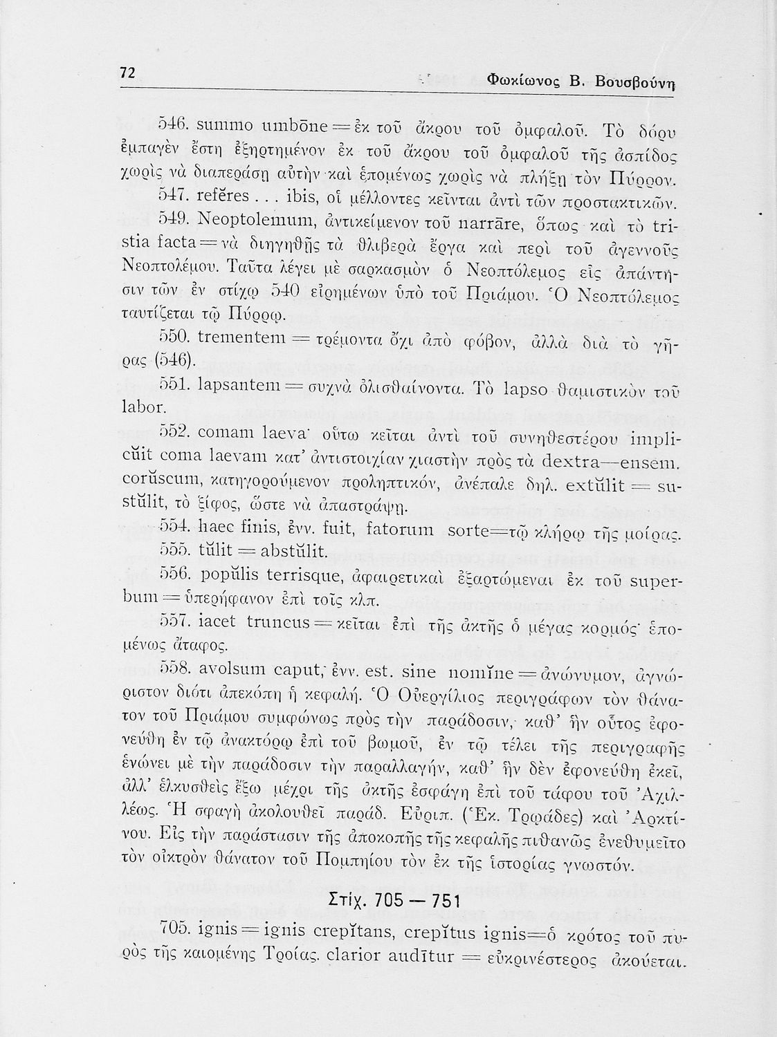LDR 01324 2200193 4500 035 ## _a01-19746 040 ## _aΙνστιτούτο Εκπαιδευτικής Πολιτικής 041 ## _ael 100 ## _aΠόπλιος Βιργίλιος Μάρων (P. Vergilius Maro) _aΦωκίωνας Β. Βουσβούνης (εισαγωγή _aσχόλια) 110 ## _a19746 245 0# _aΟυεργιλίου Αινειάς (Εκλογαί) δια την ΣΤ΄ τάξιν των Γυμνασίων παλαιού τύπου 260 ## _aΑθήνα _bΟργανισμός Εκδόσεως Σχολικών Βιβλίων _c1949 300 ## _a88 _c20 520 ## _aΣχολικό εγχειρίδιο Λατινικών για τη ΣΤ΄ Γυμνασίου που περιέχει βιογραφικό σημείωμα του Βιργιλίου, εισαγωγικά σχόλια, περιλήψεις των τριών πρώτων βιβλίων της Αινειάδας, κείμενο και ερμηνευτικές σημειώσεις στo έργο. 521 ## _aΣΤ' Γυμνασίου 522 ## _aΕλλάδα 546 ## _aΚαθαρεύουσα 563 ## _aΜαλακό Εξώφυλλο 650 #4 _aΆγχισος _aΑνδρομάχη _aΔίας _aΔούρειος Ίππος _aΉρα _aΚαρχηδόνα _aΠρίαμος _aΤρώες