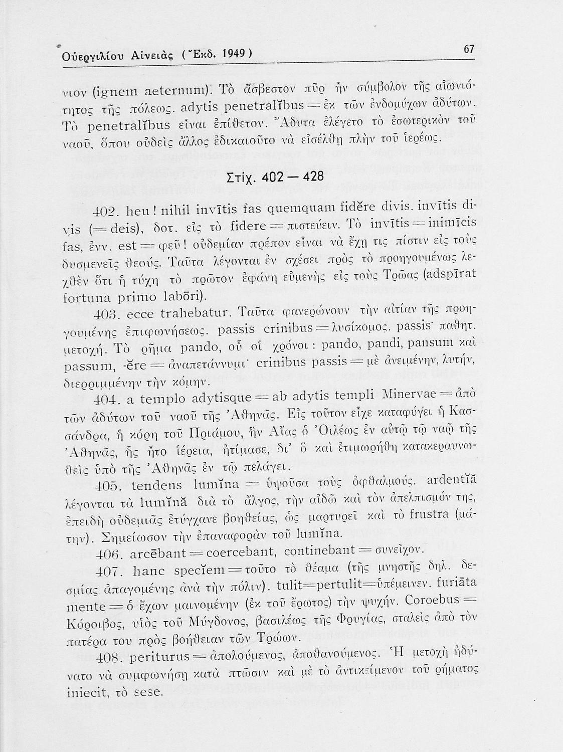 Σχολικό εγχειρίδιο Λατινικών για τη ΣΤ΄ Γυμνασίου που περιέχει βιογραφικό σημείωμα του Βιργιλίου, εισαγωγικά σχόλια, περιλήψεις των τριών πρώτων βιβλίων της Αινειάδας, κείμενο και ερμηνευτικές σημειώσεις στo έργο.