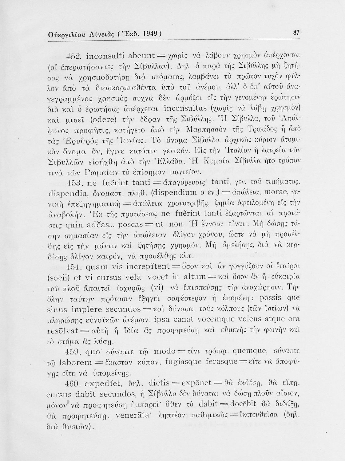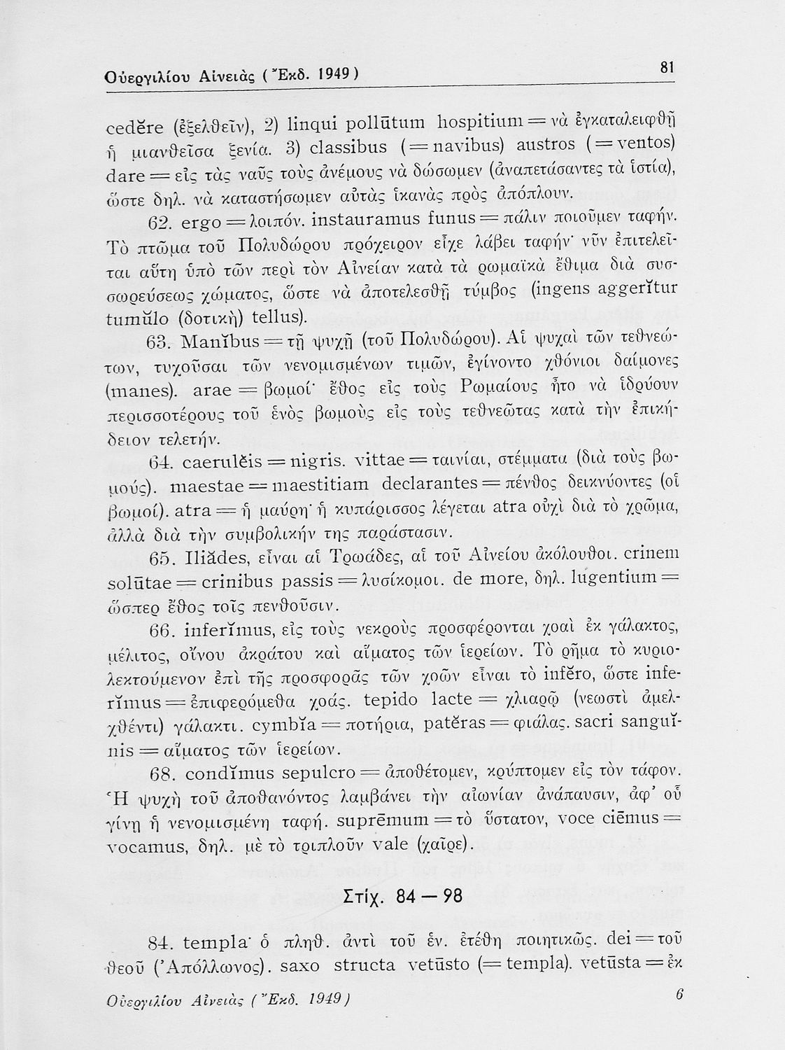 Σχολικό εγχειρίδιο Λατινικών για τη ΣΤ΄ Γυμνασίου που περιέχει βιογραφικό σημείωμα του Βιργίλιου, εισαγωγικά σχόλια, κείμενο και ερμηνευτικές σημειώσεις στo έργο.