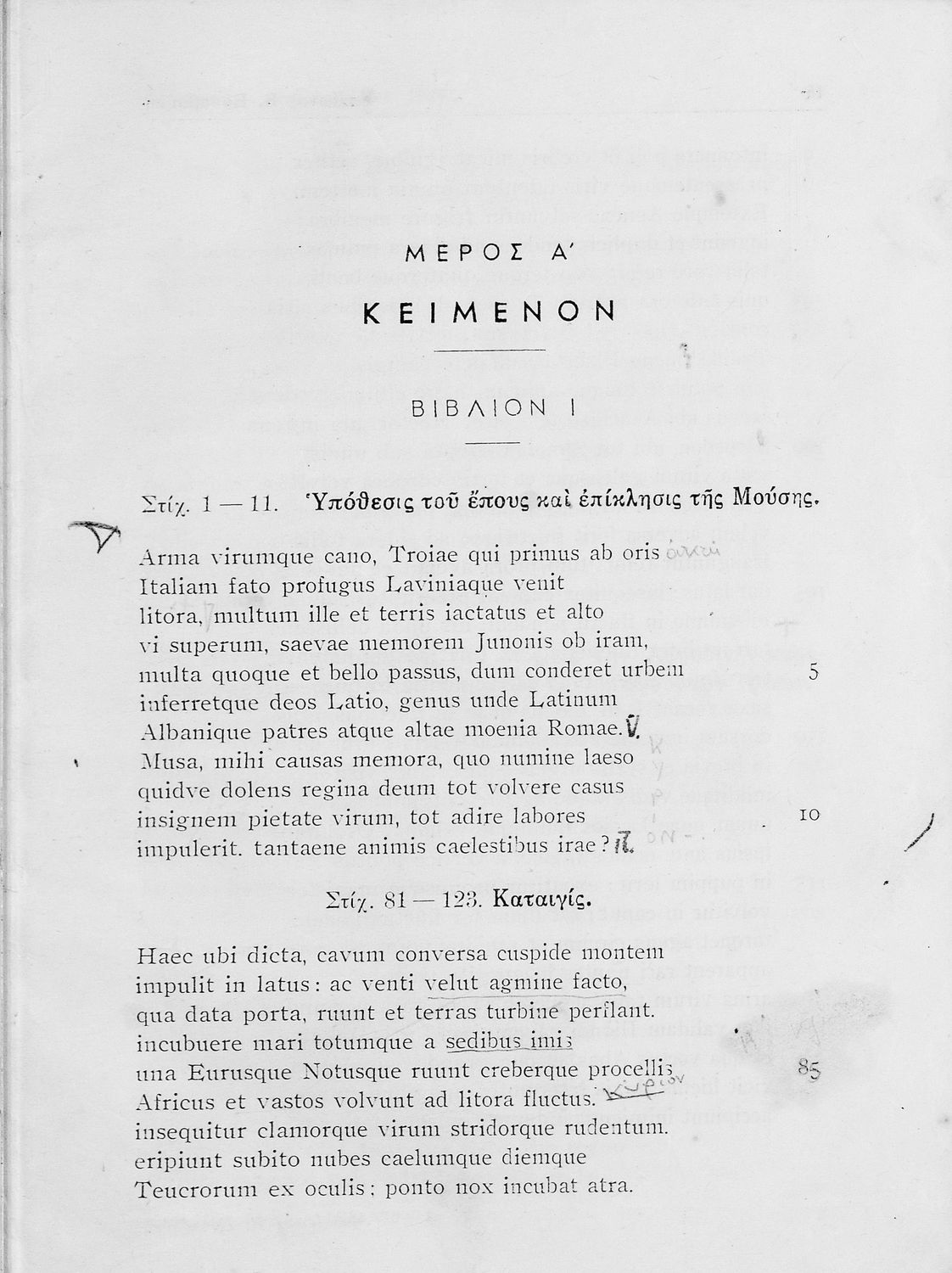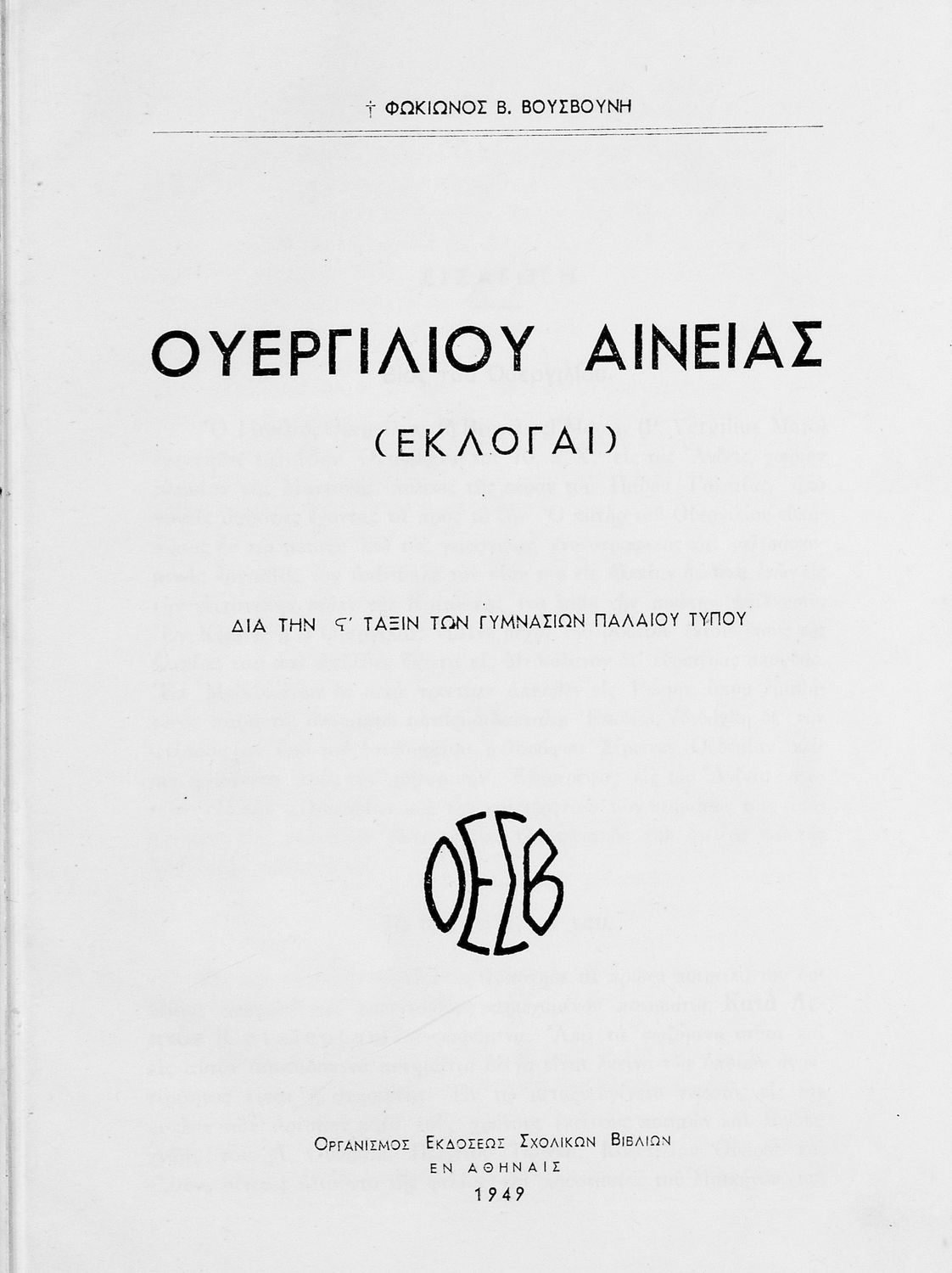 Ουεργιλίου Αινειάς (Εκλογαί) δια την ΣΤ΄ τάξιν των Γυμνασίων παλαιού τύπου