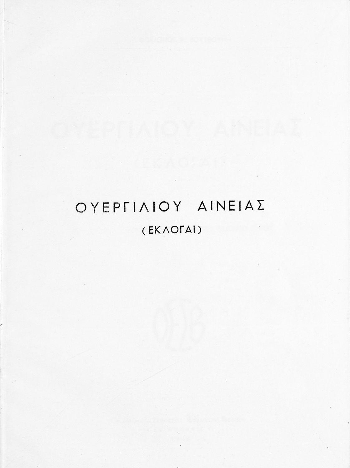 Τίτλος: Ουεργιλίου Αινειάς (Εκλογαί) δια την ΣΤ΄ τάξιν των Γυμνασίων παλαιού τύπου