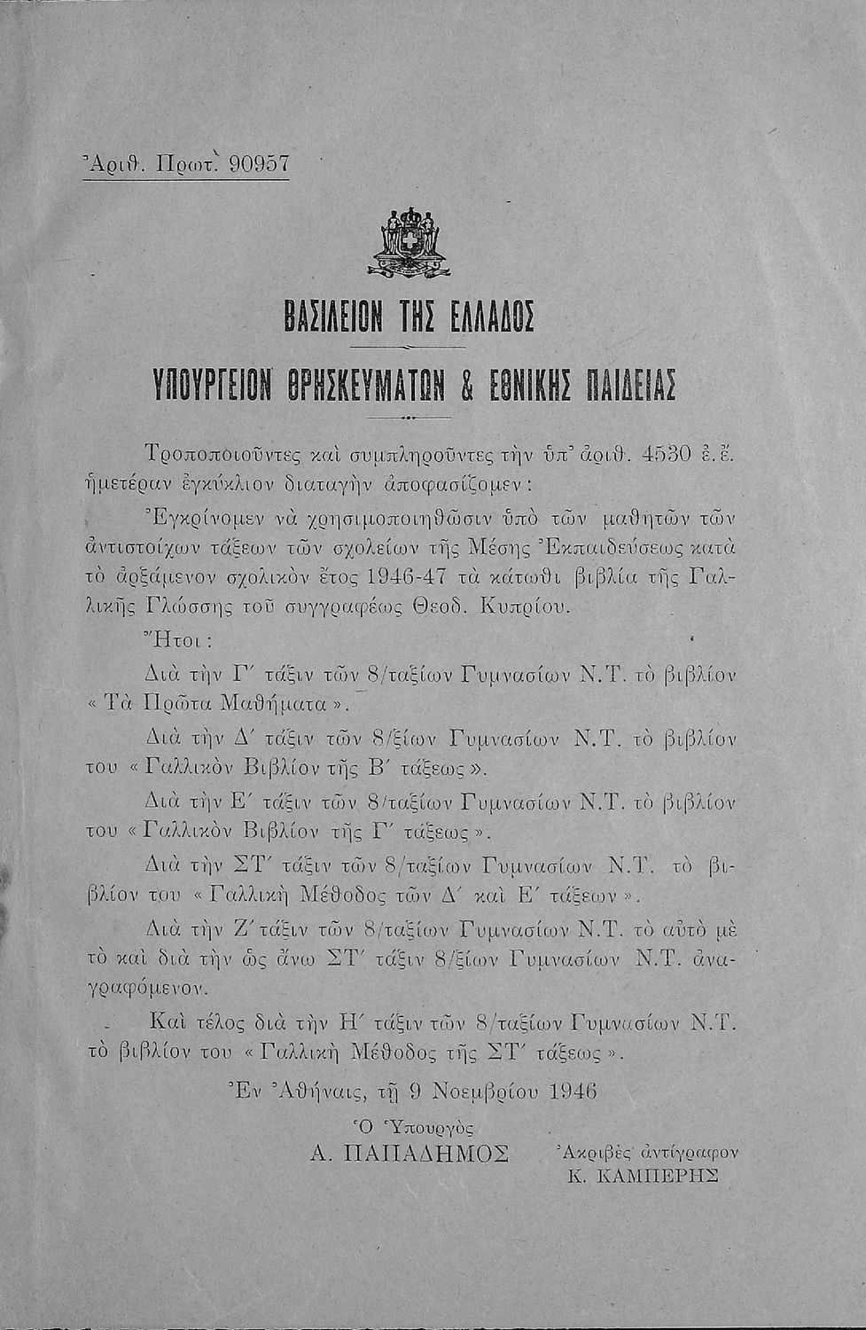 Υπουργική απόφαση / Σύμβαση: 90957/9-11-1946