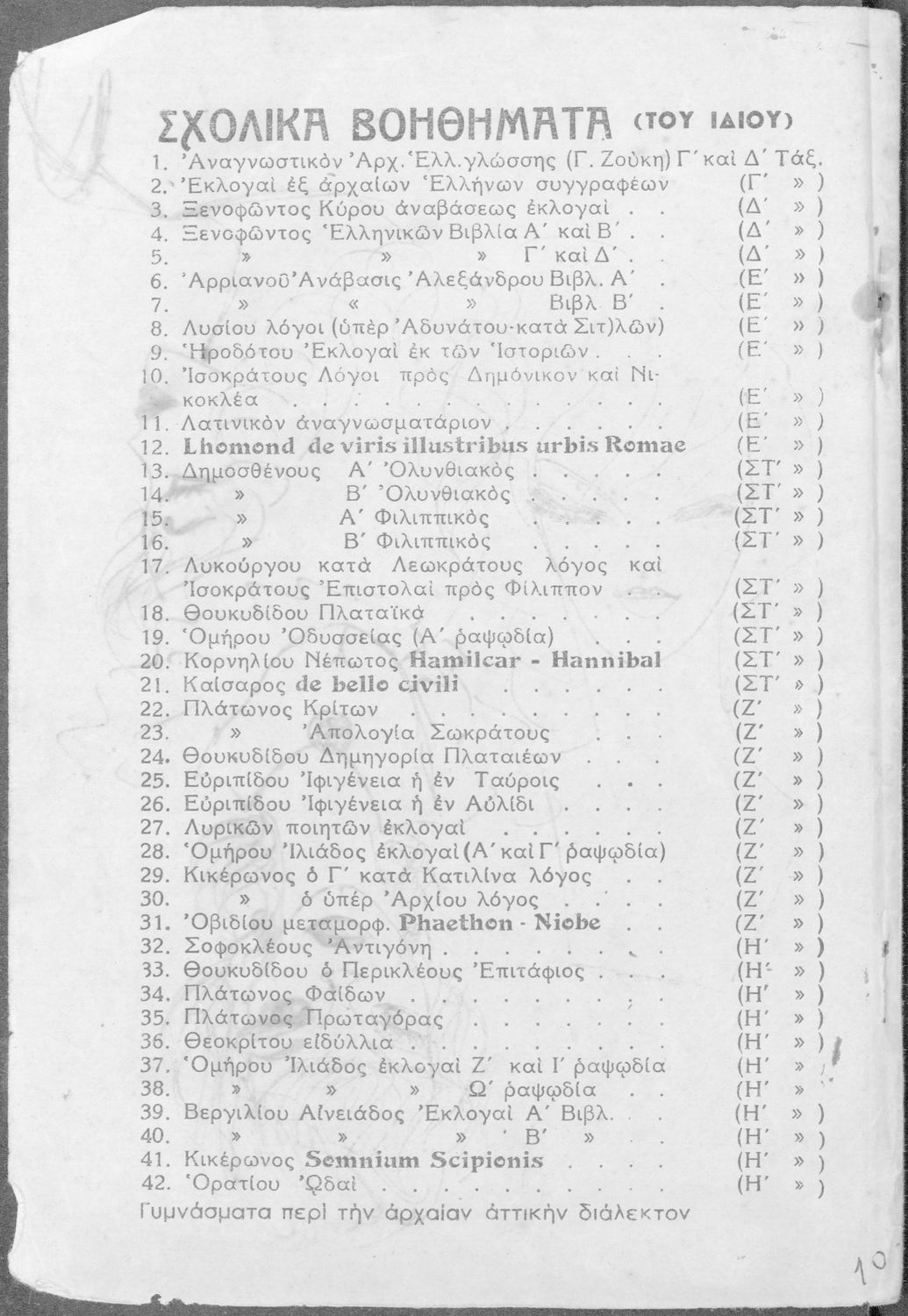 Τάξη:  Δ' Γυμνασίου παλαιού τύπου
