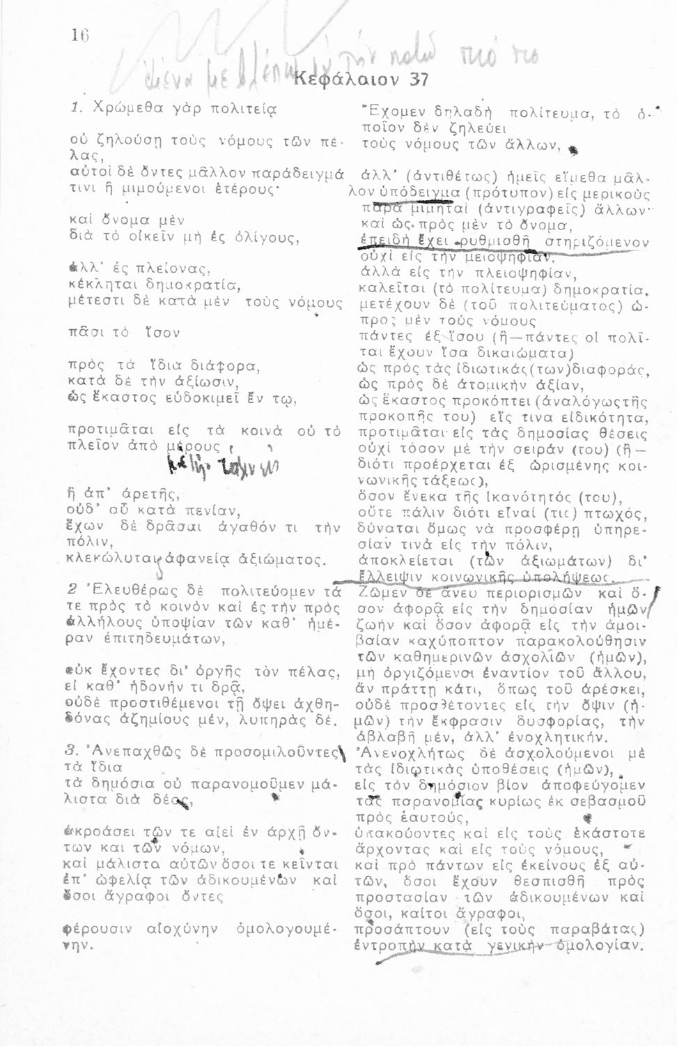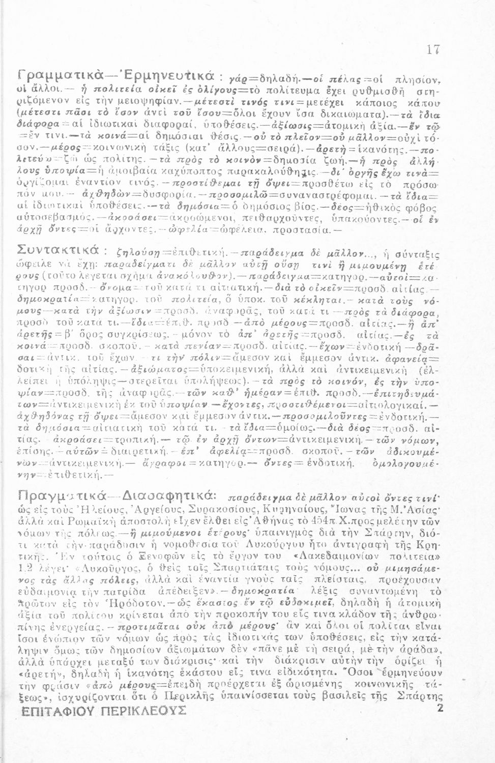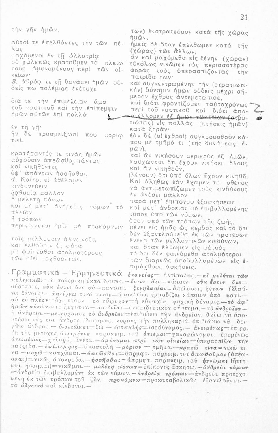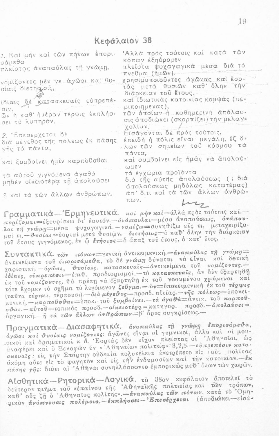 Μαθητικό βοήθημα Αρχαίων Ελληνικών για τους μαθητές της Η' τάξης των Οκταταξίων Γυμνασίων που περιέχει τον Επιτάφιο του Περικλή, μετάφραση, και γραμματικά και συντακτικά σχόλια.