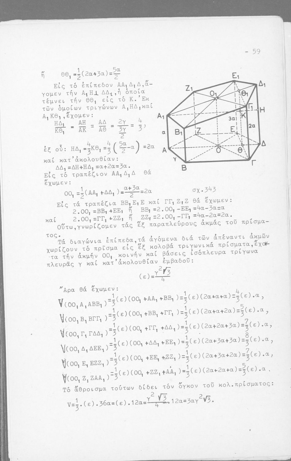 Σχολικό εγχειρίδιο Μαθηματικών Δ΄ και Ε΄ Γυμνασίου που είναι χωρισμένο σε θεωρήματα και ασκήσεις και εστιάζει στη Γεωμετρία. Φέρει το σύμβολο της δικτατορίας.