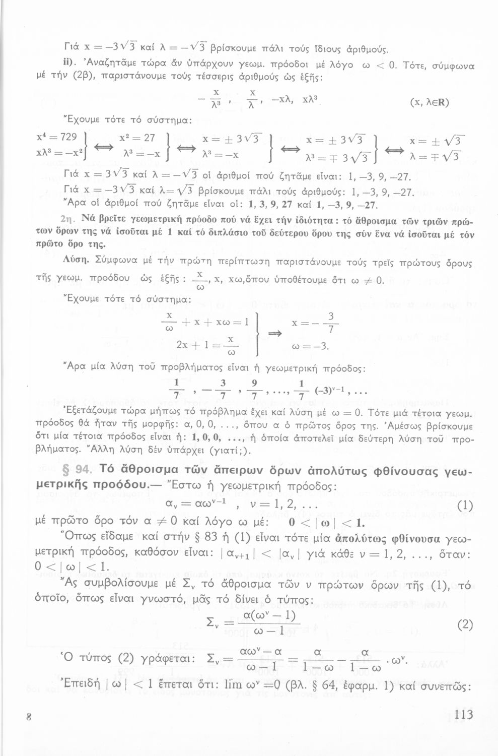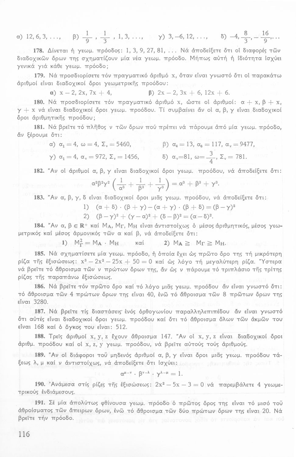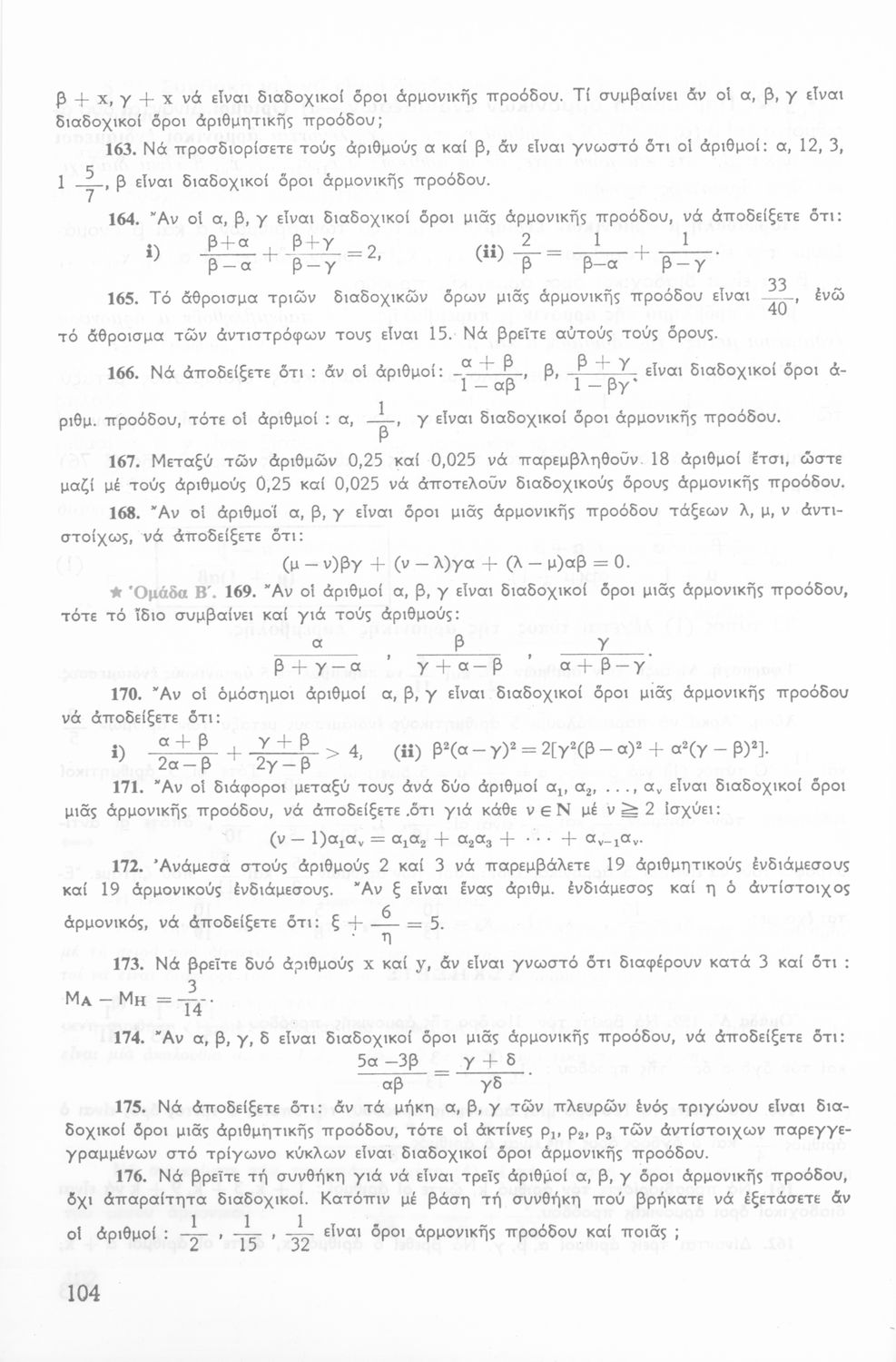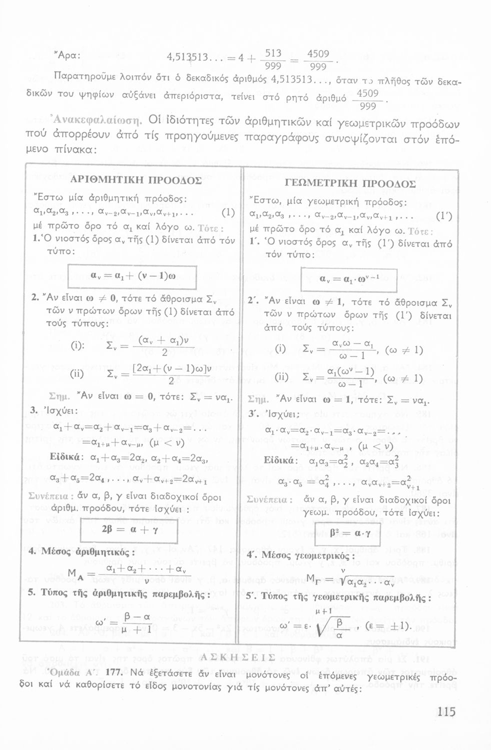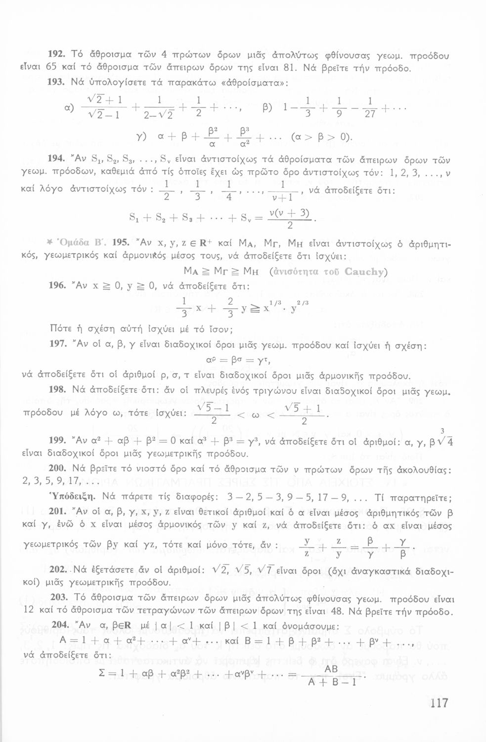Σχολικό εγχειρίδιο Άλγεβρας Β΄ Λυκείου χωρισμένο σε αξιώματα, θεωρήματα, παρατηρήσεις και ασκήσεις που εστιάζει στα σύνολα, τις ακολουθίες και τις προόδους.