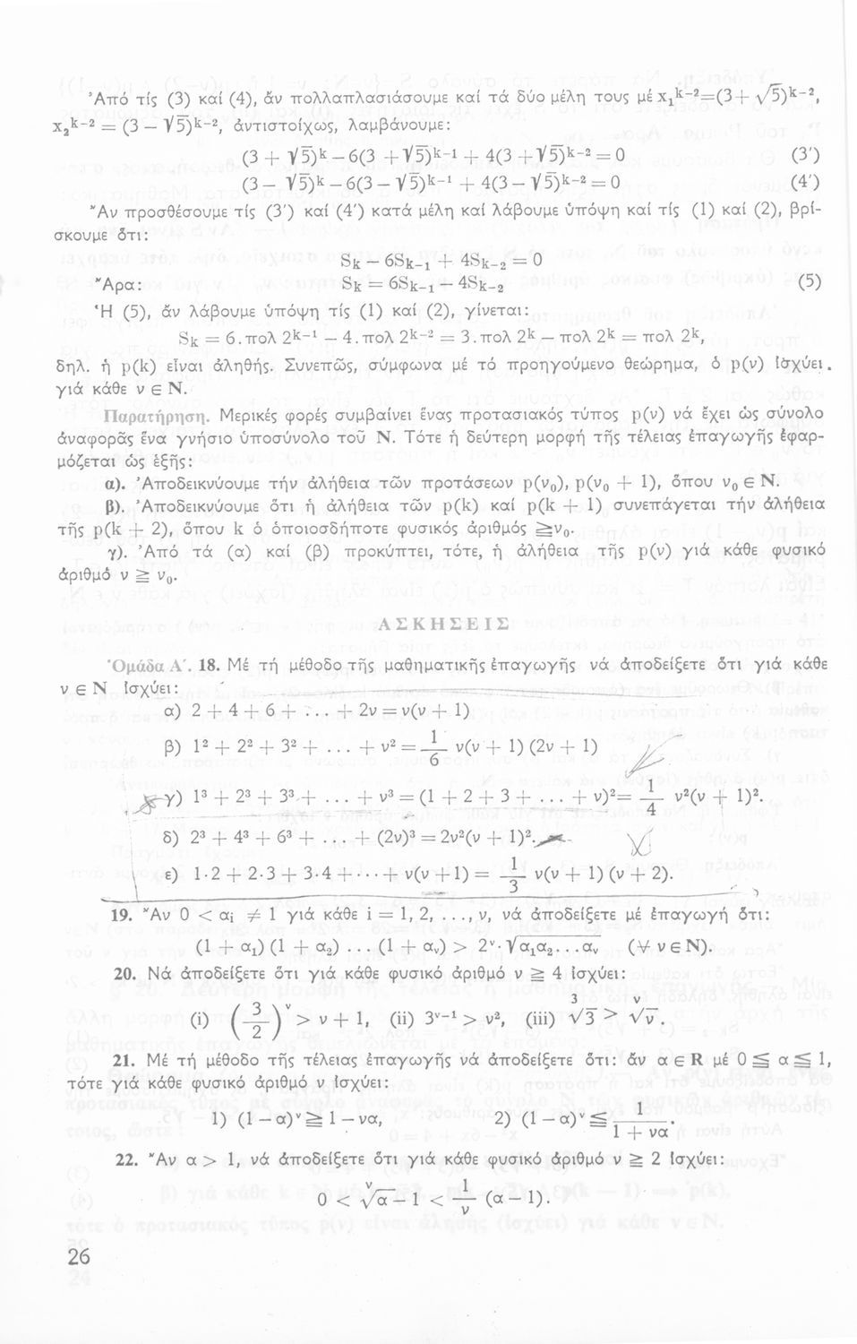 Σχολικό εγχειρίδιο Άλγεβρας Β΄ Λυκείου χωρισμένο σε αξιώματα, θεωρήματα, παρατηρήσεις και ασκήσεις που εστιάζει στα σύνολα, τις ακολουθίες και τις προόδους.