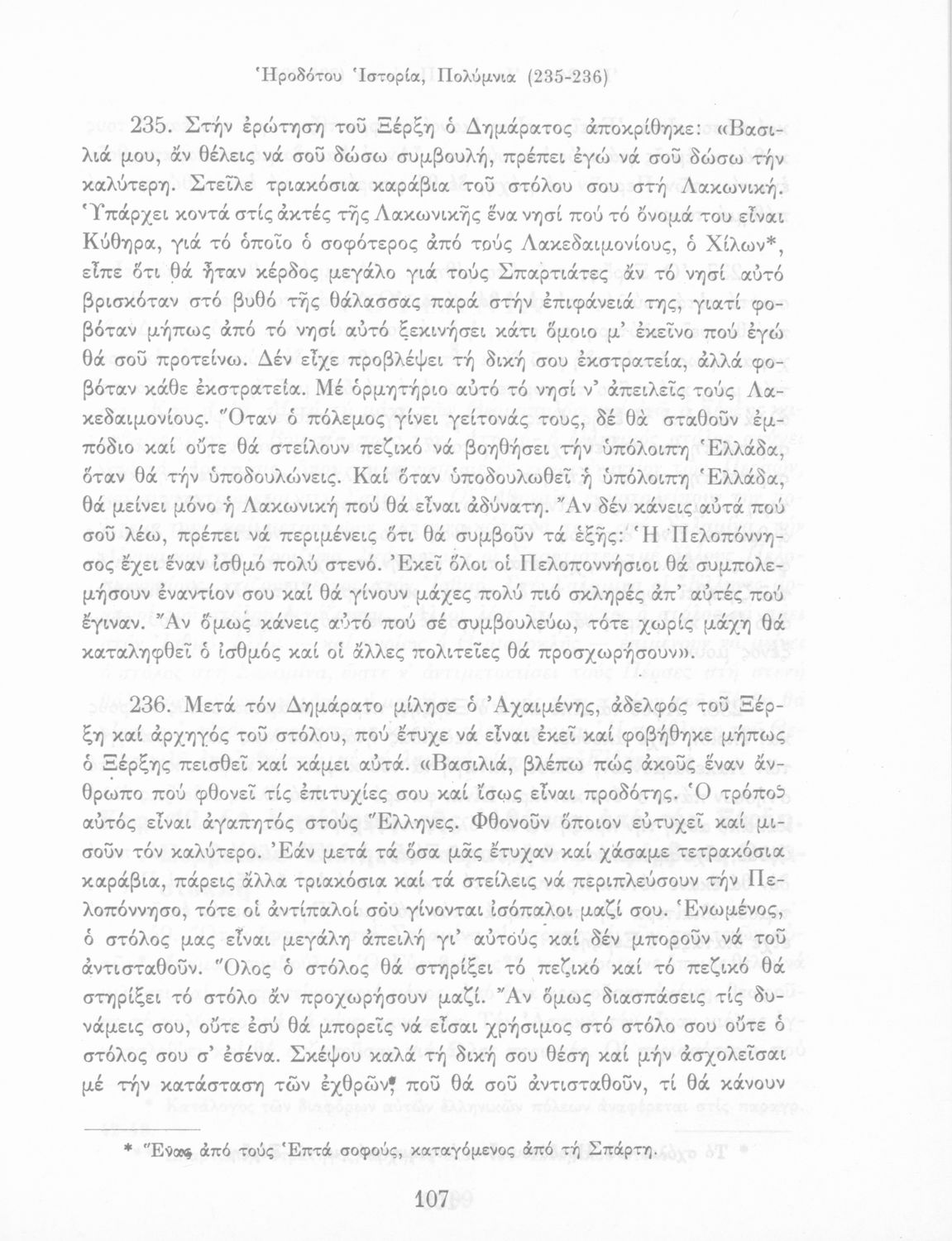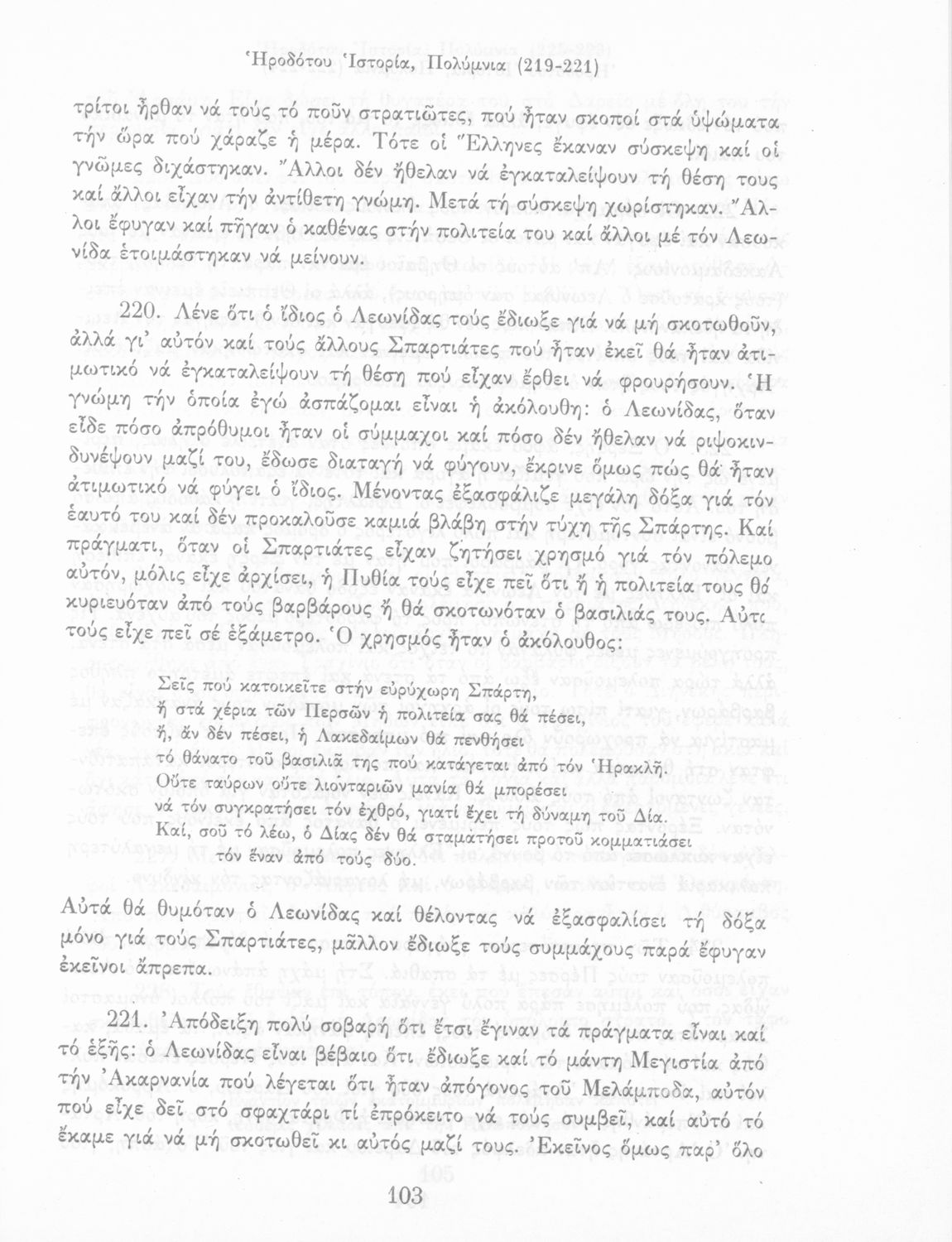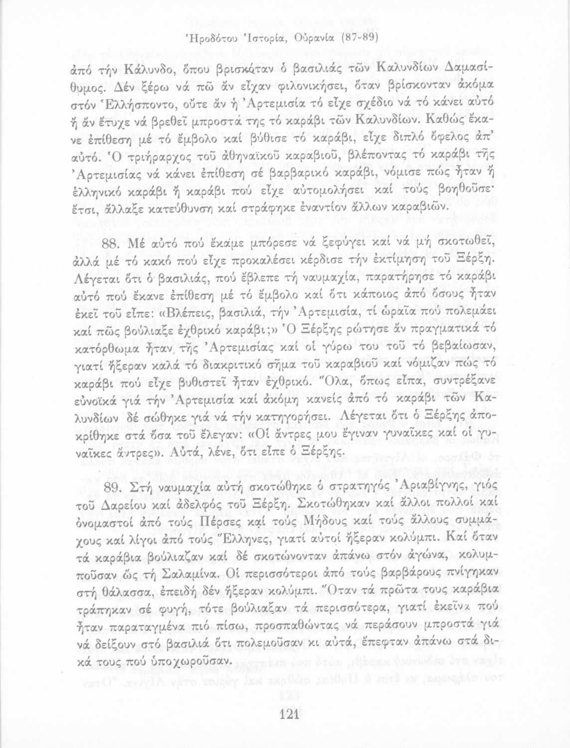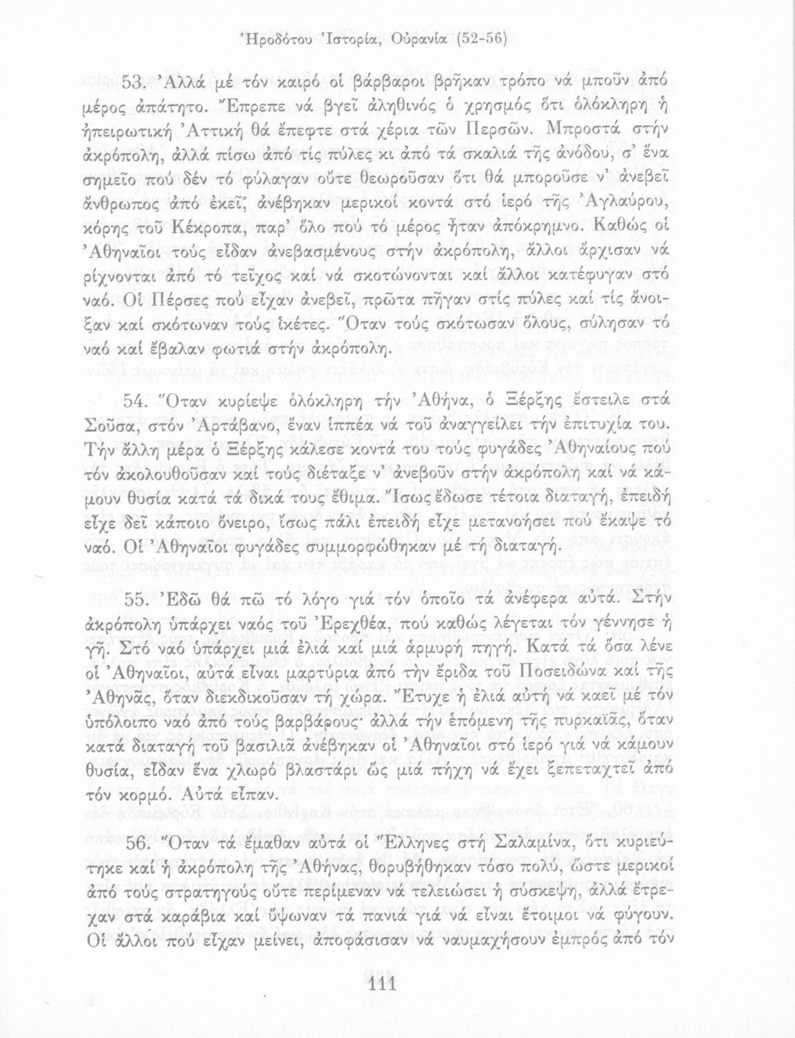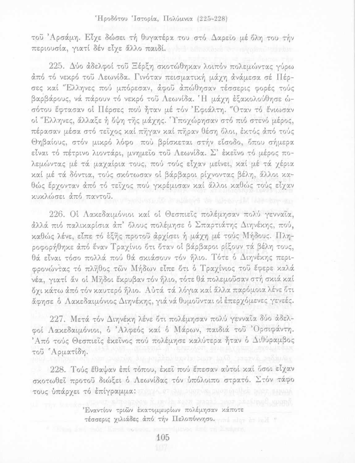 Σχολικό εγχειρίδιο Αρχαίων Ελληνικών Α΄ Γυμνασίου που περιλαμβάνει εισαγωγή στη ζωή και το έργο του Ηρόδοτου και αποσπάσματα από τα εννέα βιβλία της Ιστορίας του σε μετάφραση.