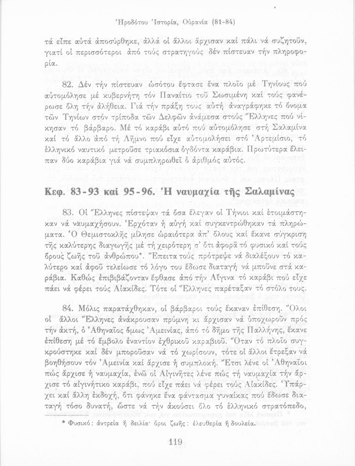 Βαθμίδα εκπαίδευσης: Δευτεροβάθμια Τάξη: Α' Γυμνασίου Μάθημα: Αρχαία Ελληνικά Γλώσσα: Δημοτική Παρουσίαση περιεχομένου: Σχολικό εγχειρίδιο Αρχαίων Ελληνικών Α΄ Γυμνασίου που περιλαμβάνει εισαγωγή στη ζωή και το έργο του Ηρόδοτου και αποσπάσματα από τα εννέα βιβλία της Ιστορίας του σε μετάφραση. |