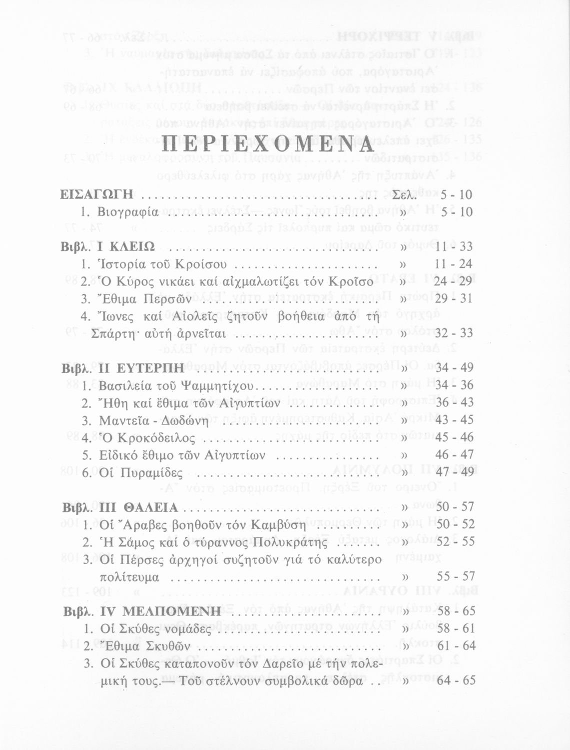 Σχολικό εγχειρίδιο Αρχαίων Ελληνικών Α΄ Γυμνασίου που περιλαμβάνει εισαγωγή στη ζωή και το έργο του Ηρόδοτου, και αποσπάσματα από τα 9 βιβλία της Ιστορίας του σε μετάφραση.