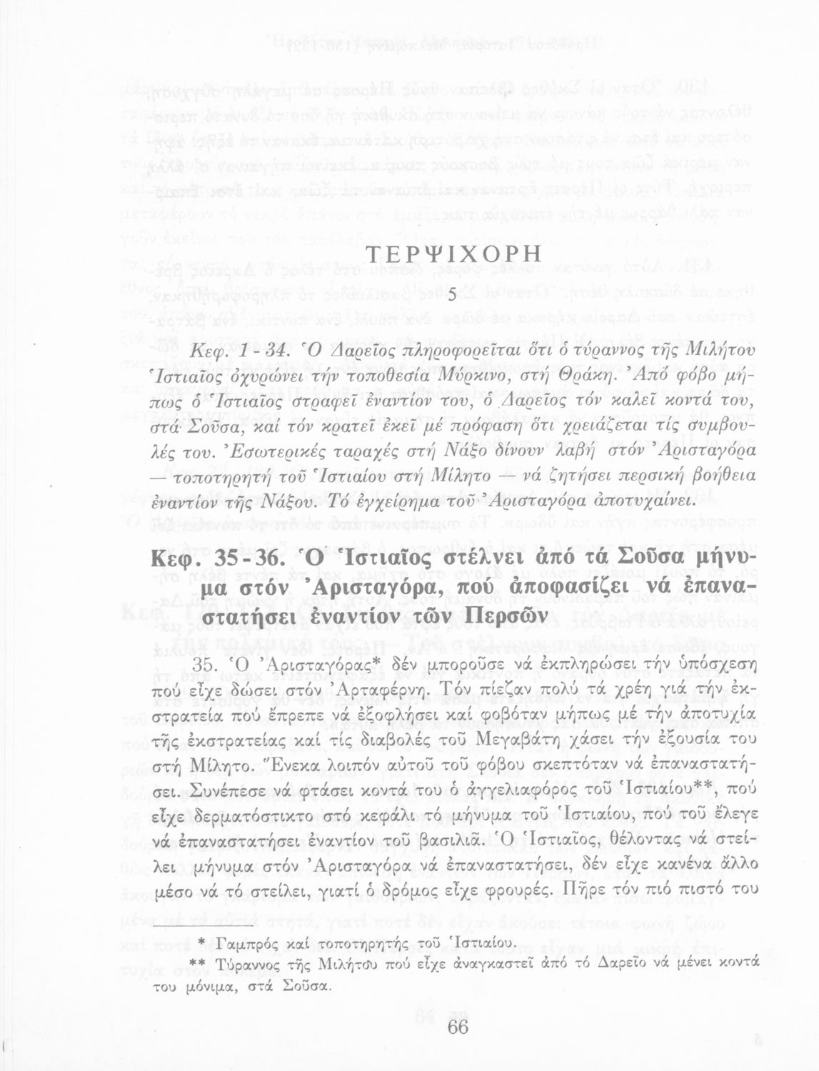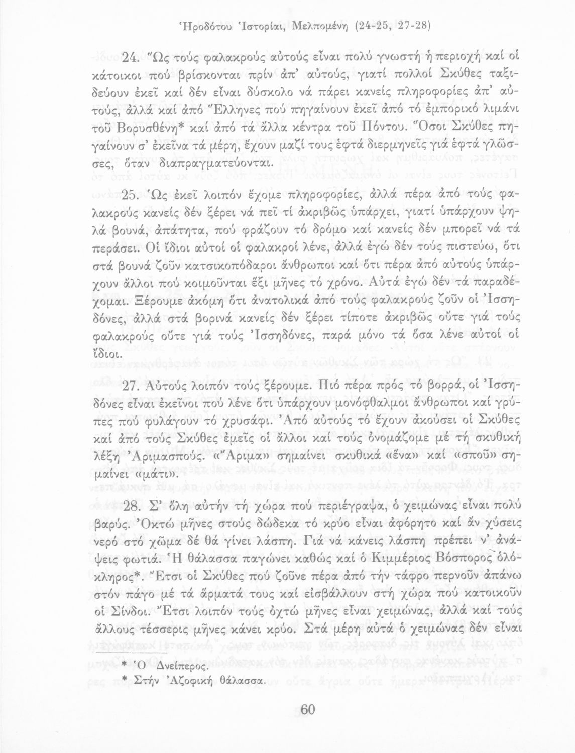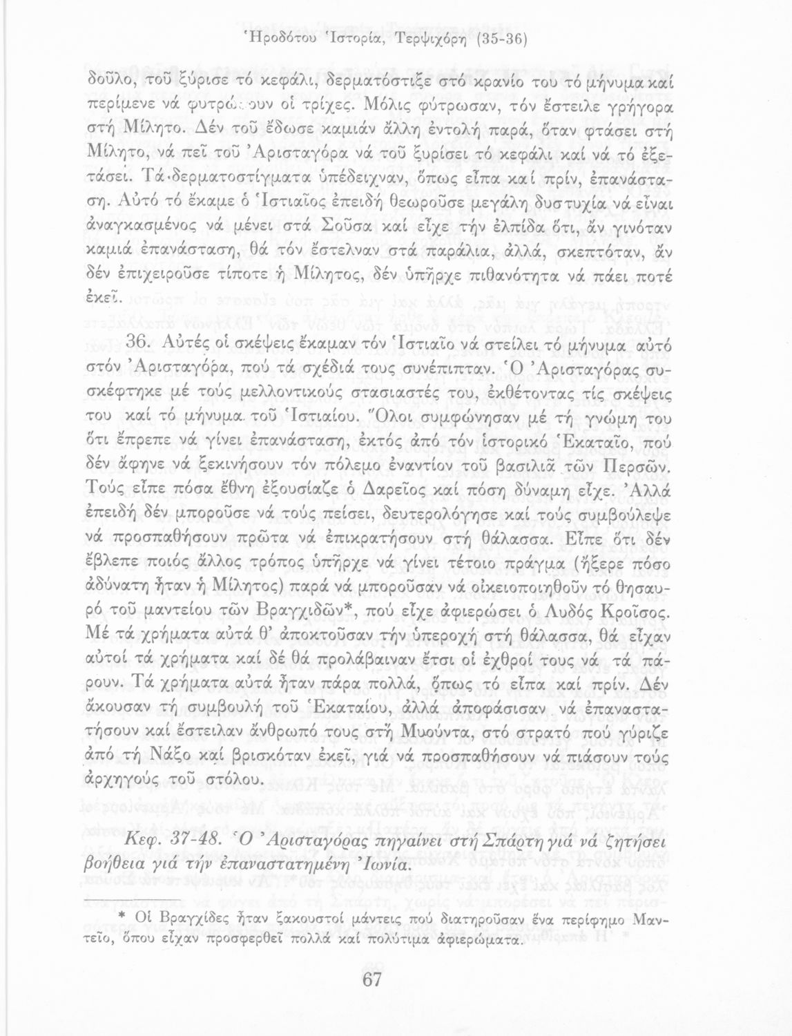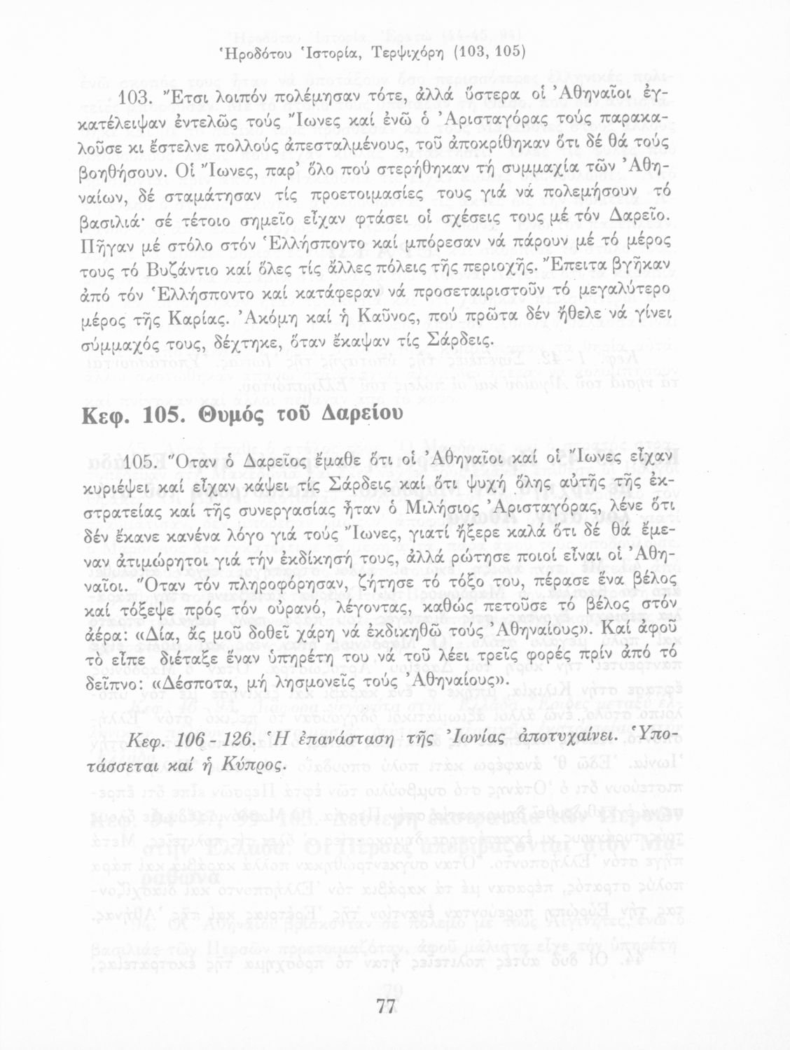 Σχολικό εγχειρίδιο Αρχαίων Ελληνικών Α΄ Γυμνασίου που περιλαμβάνει αποσπάσματα από την Ιστορία του Ηρόδοτου σε μετάφραση, εισαγωγή στη ζωή, το έργο και τη διάλεκτό του και ερμηνευτικά και πραγματολογικά σχόλια.