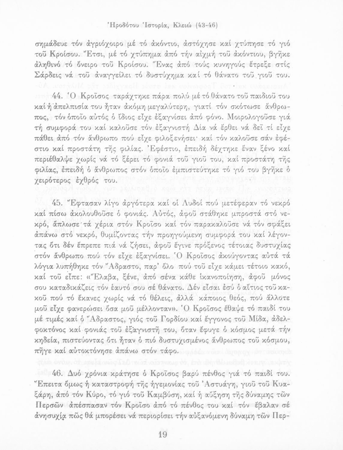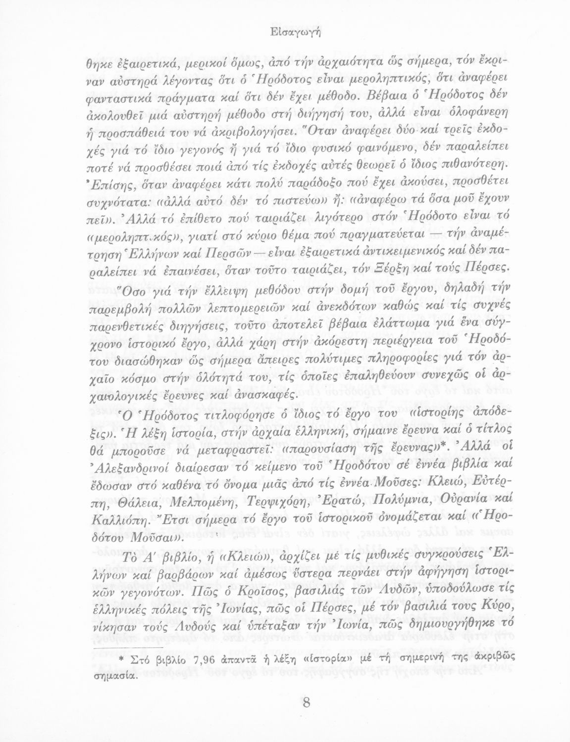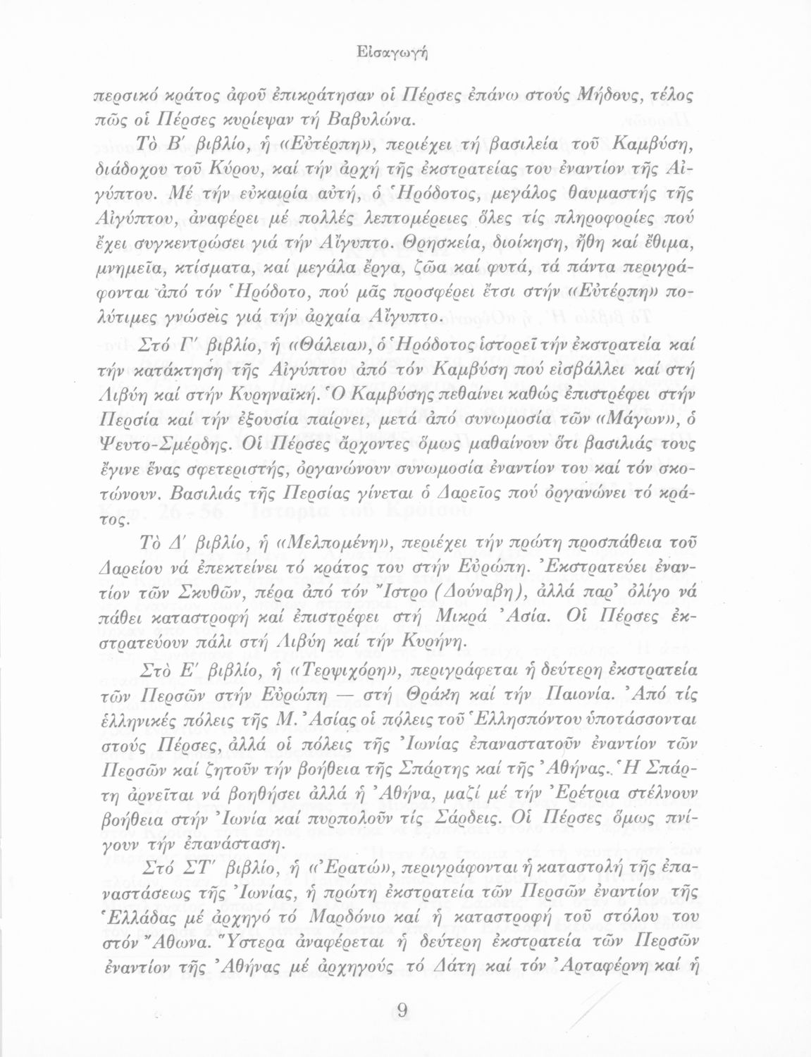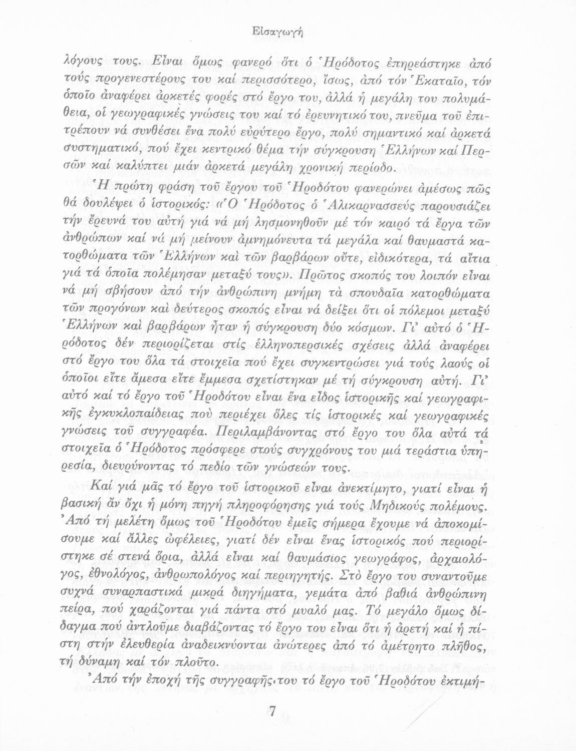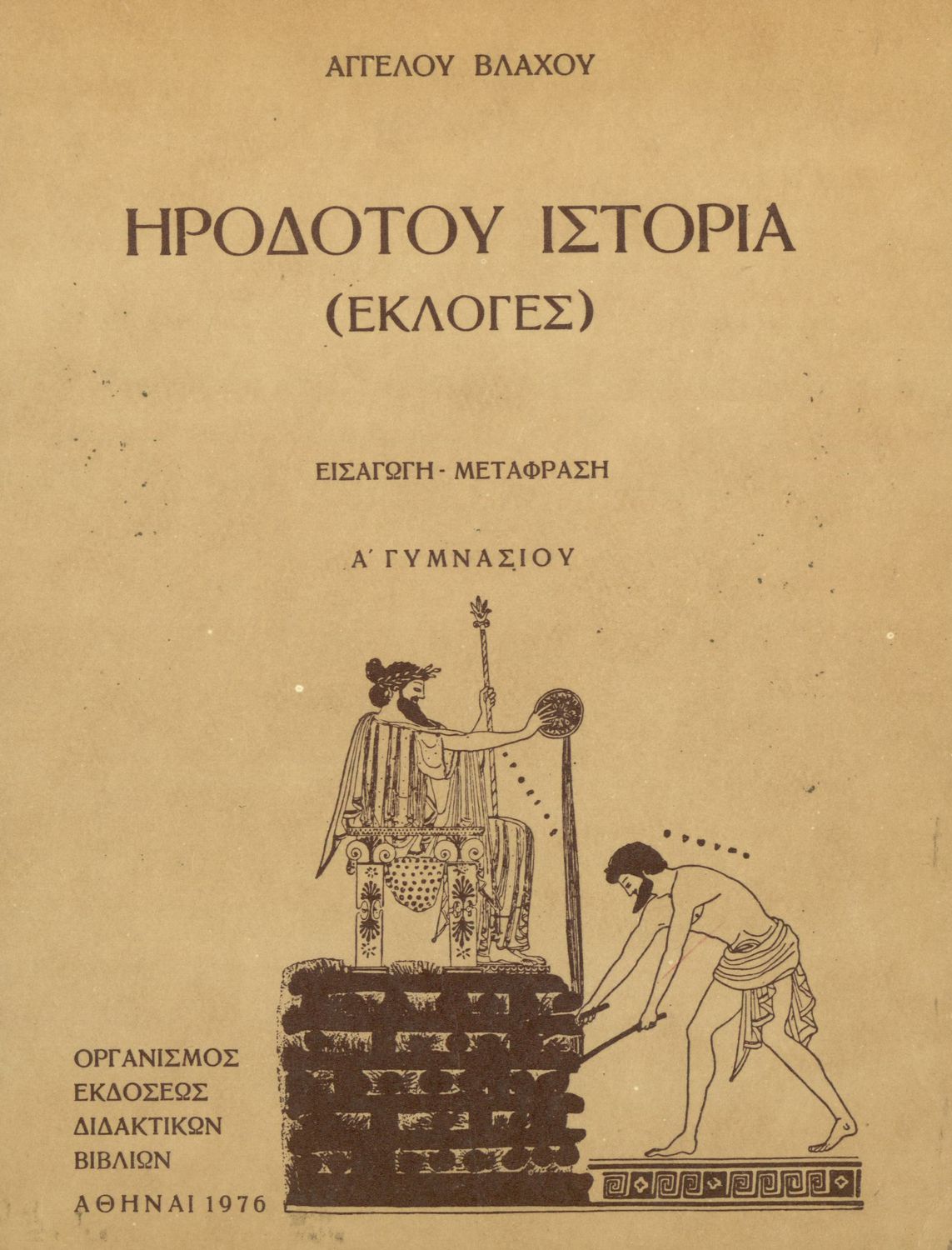 Σχολικό εγχειρίδιο Αρχαίων Ελληνικών Α΄ Γυμνασίου που περιλαμβάνει εισαγωγή στη ζωή και το έργο του Ηρόδοτου και αποσπάσματα από τα εννέα βιβλία της Ιστορίας του σε μετάφραση.