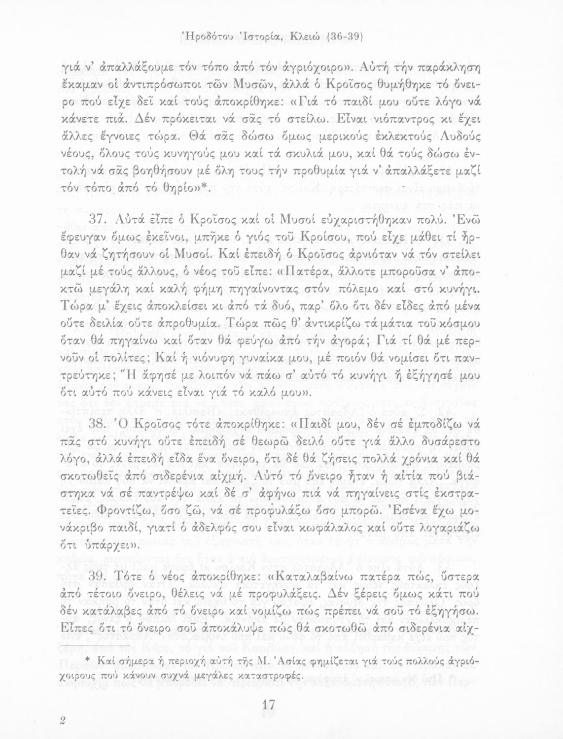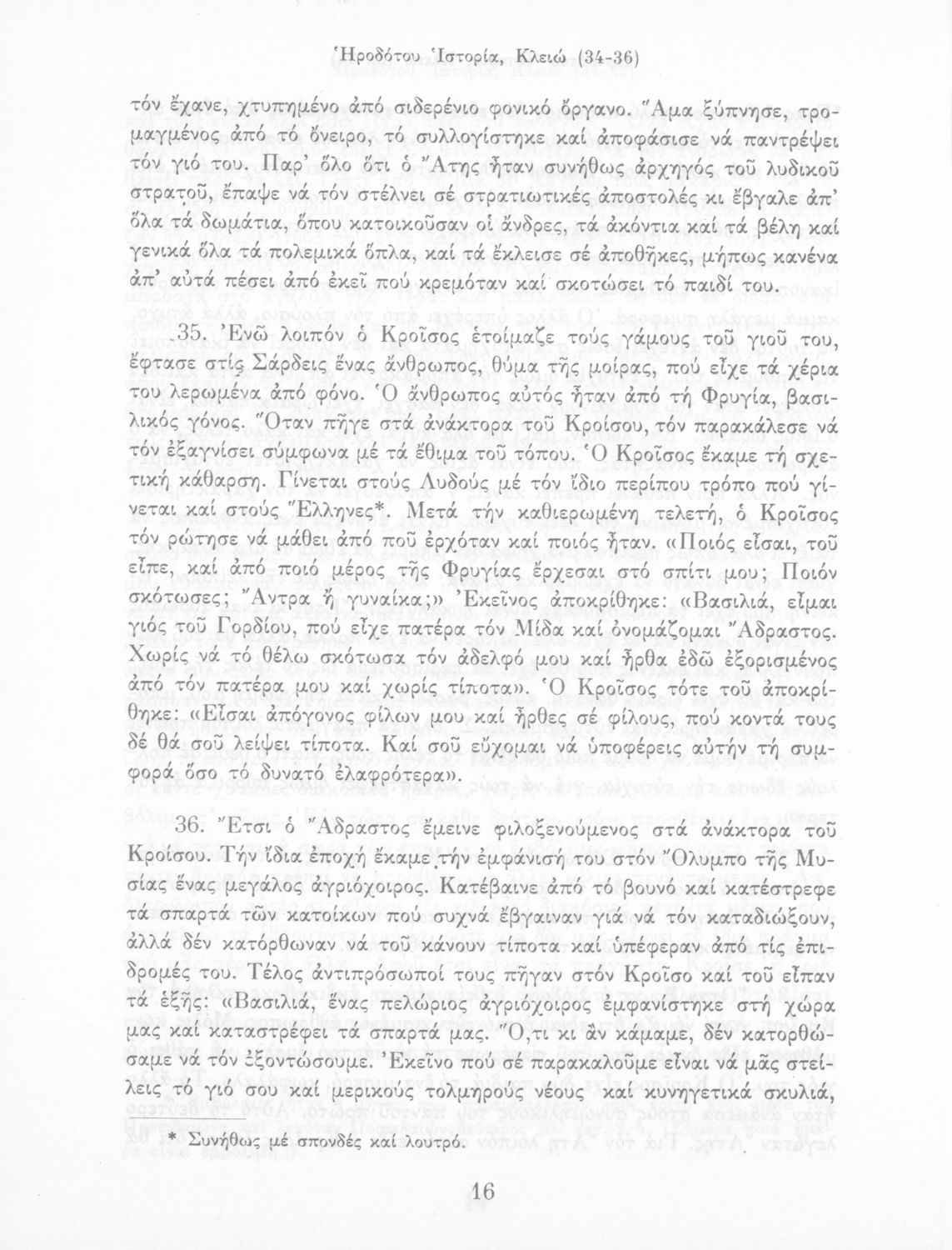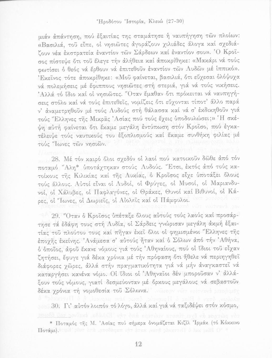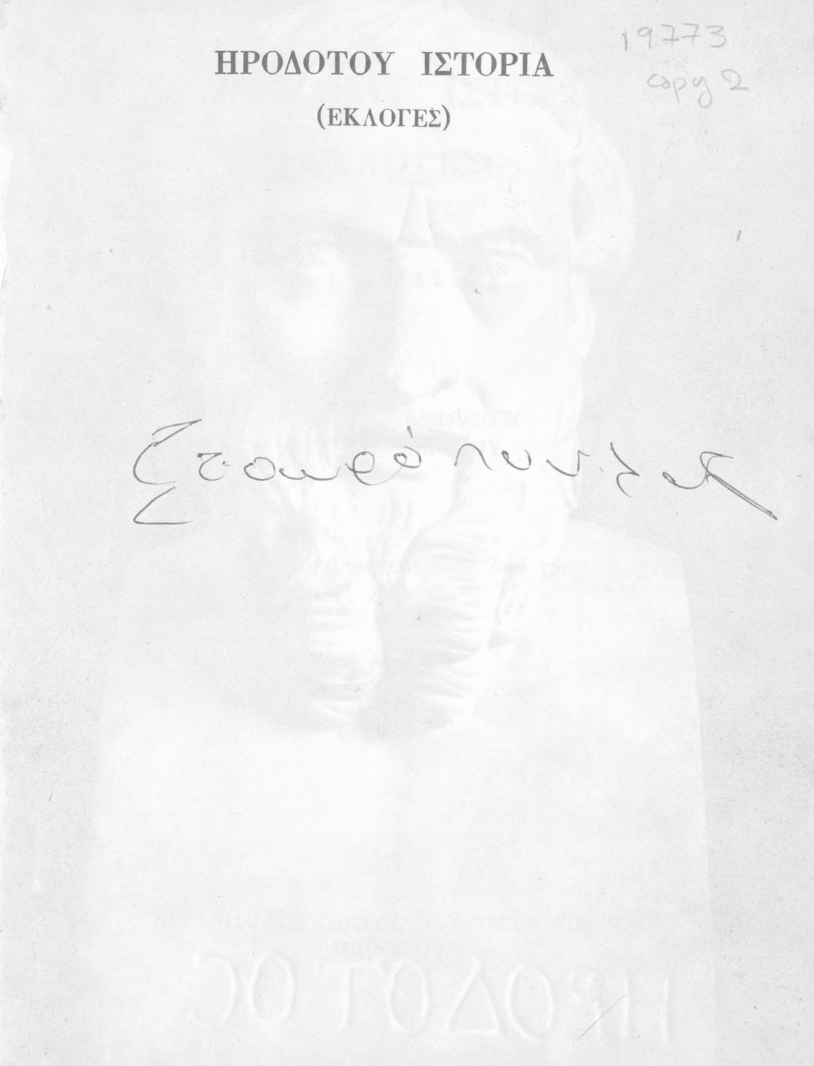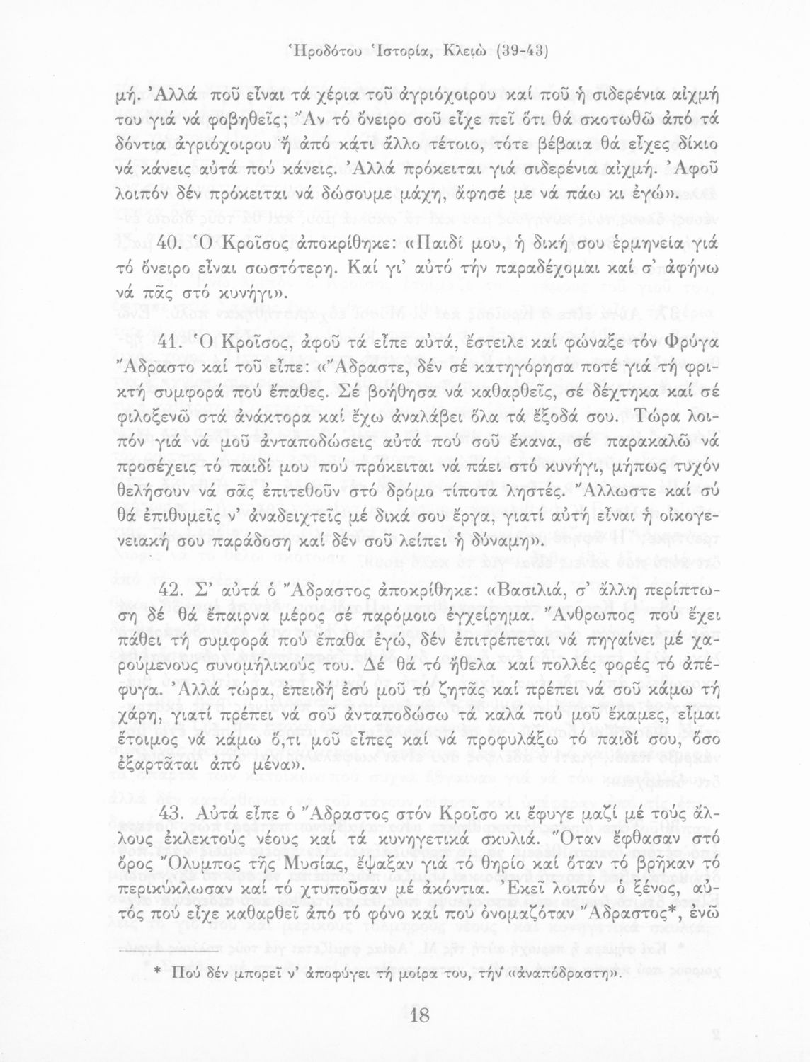 Σχολικό εγχειρίδιο Αρχαίων Ελληνικών Α΄ Γυμνασίου που περιλαμβάνει εισαγωγή στη ζωή και το έργο του Ηρόδοτου και αποσπάσματα από τα εννέα βιβλία της Ιστορίας του σε μετάφραση.