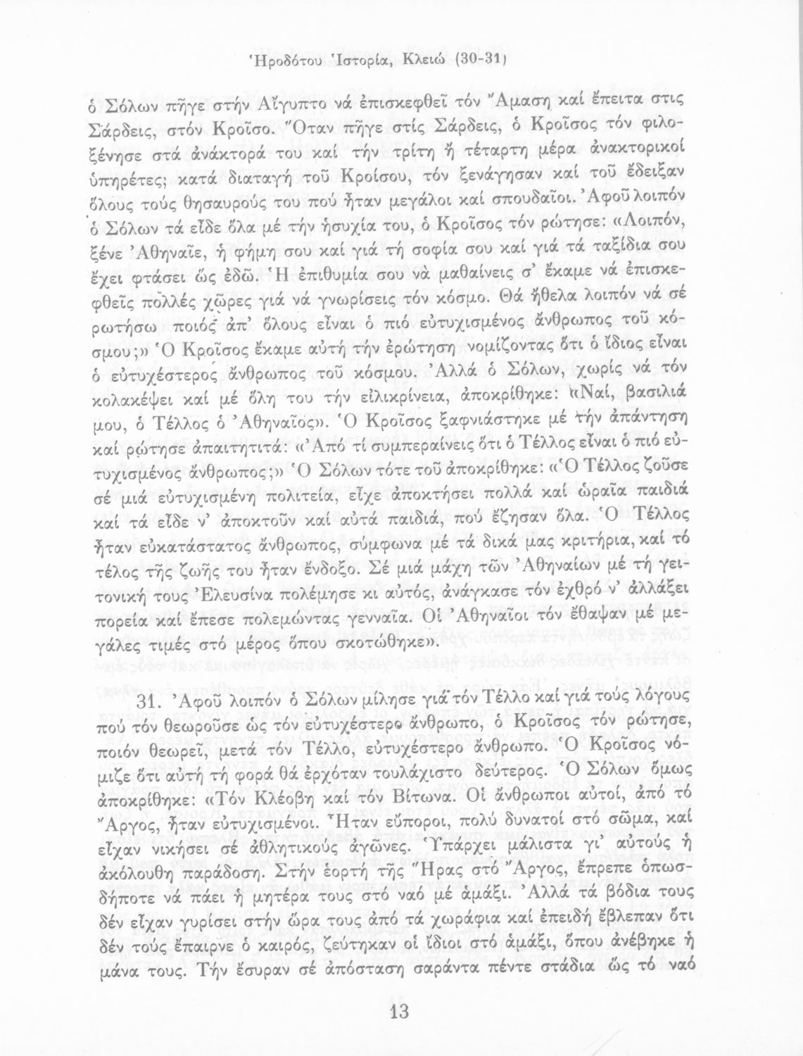 LDR 01320 2200217 4500 035 ## _a01-19773 040 ## _aΙνστιτούτο Εκπαιδευτικής Πολιτικής 041 ## _ael 100 ## _aΗρόδοτος _aΆγγελος Βλάχος (εισαγωγή _aμετάφραση) _aΓ. Ζευγώλης (επιμ.) 110 ## _a19773 245 0# _aΗροδότου Ιστορία (Εκλογές) Α' Γυμνασίου 250 ## _a1η Έκδοση 260 ## _aΑθήνα _bΟργανισμός Εκδόσεως Διδακτικών Βιβλίων _c1976 300 ## _a144 _bΕξώφυλλο (έγχρωμο), Σκίτσα (ασπρόμαυρο), Χάρτης (έγχρωμος) _c20 520 ## _aΣχολικό εγχειρίδιο Αρχαίων Ελληνικών Α΄ Γυμνασίου που περιλαμβάνει εισαγωγή στη ζωή και το έργο του Ηρόδοτου και αποσπάσματα από τα εννέα βιβλία της Ιστορίας του σε μετάφραση. 521 ## _aΑ' Γυμνασίου 522 ## _aΕλλάδα 546 ## _aΔημοτική 563 ## _aΜαλακό Εξώφυλλο 583 ## _a2765/30-9-1976 _c1976 650 #4 _aΔαρείος _aΔωδώνη _aΊωνες _aΚροίσος _aΜαντεία _aΞέρξης _aΣαλαμίνα