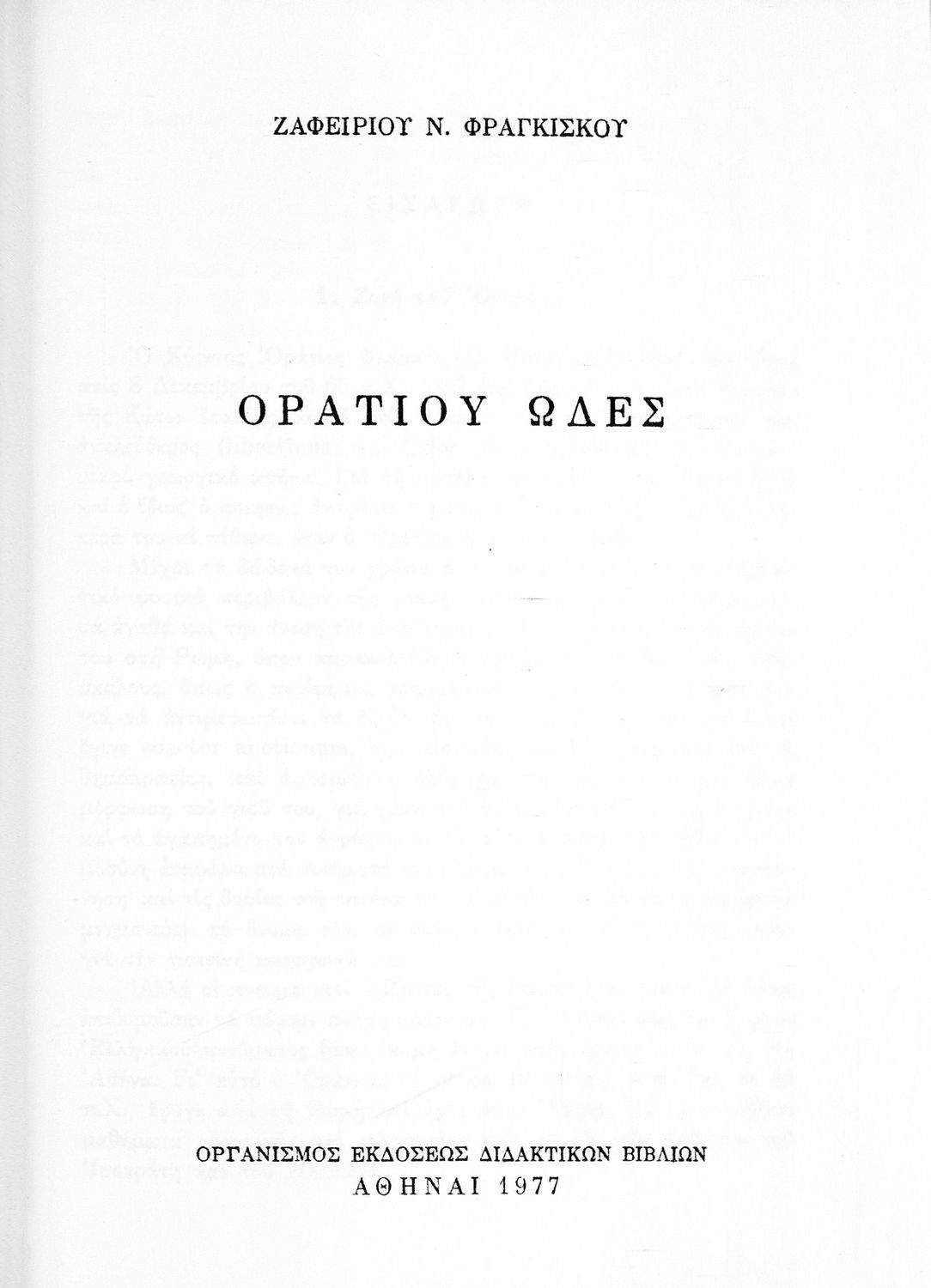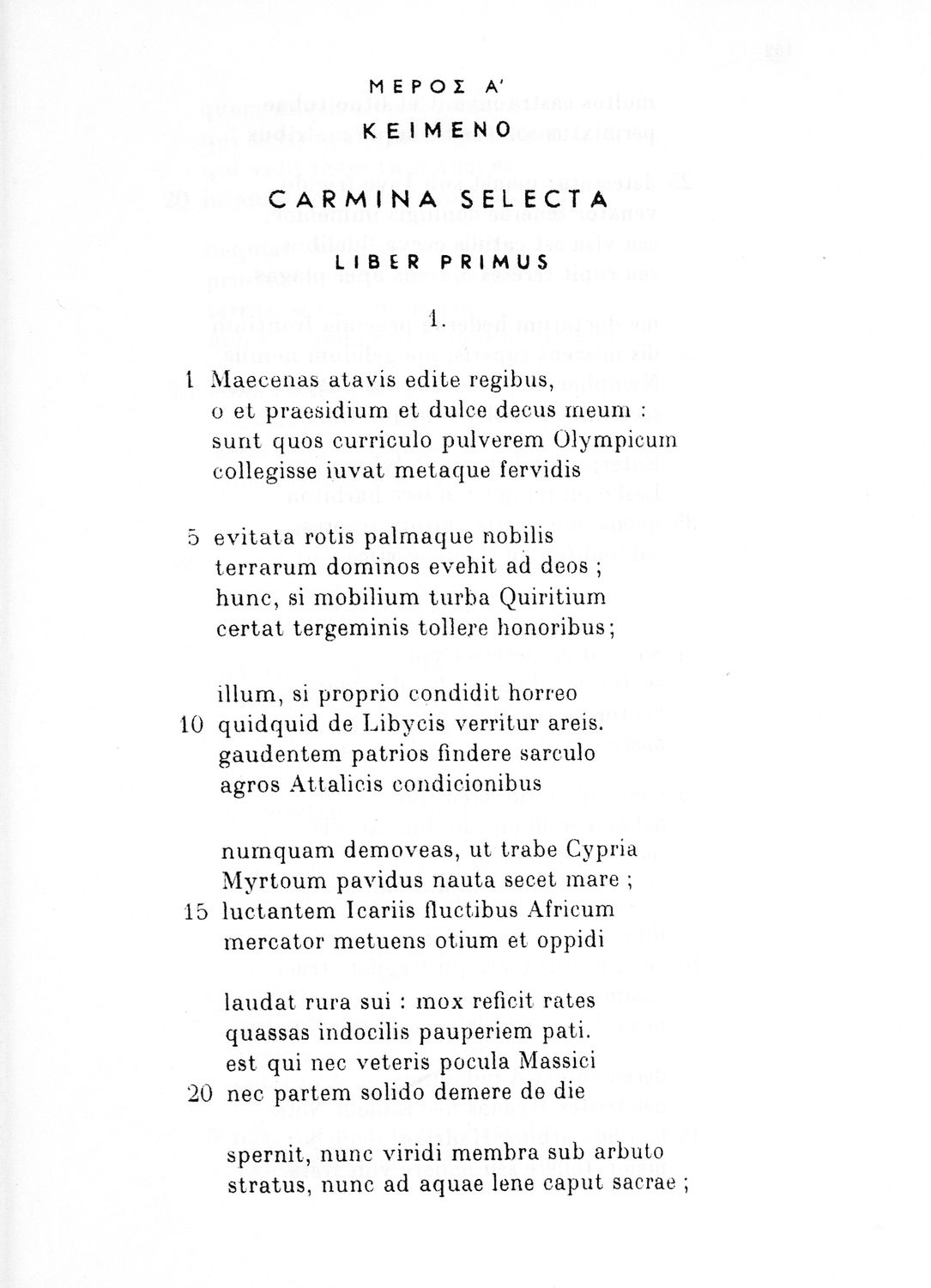 Συγγραφέας: Πόπλιος Βιργίλιος Μάρων (P. Vergilius Maro), Μάρκος Τύλλιος Κικέρωνας (Marcus Tullius Ciceco), Κουίντος Οράτιος Φλάκκος (Q. Horati Flacci), Φωκίωνας Β. Βουσβούνης, Ερρίκος Σκάσσης, Ζαφείριος Ν. Φραγκίσκος (εισαγωγή/σχόλια)