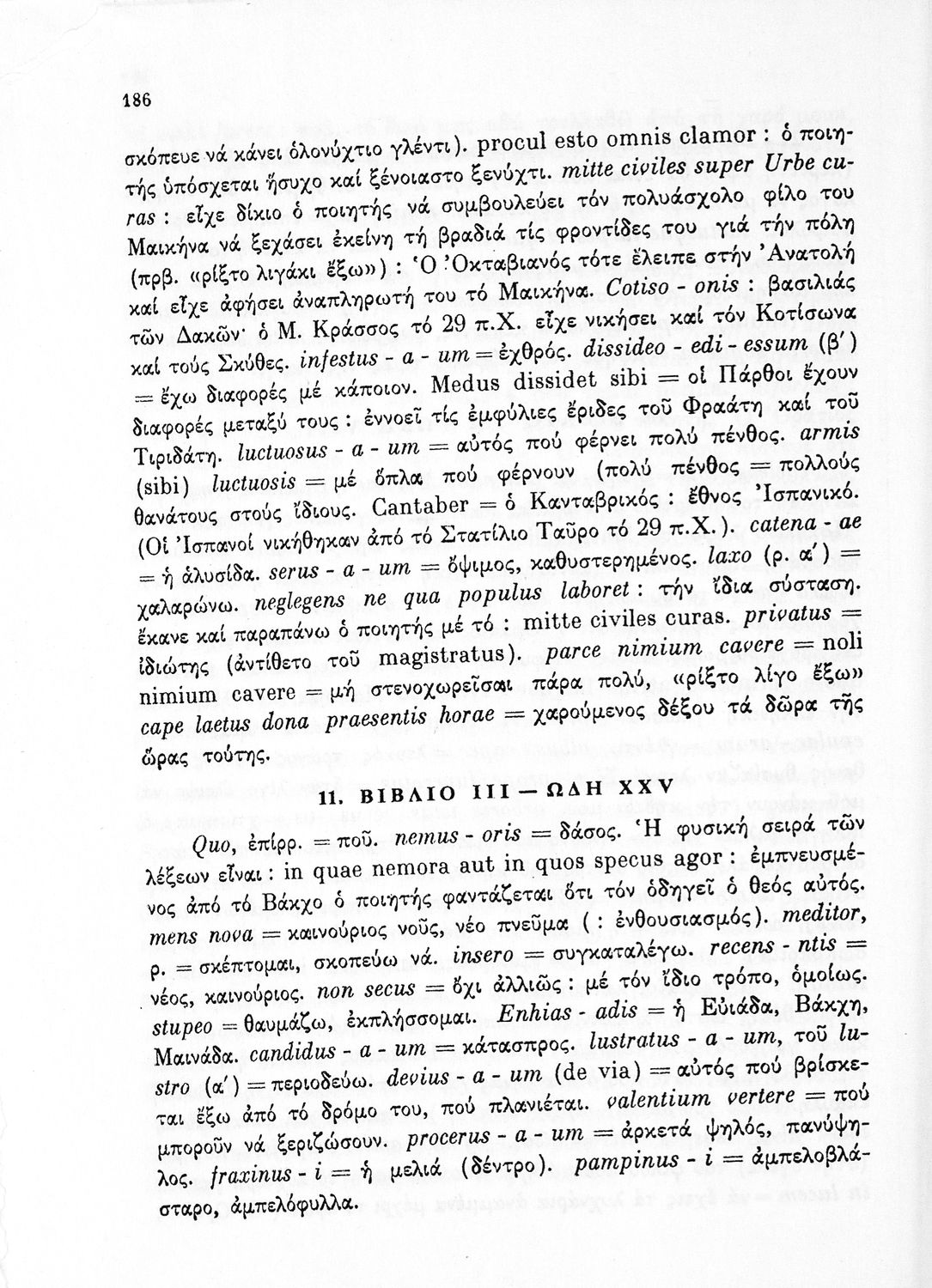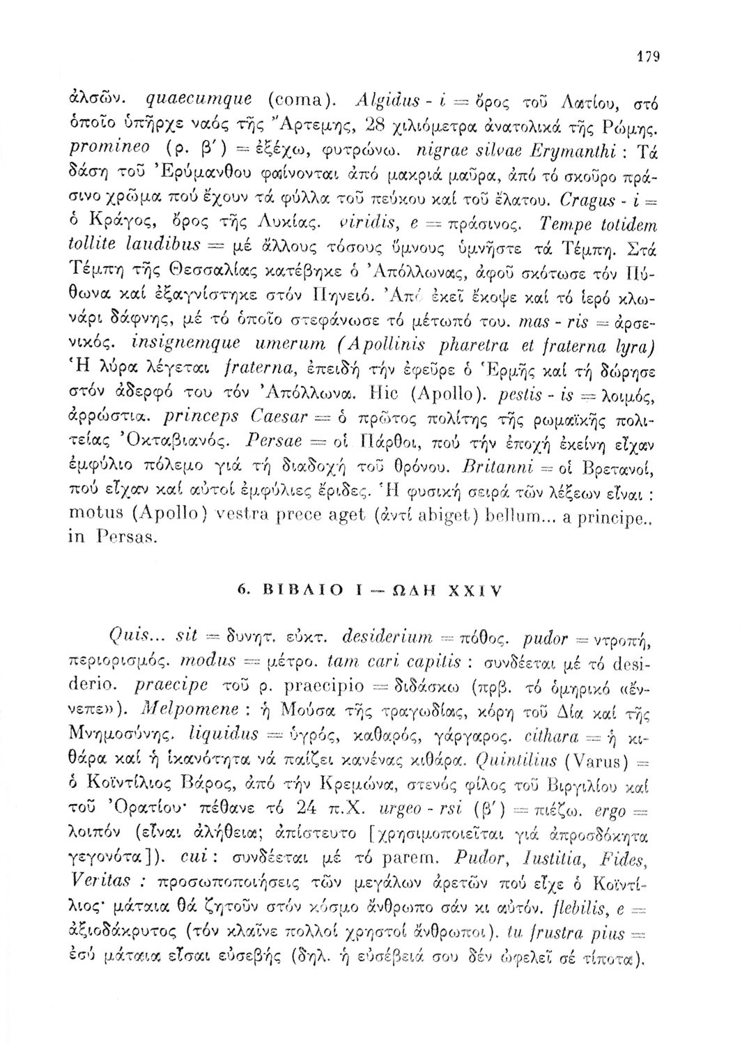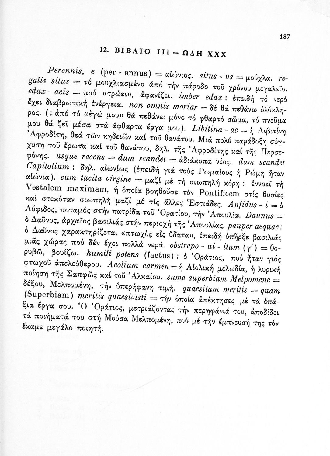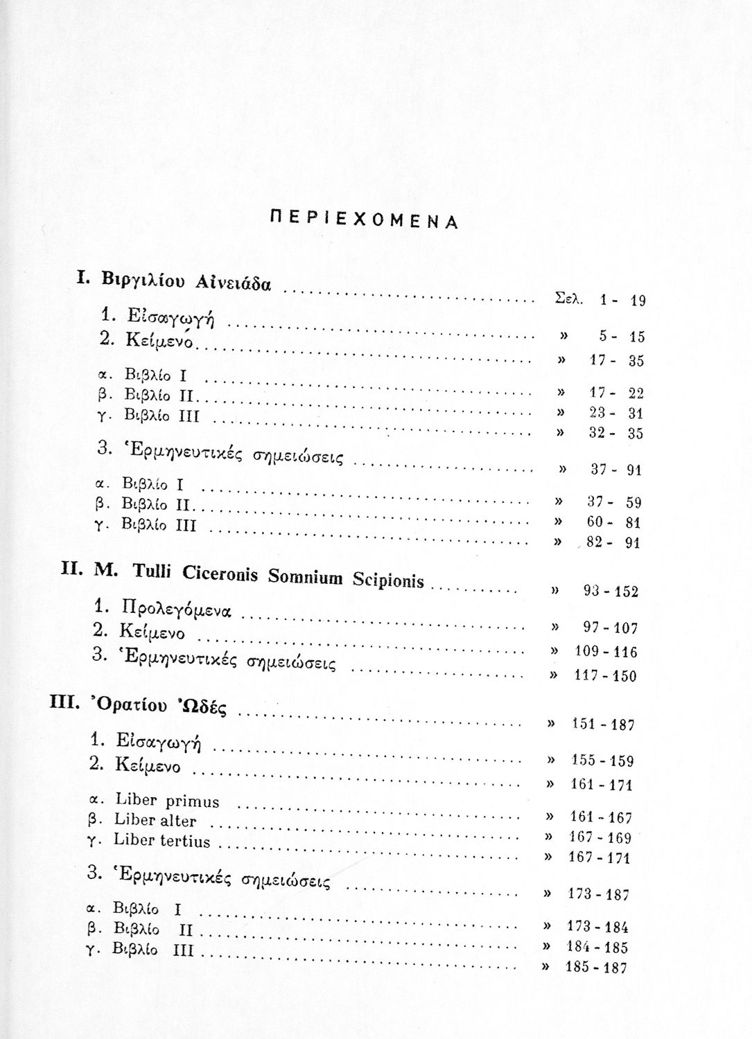 Σχολικό εγχειρίδιο Λατινικών Γ΄ Λυκείου που περιέχει αποσπάσματα από την Αινειάδα του Βιργίλιου, τον Ενύπνιο Σκιπίωνα του Κικέρωνα και τις Ωδές του Οράτιου, βιογραφικά σημειώματα των συγγραφέων, εισαγωγικά σχόλια, και ερμηνευτικές παρατηρήσεις.