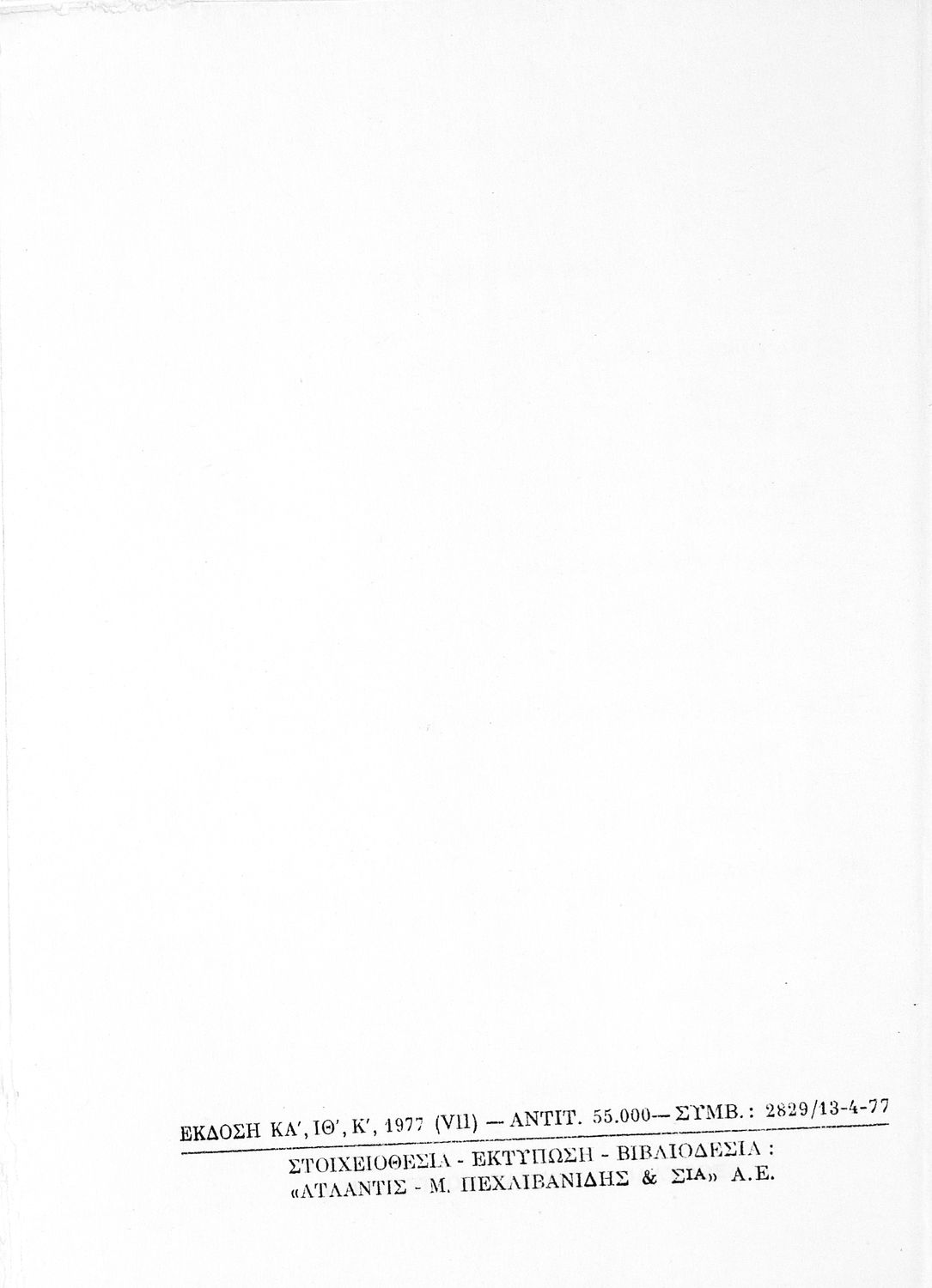 Εκδότης: Οργανισμός Εκδόσεως Διδακτικών Βιβλίων Έτος έκδοσης: 1977 Τόπος έκδοσης: Αθήνα Έκδοση: 21η Υπουργική απόφαση / Σύμβαση: 2829/13-4-1977 Έτος έγκρισης: 1977 |