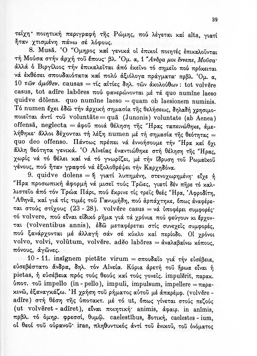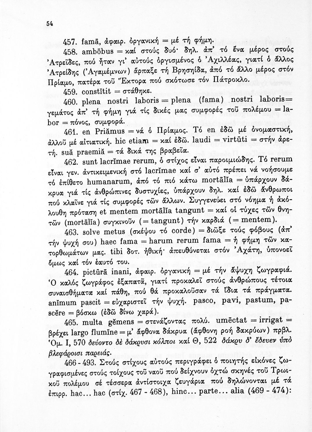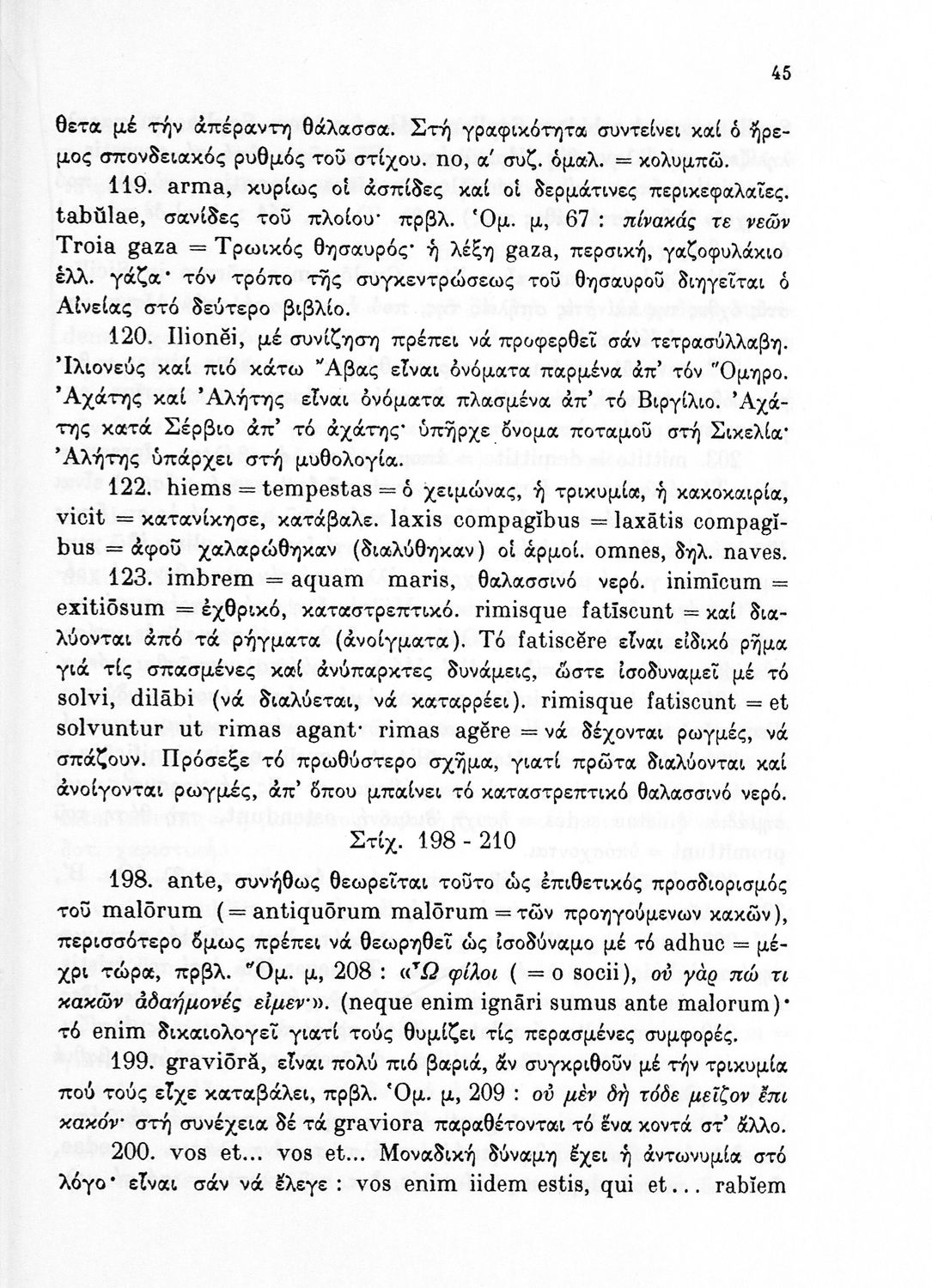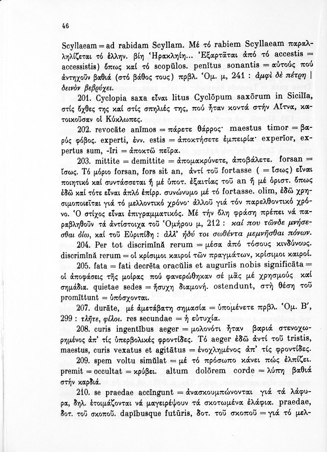 Πόπλιος Βιργίλιος Μάρων (P. Vergilius Maro), Μάρκος Τύλλιος Κικέρωνας (Marcus Tullius Ciceco), Κουίντος Οράτιος Φλάκκος (Q. Horati Flacci), Φωκίωνας Β. Βουσβούνης, Ερρίκος Σκάσσης, Ζαφείριος Ν. Φραγκίσκος (σχόλια)