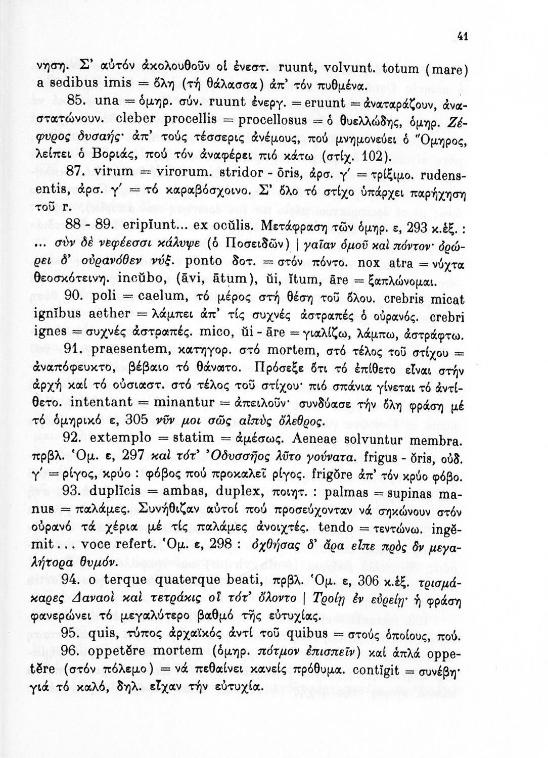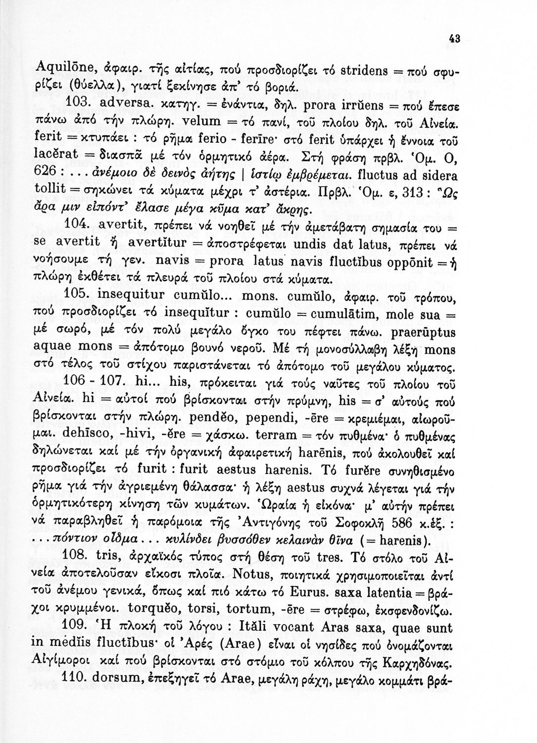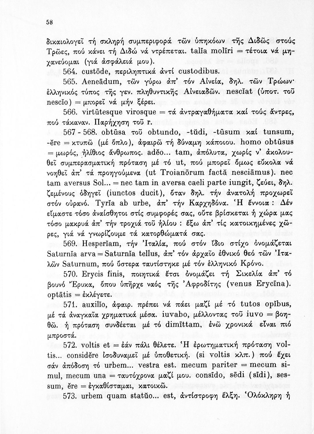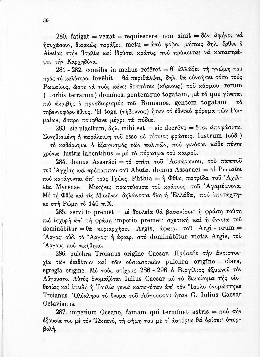 Πόπλιος Βιργίλιος Μάρων (P. Vergilius Maro), Μάρκος Τύλλιος Κικέρωνας (Marcus Tullius Ciceco), Κουίντος Οράτιος Φλάκκος (Q. Horati Flacci), Φωκίωνας Β. Βουσβούνης, Ερρίκος Σκάσσης, Ζαφείριος Ν. Φραγκίσκος (σχόλια)