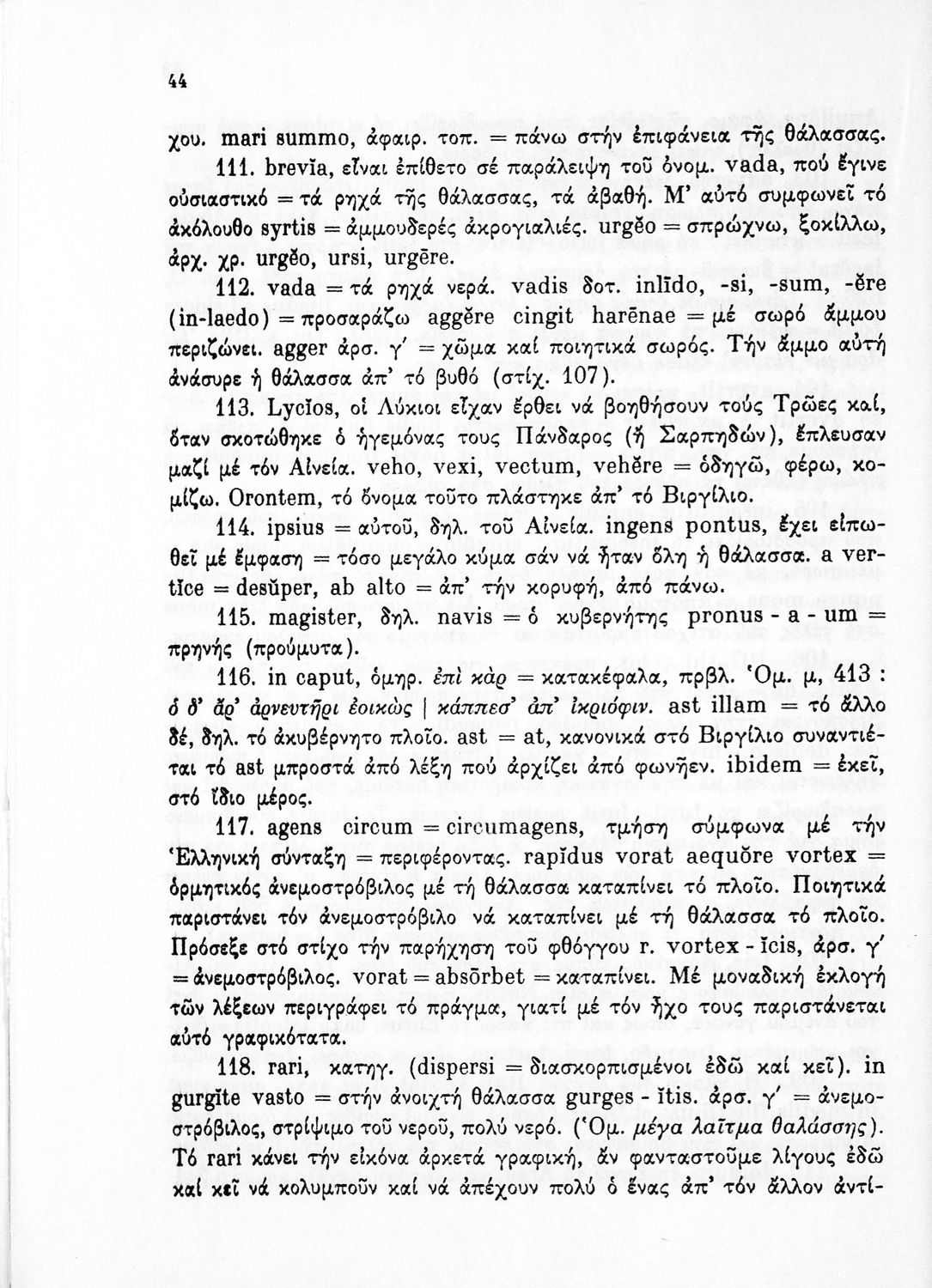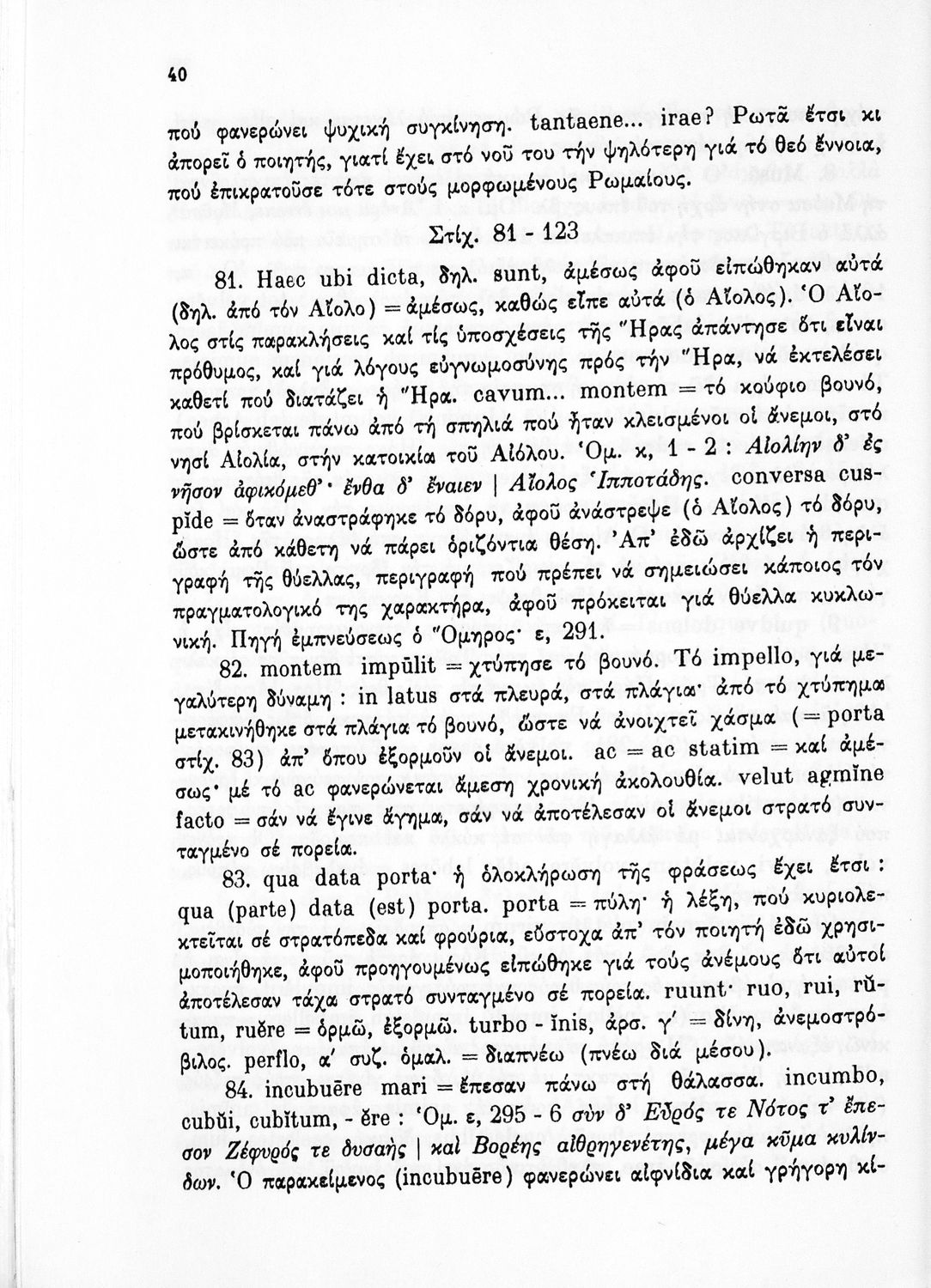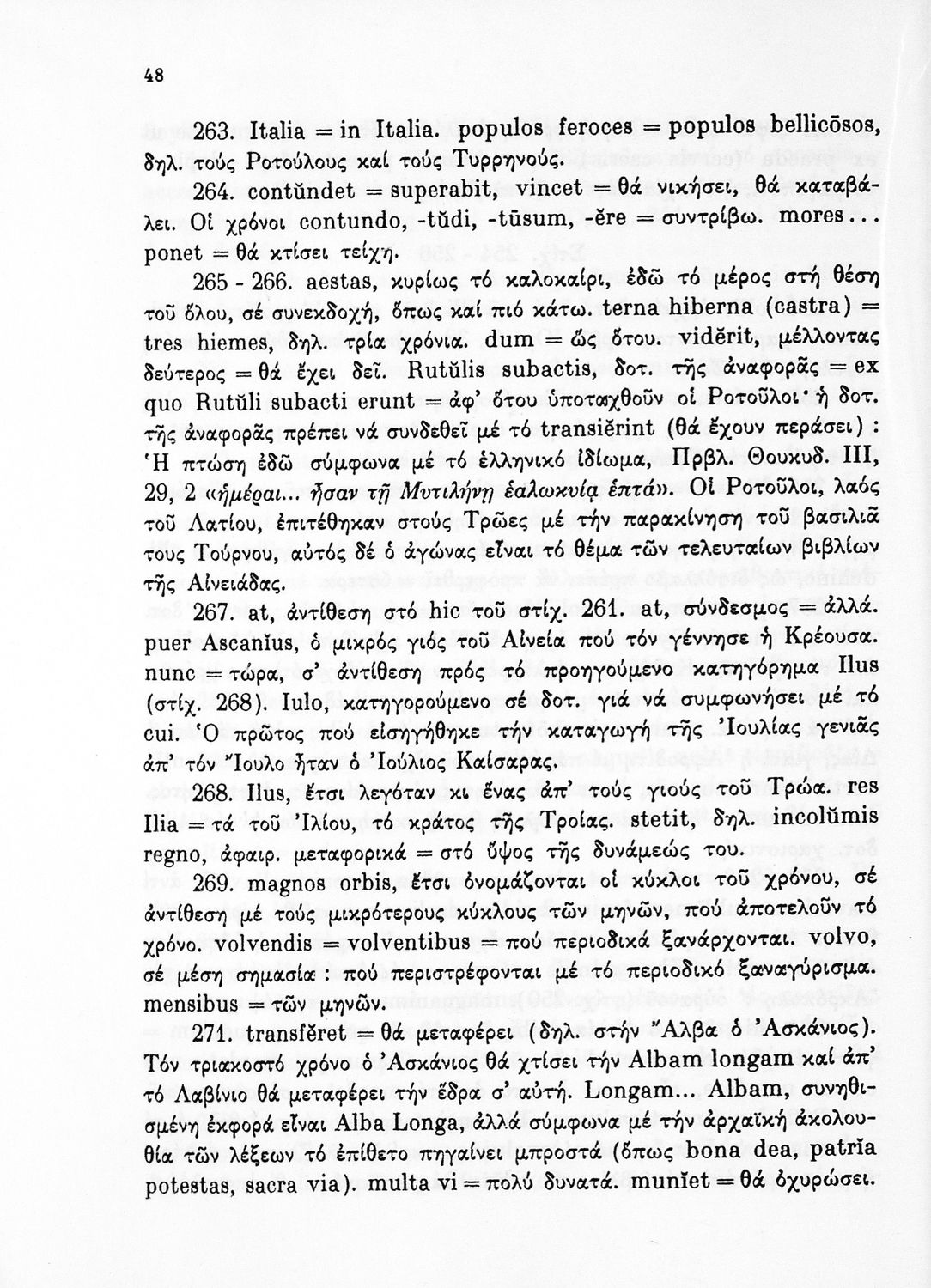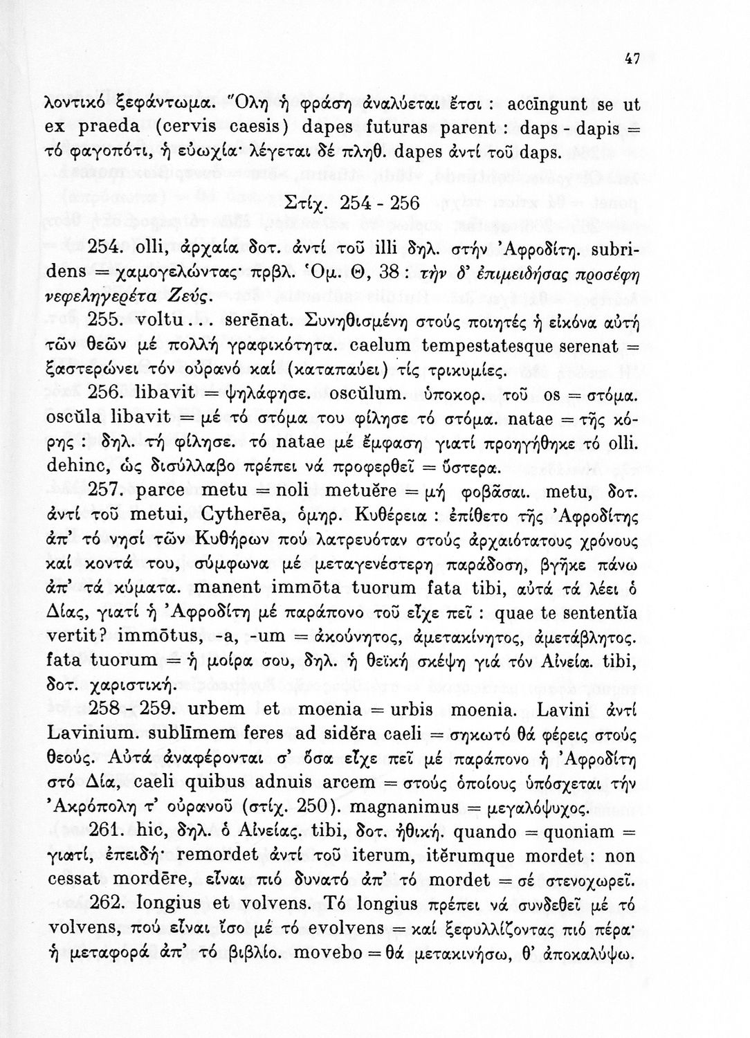 Πόπλιος Βιργίλιος Μάρων (P. Vergilius Maro), Μάρκος Τύλλιος Κικέρωνας (Marcus Tullius Ciceco), Κουίντος Οράτιος Φλάκκος (Q. Horati Flacci), Φωκίωνας Β. Βουσβούνης, Ερρίκος Σκάσσης, Ζαφείριος Ν. Φραγκίσκος (σχόλια)