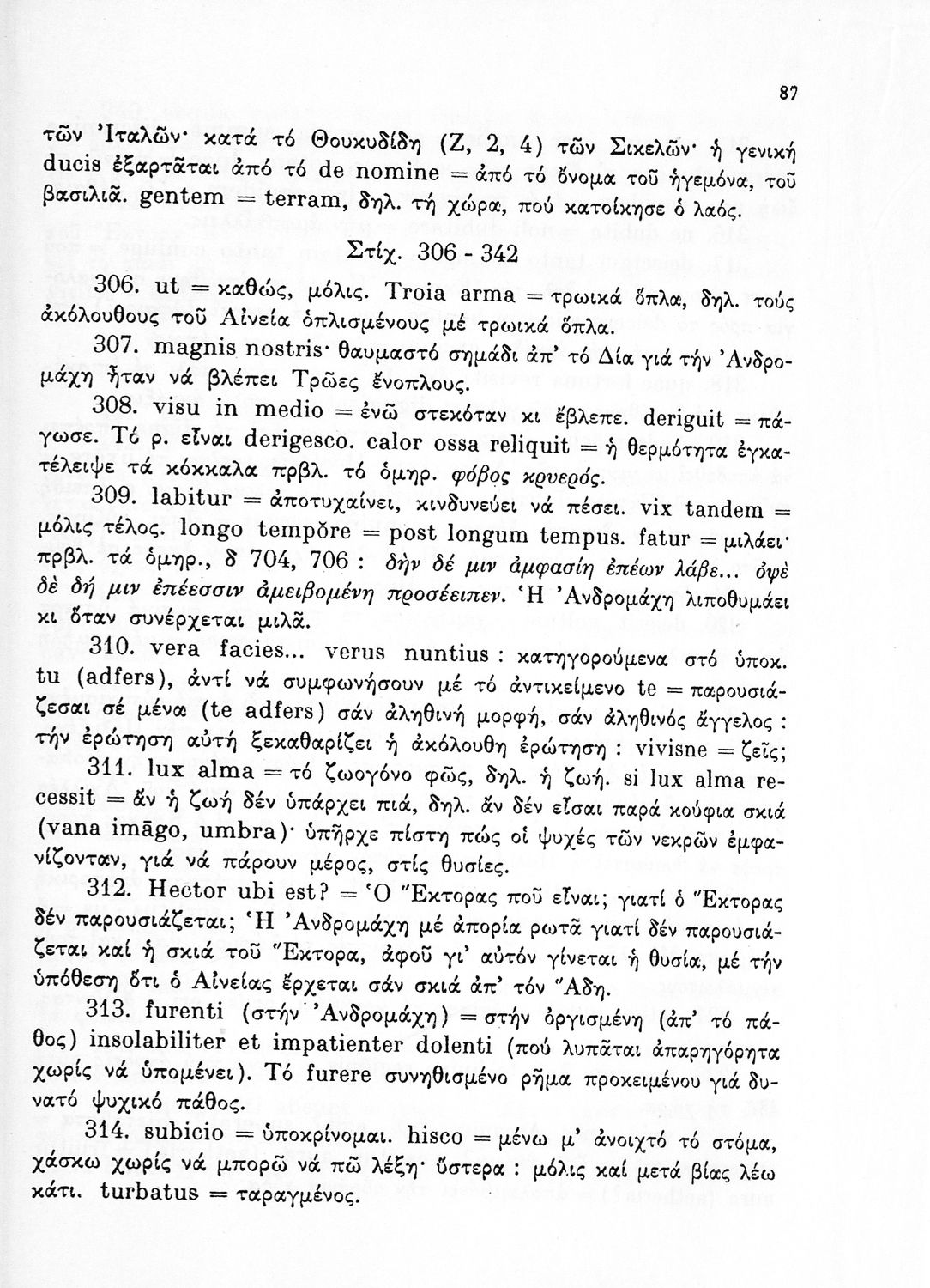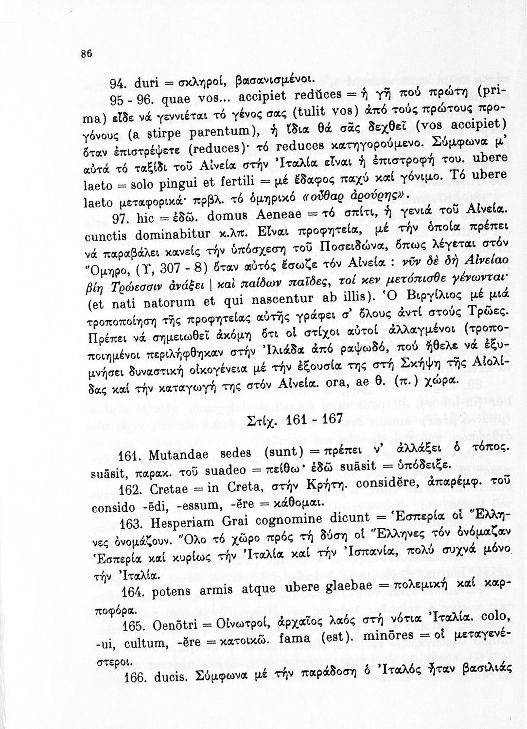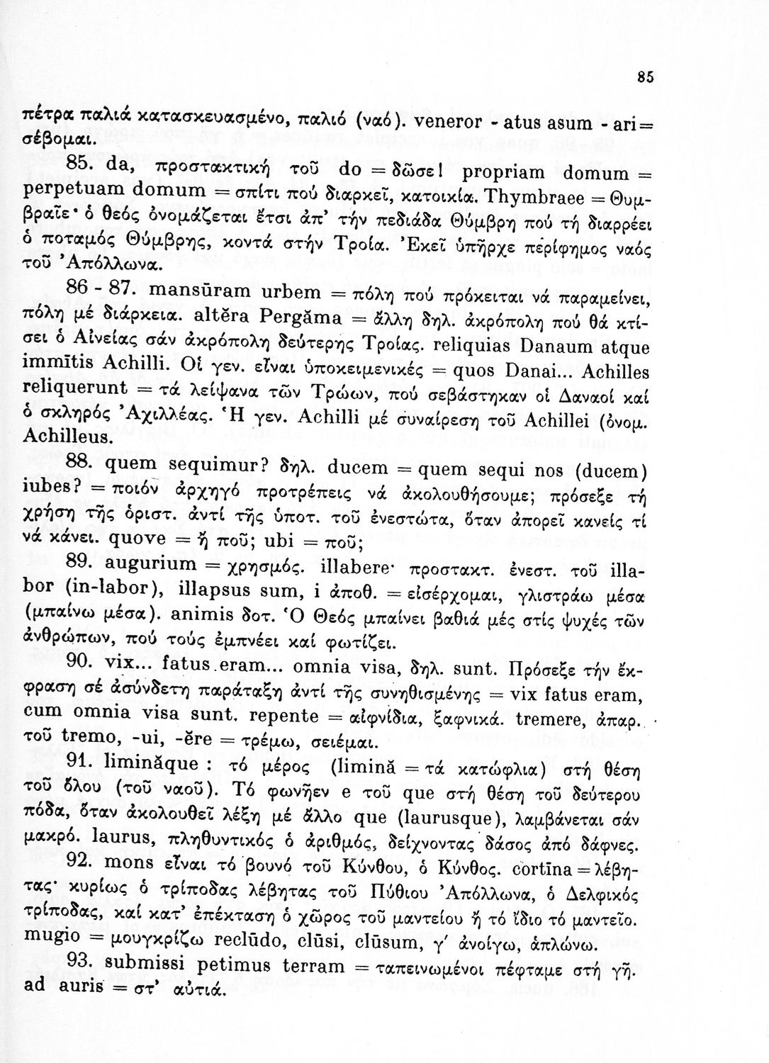 Σχολικό εγχειρίδιο Λατινικών Γ΄ Λυκείου που περιέχει αποσπάσματα από την Αινειάδα του Βιργίλιου, τον Ενύπνιο Σκιπίωνα του Κικέρωνα και τις Ωδές του Οράτιου, βιογραφικά σημειώματα των συγγραφέων, εισαγωγικά σχόλια, και ερμηνευτικές παρατηρήσεις.