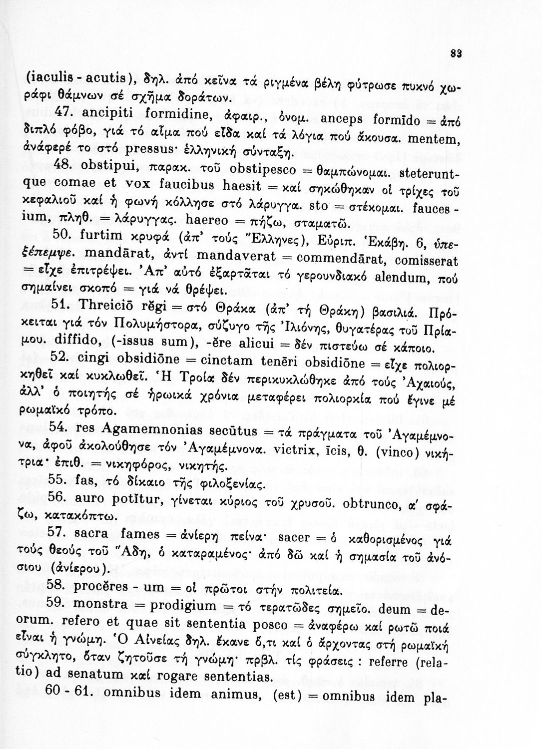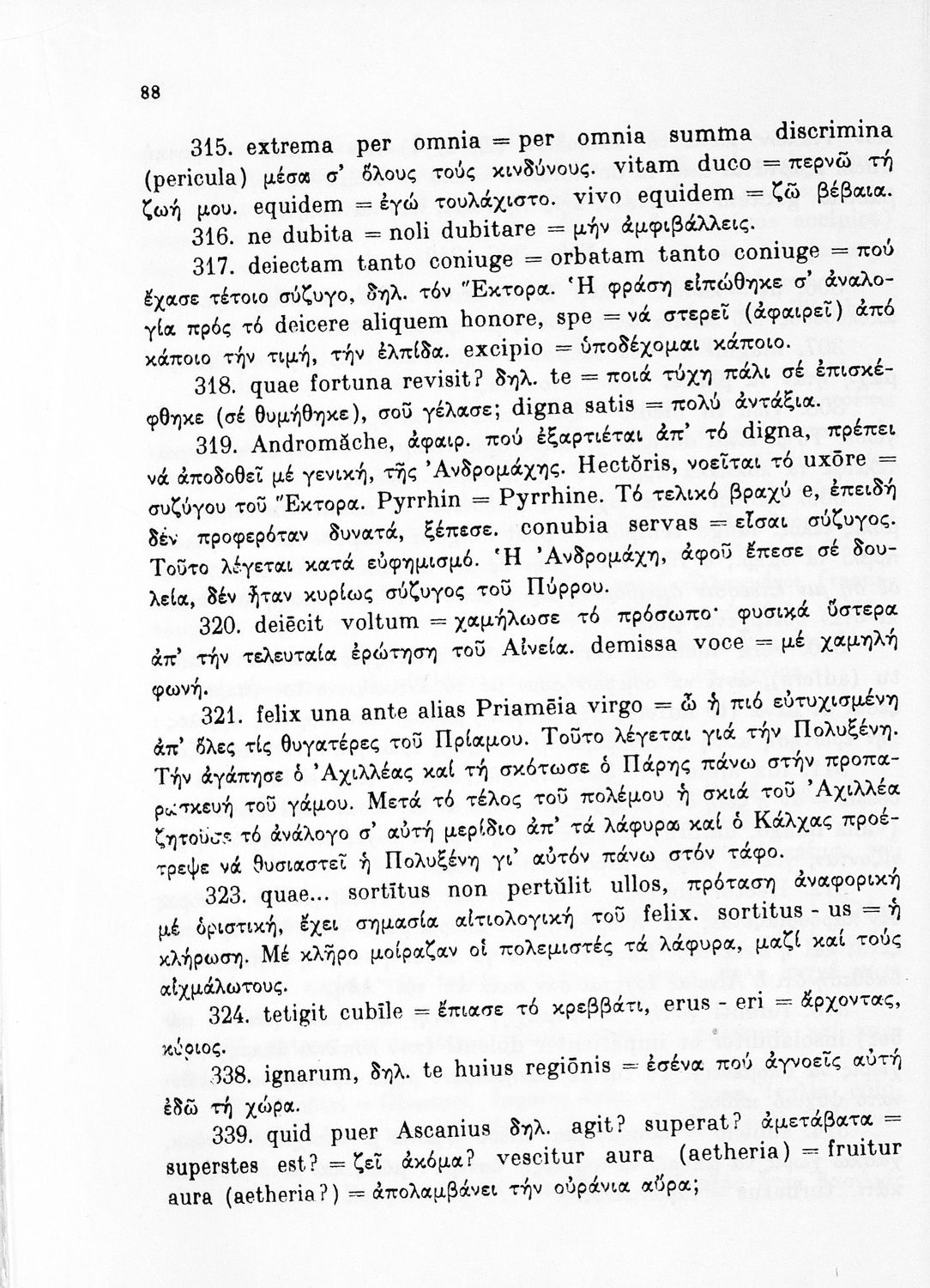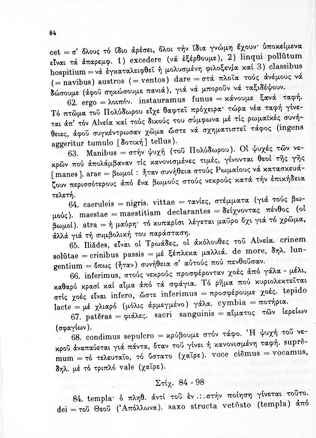 Σχολικό εγχειρίδιο Λατινικών Γ΄ Λυκείου που περιέχει αποσπάσματα από την Αινειάδα του Βιργίλιου, τον Ενύπνιο Σκιπίωνα του Κικέρωνα και τις Ωδές του Οράτιου, βιογραφικά σημειώματα των συγγραφέων, εισαγωγικά σχόλια, και ερμηνευτικές παρατηρήσεις.