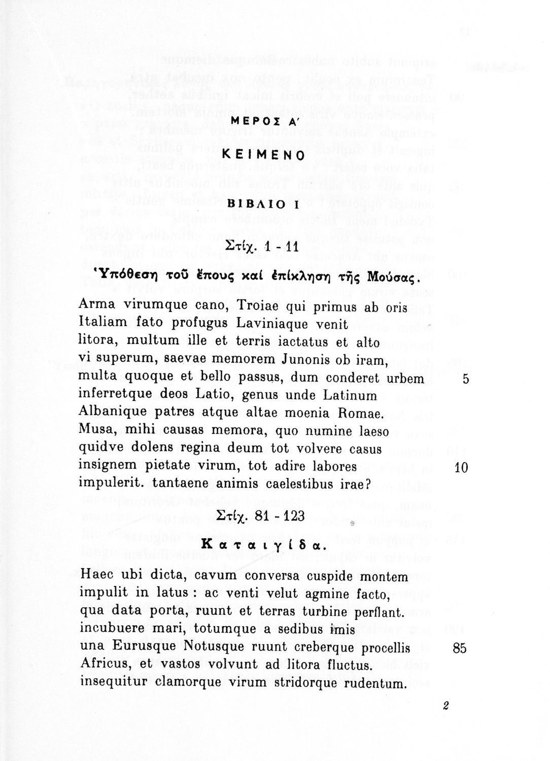 Σχολικό εγχειρίδιο Λατινικών Γυμνασίου που περιλαμβάνει αποσπάσματα από την Αινειάδα του Βιργίλιου, τον Ενύπνιο Σκιπίωνα του Κικέρωνα και τις Ωδές του Οράτιου, και λεξιλογικές και ερμηνευτικές σημειώσεις.