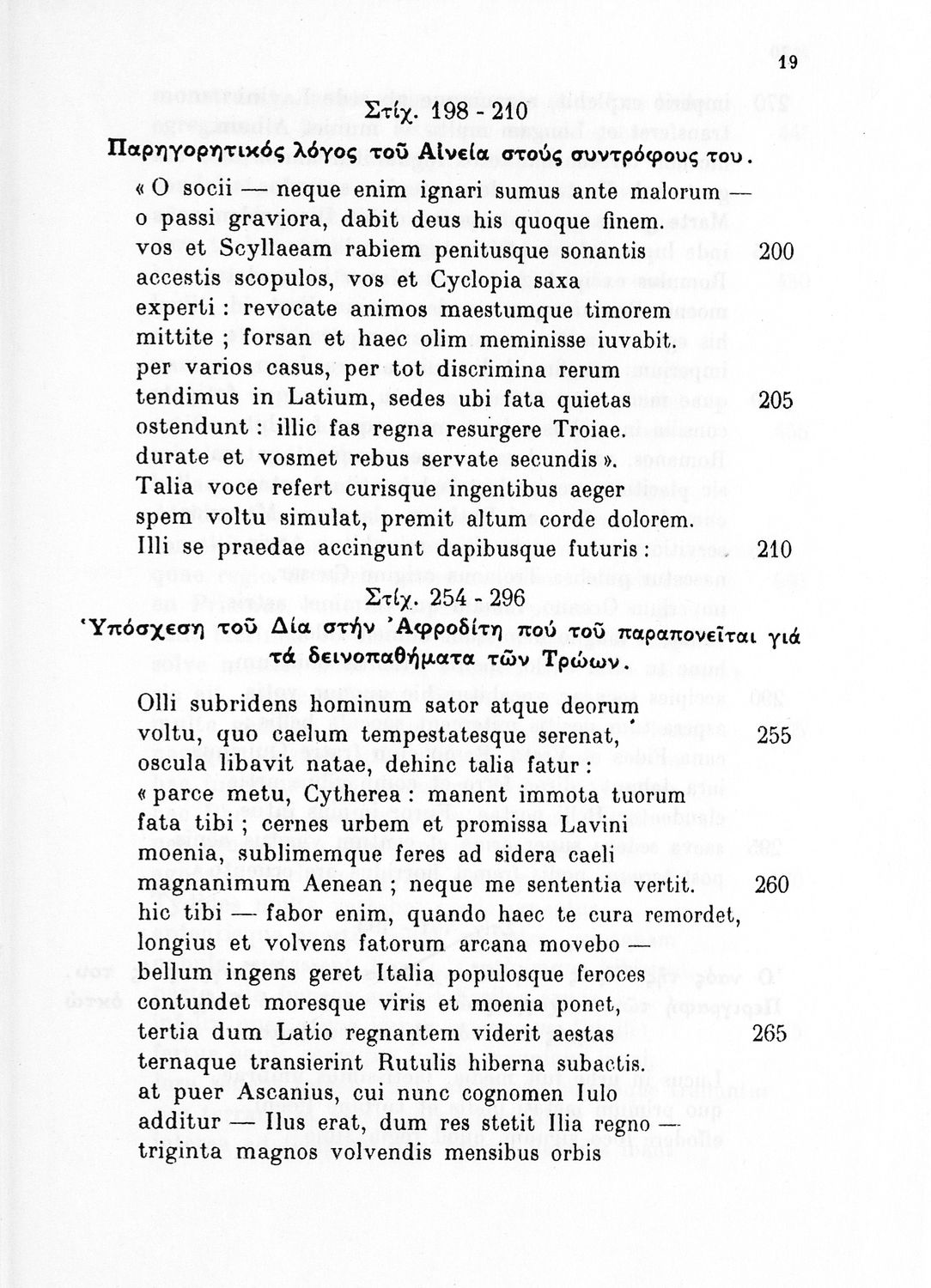 Σχολικό εγχειρίδιο Λατινικών Γ΄ Λυκείου που περιέχει αποσπάσματα από την Αινειάδα του Βιργίλιου, τον Ενύπνιο Σκιπίωνα του Κικέρωνα και τις Ωδές του Οράτιου, βιογραφικά σημειώματα των συγγραφέων, εισαγωγικά σχόλια, και ερμηνευτικές παρατηρήσεις.