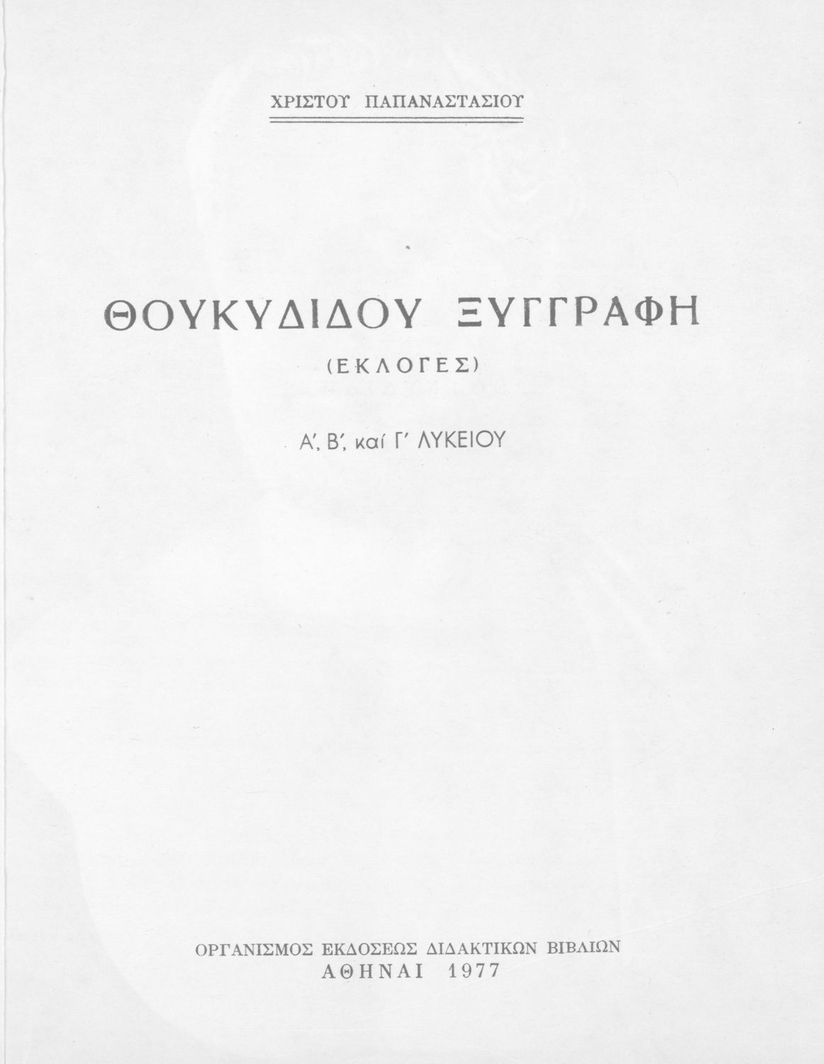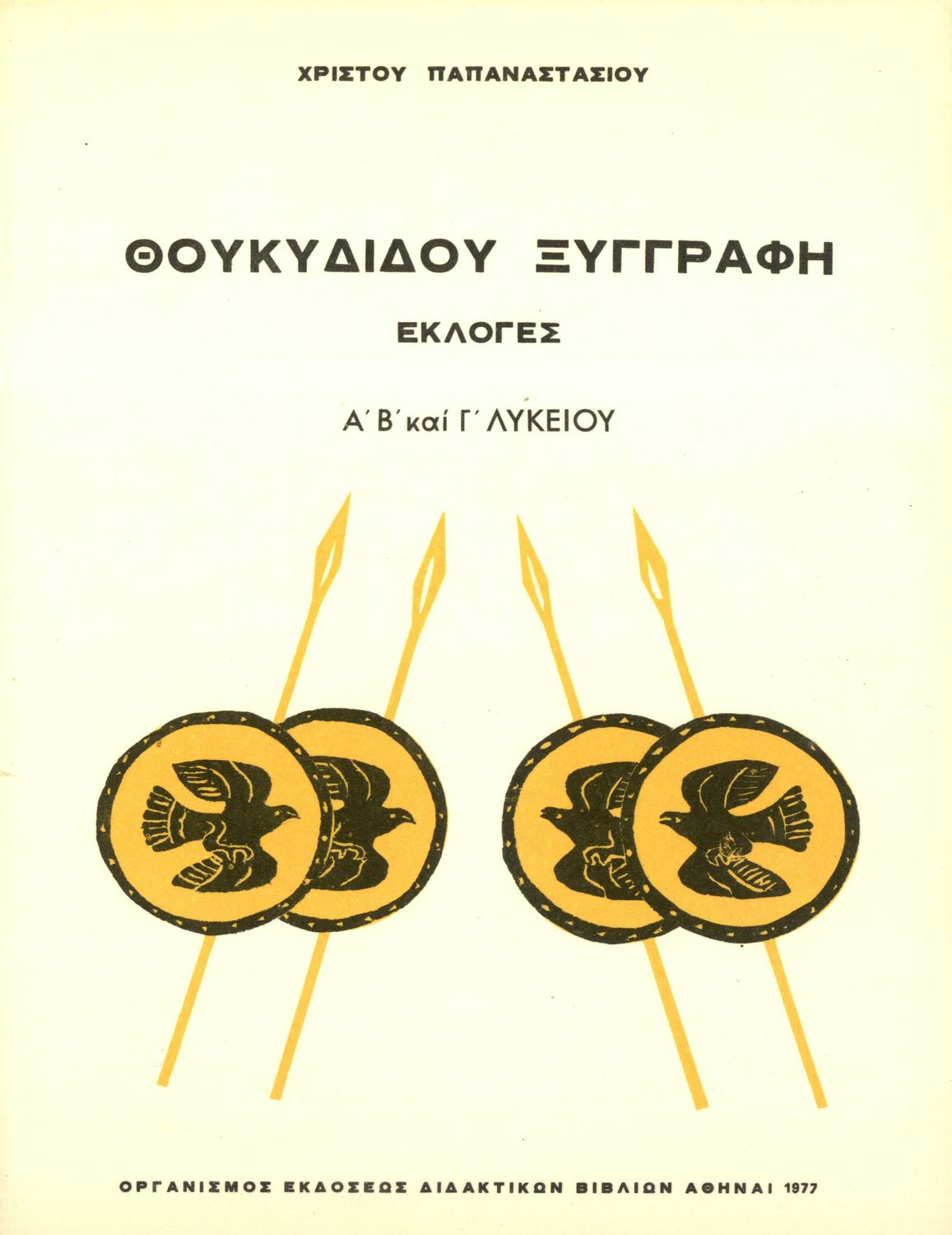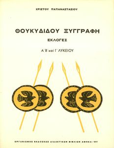 Σχολικό εγχειρίδιο Αρχαίων Ελληνικών Α΄, Β΄ και Γ΄ Λυκείου που περιέχει εισαγωγή στη ζωή και το έργο του Θουκυδίδη, αποσπάσματα από τα Πλαταιϊκά, τα Λεσβιακά και τον Επιτάφιο του Περικλή και ερμηνευτικές σημειώσεις.