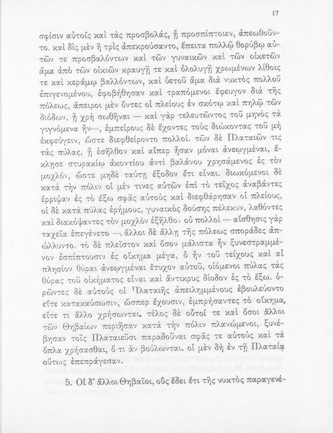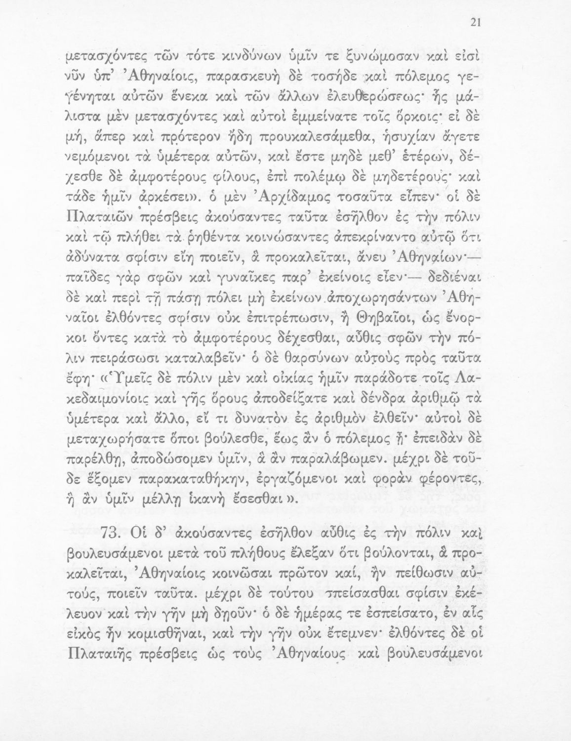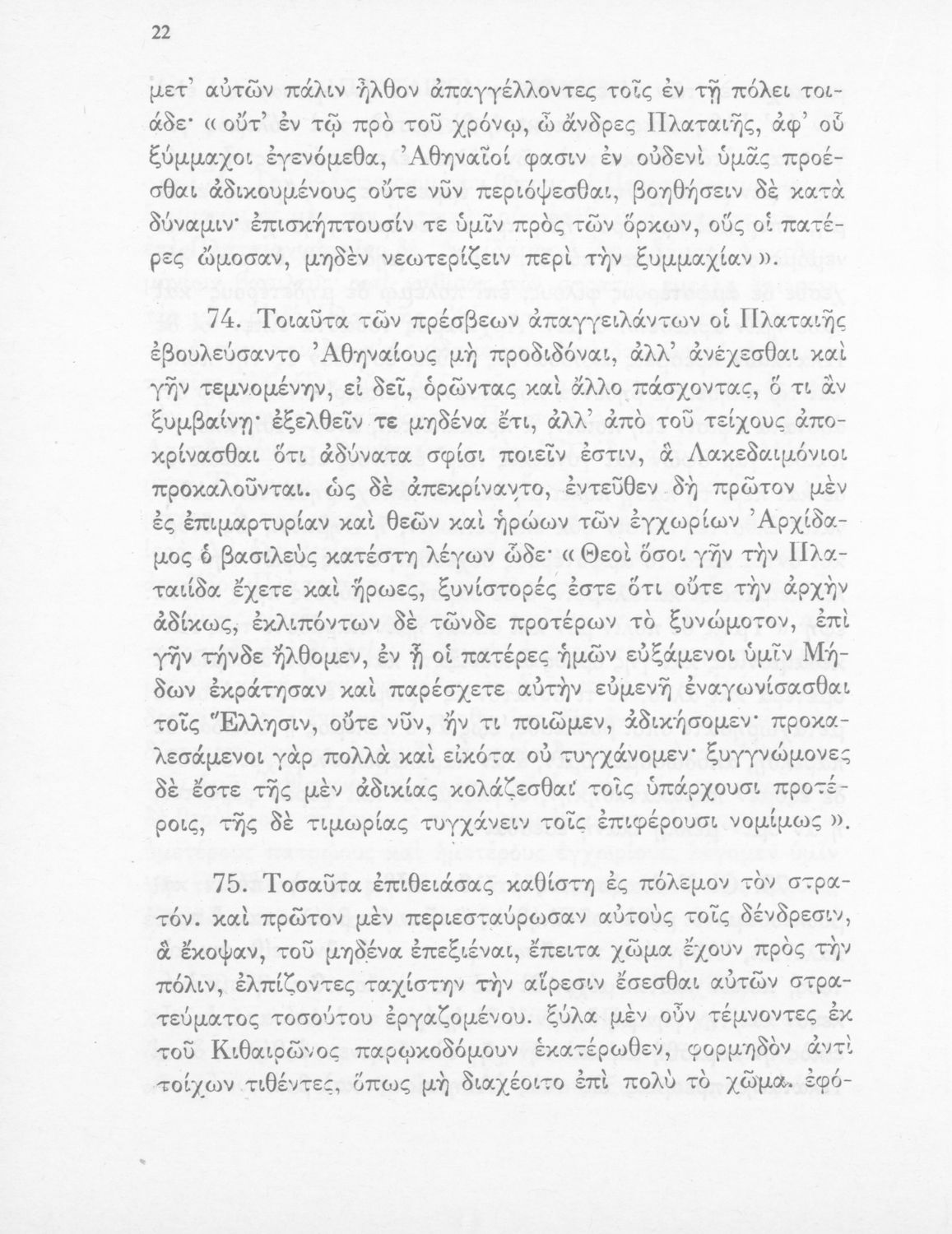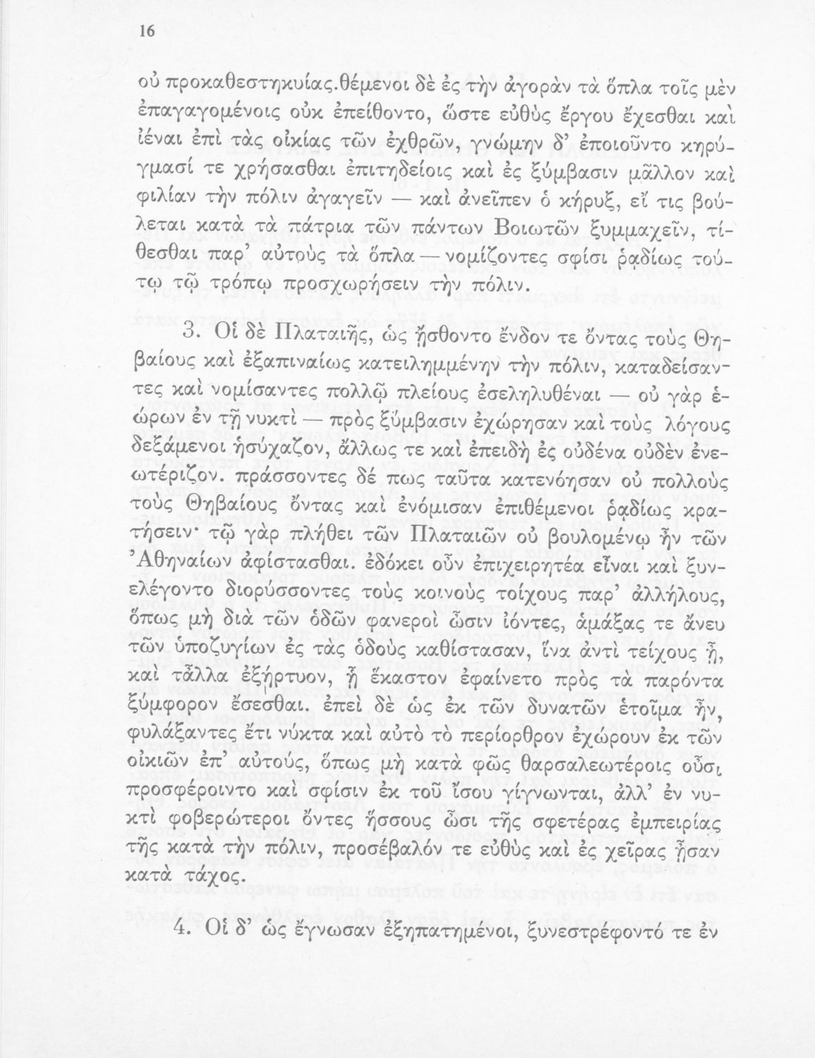 Σχολικό εγχειρίδιο Αρχαίων Ελληνικών για τις Δ΄, Ε΄ και ΣΤ΄ Γυμνασίου παλαιού τύπου που περιλαμβάνει σύντομο βιογραφικό σημείωμα του Θουκυδίδη, περιγραφή του ιστορικού πλαισίου, αποσπάσματα από τα Πλαταϊκά, τα