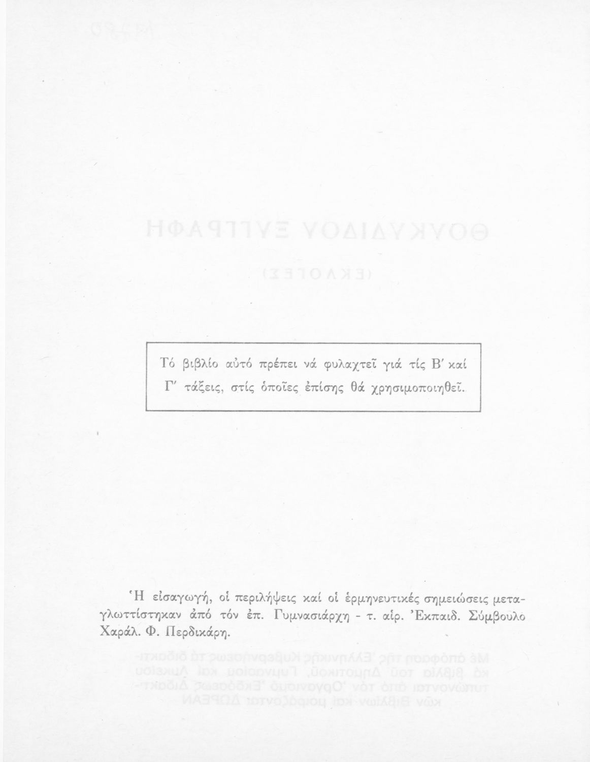 Τάξη:  Δ' Γυμνασίου παλαιού τύπου / Ε' Γυμνασίου παλαιού τύπου / ΣΤ' Γυμνασίου παλαιού τύπου