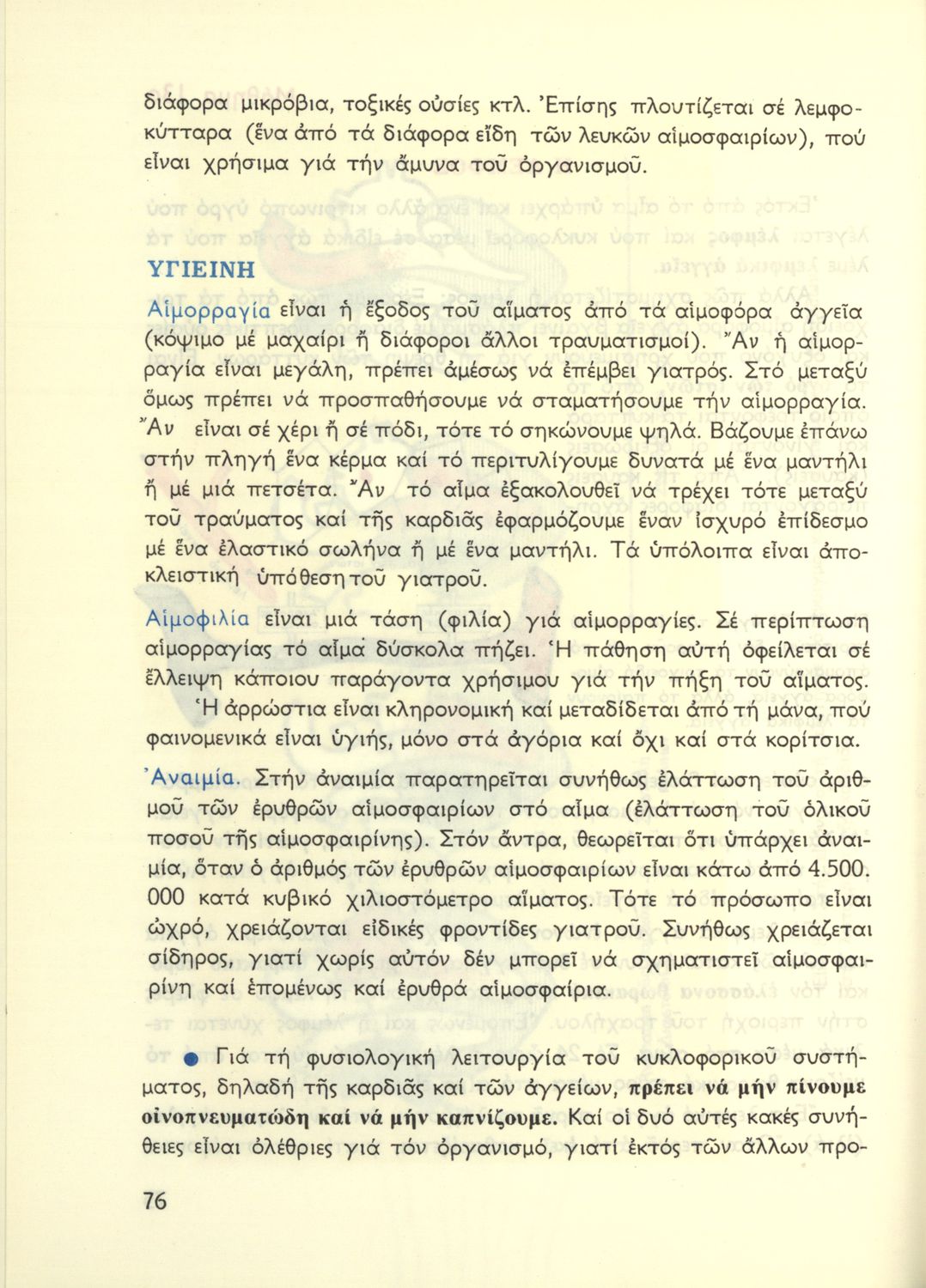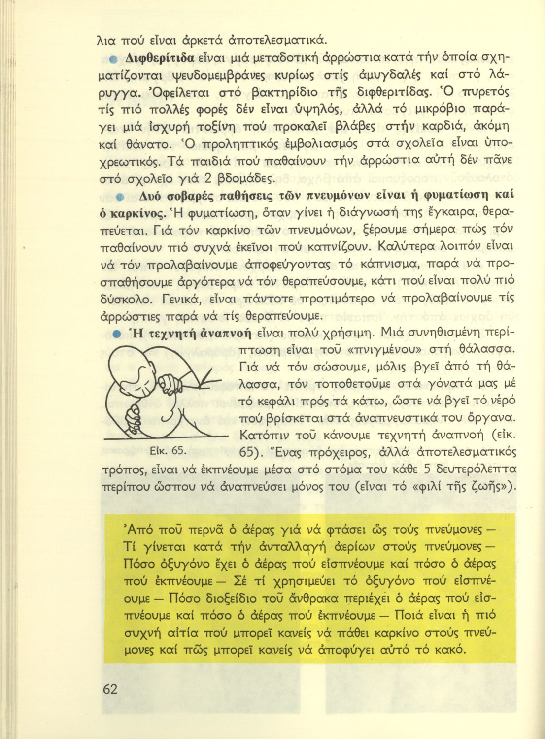 Σχολικό εγχειρίδιο Ανθρωπολογίας και Υγιεινής Β΄ Γυμνασίου που εστιάζει στη λειτουργία του ανθρώπινου οργανισμού και περιέχει πληροφορίες σχετικά με τα νοσήματα, την πρόληψη, τα εμβόλια, τα αντιβιοτικά, τον εθισμό και τα προβλήματα από τις εξαρτήσεις.