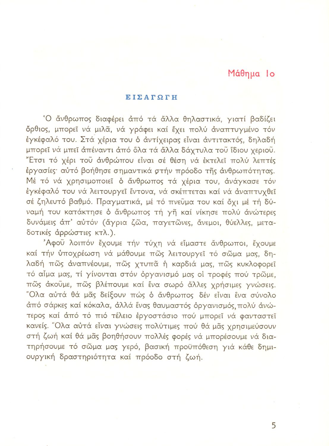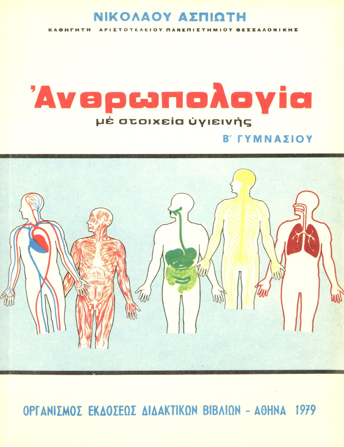Σχολικό εγχειρίδιο Ανθρωπολογίας για την Ε΄ τάξη των Εξαταξίων Γυμνασίων που εστιάζει στην ανατομία και φυσιολογία του ανθρώπινου σώματος καθώς και στα μικρόβια και νοσήματα.