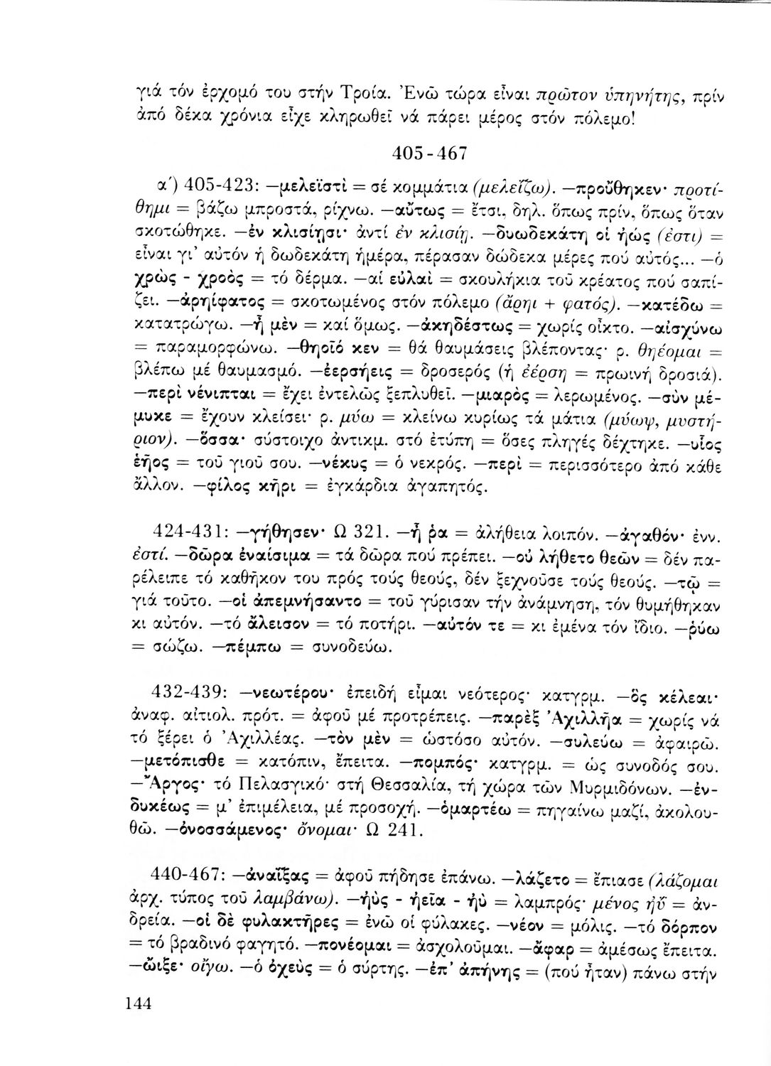 Σχολικό Εγχειρίδιο Αρχαίων Ελληνικών Α' και Β΄ Γυμνασίου που περιλαμβάνει κείμενα προσαρμοσμένα στη διδασκαλία των γραμματικών και συντακτικών φαινομένων, και ερμηνευτικές και λεξιλογικές σημειώσεις.