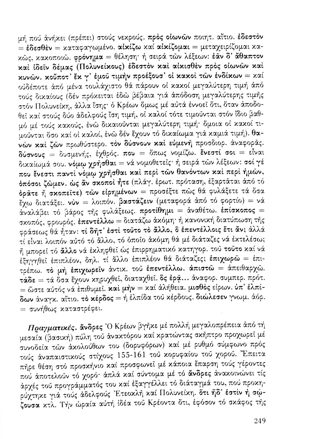 Σχολικό εγχειρίδιο Αρχαίων Ελληνικών Γ' Λυκείου που περιλαμβάνει αποσπάσματα από έργα αρχαίων Ελλήνων συγγραφέων και γραμματικές και ερμηνευτικές παρατηρήσεις.
