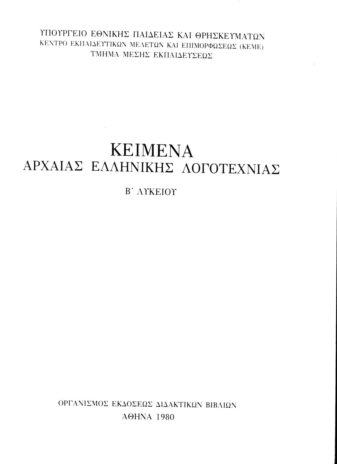 Κείμενα Αρχαίας Ελληνικής Λογοτεχνίας Β' Λυκείου