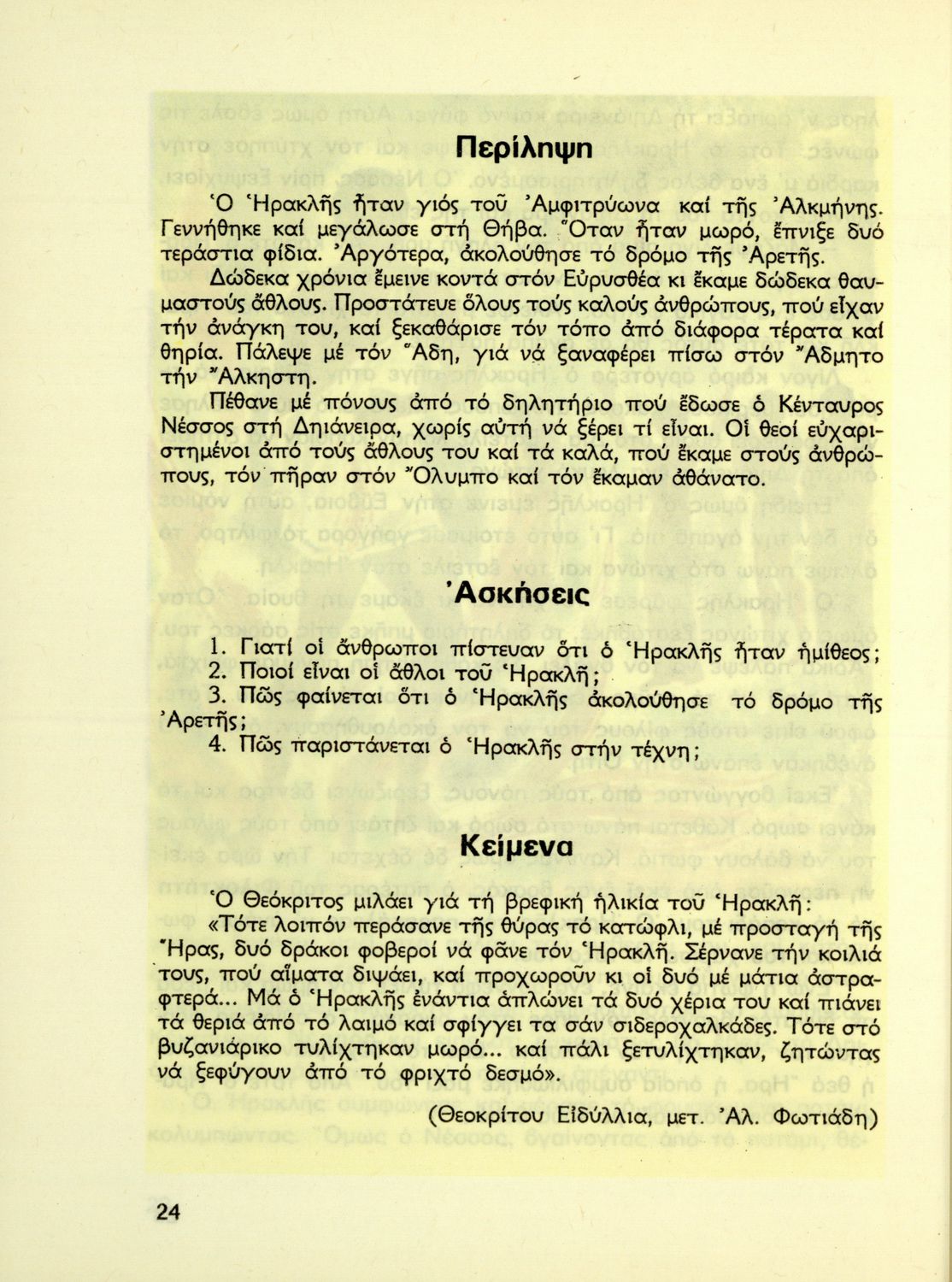 Μαθητικό βοήθημα Ιστορίας Γ΄ Δημοτικού που περιέχει θέματα από την ελληνική μυθολογία.