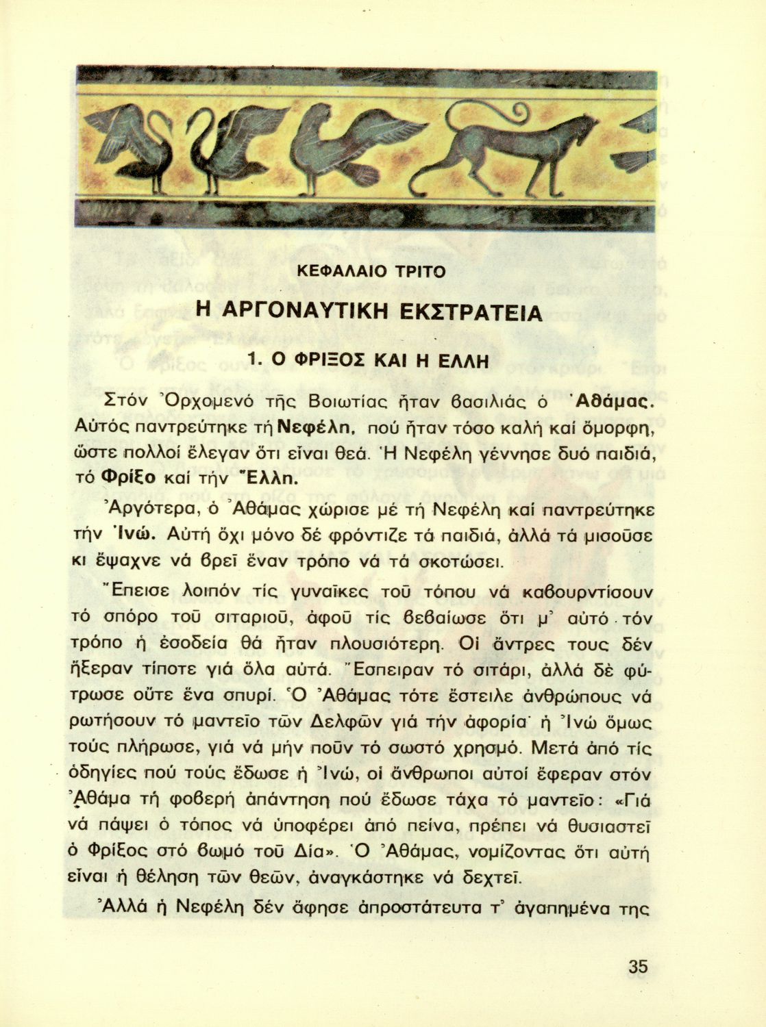 Σχολικό εγχειρίδιο Ιστορίας Γ' Δημοτικού που περιλαμβάνει θέματα από την ελληνική μυθολογία.
