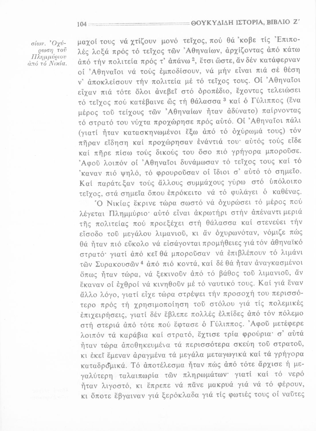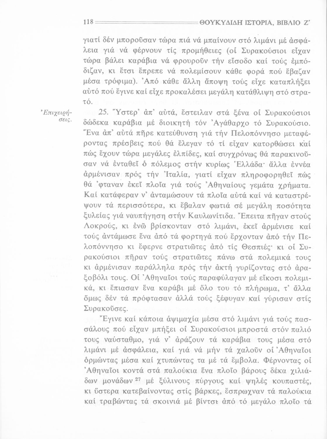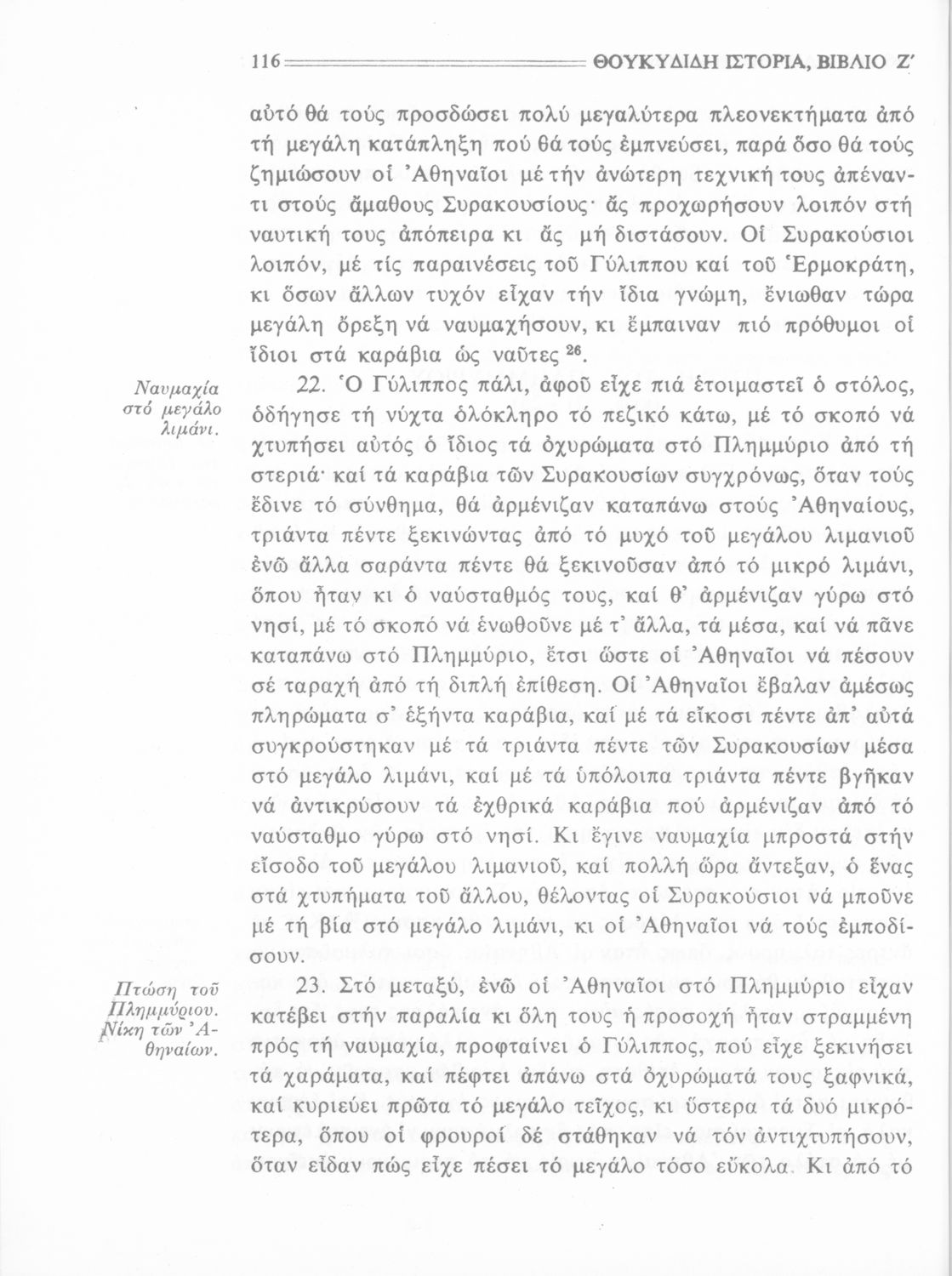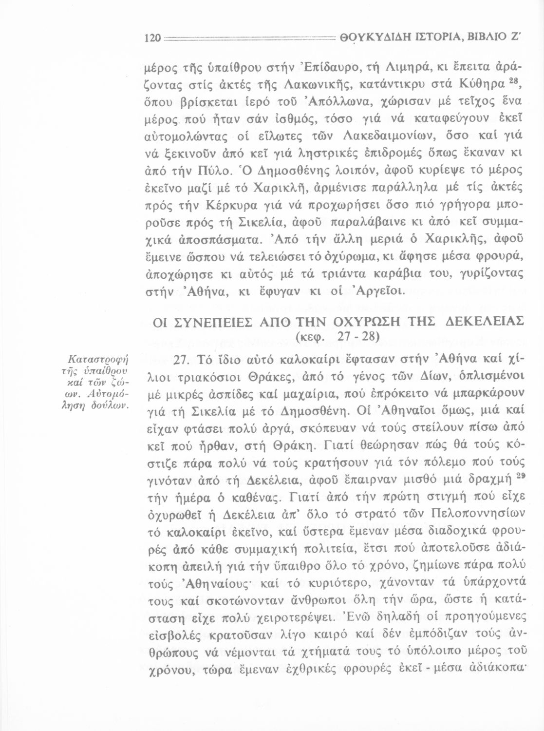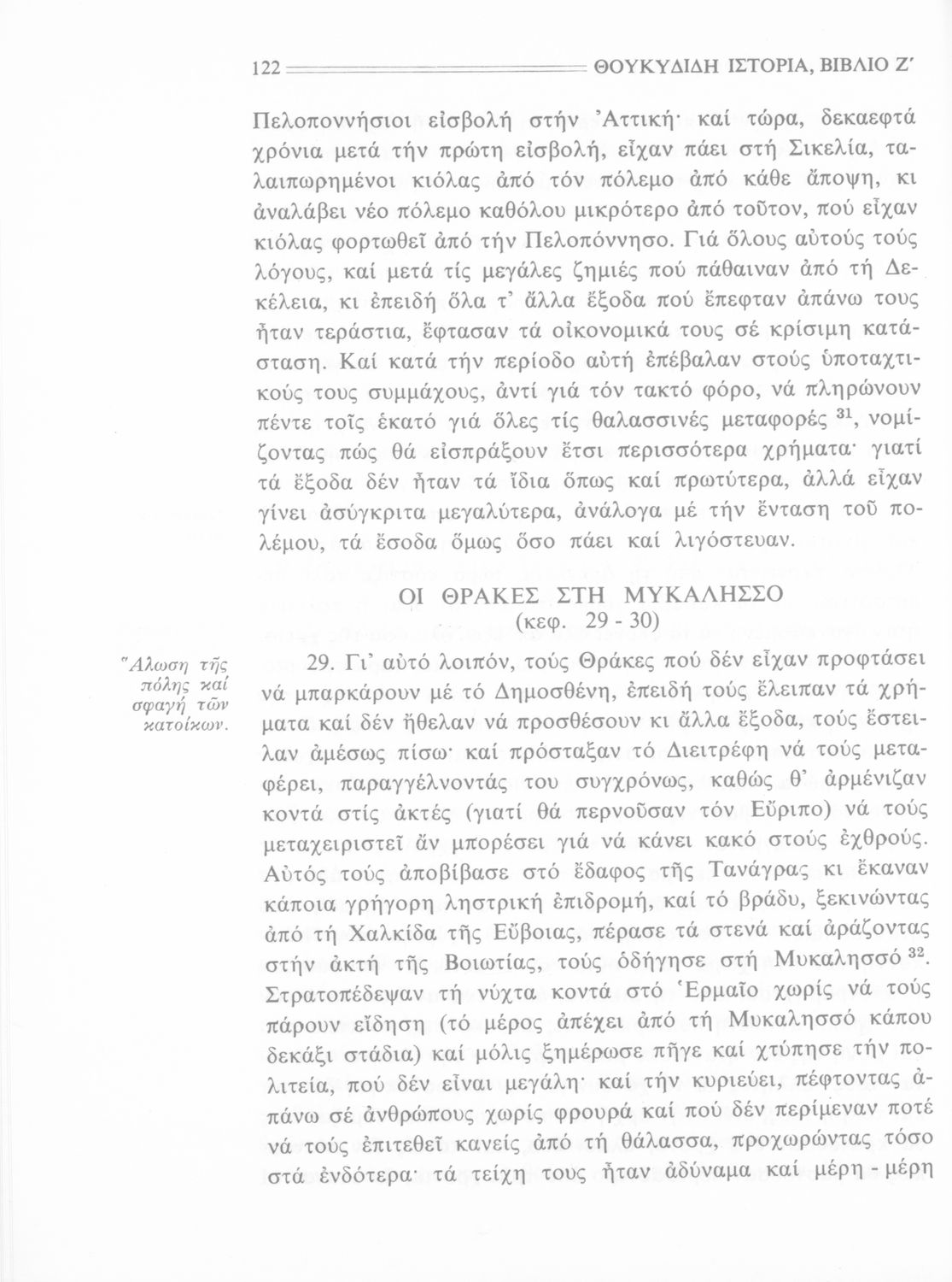 Σχολικό εγχειρίδιο Αρχαίων Ελληνικών Β΄ Γυμνασίου που περιλαμβάνει την μετάφραση των βιβλίων ΣΤ΄ και Ζ΄ της Ιστορίας του Θουκυδίδη, εισαγωγή στη ζωή και το έργο του, και ερμηνευτικά και πραγματολογικά σχόλια.